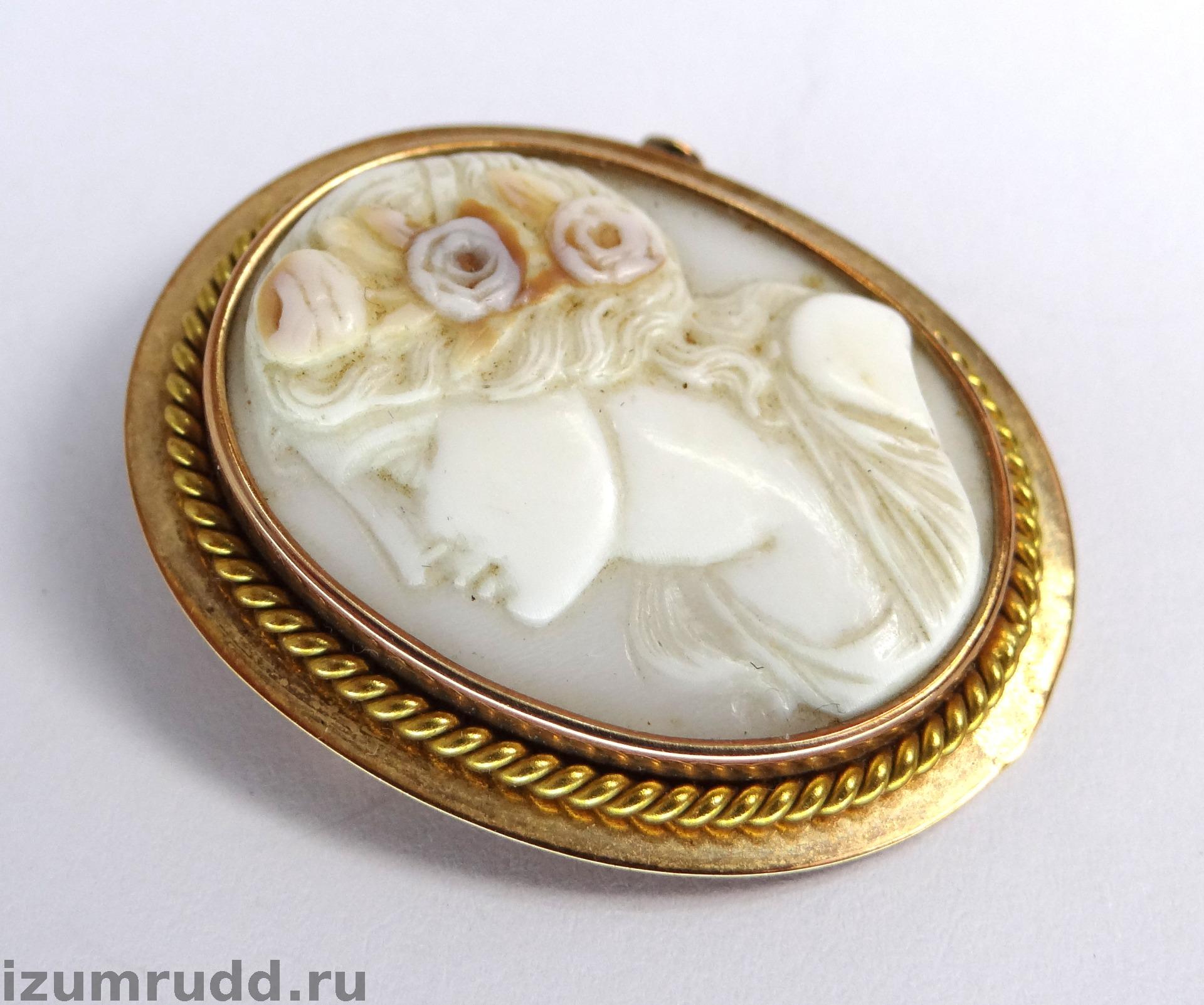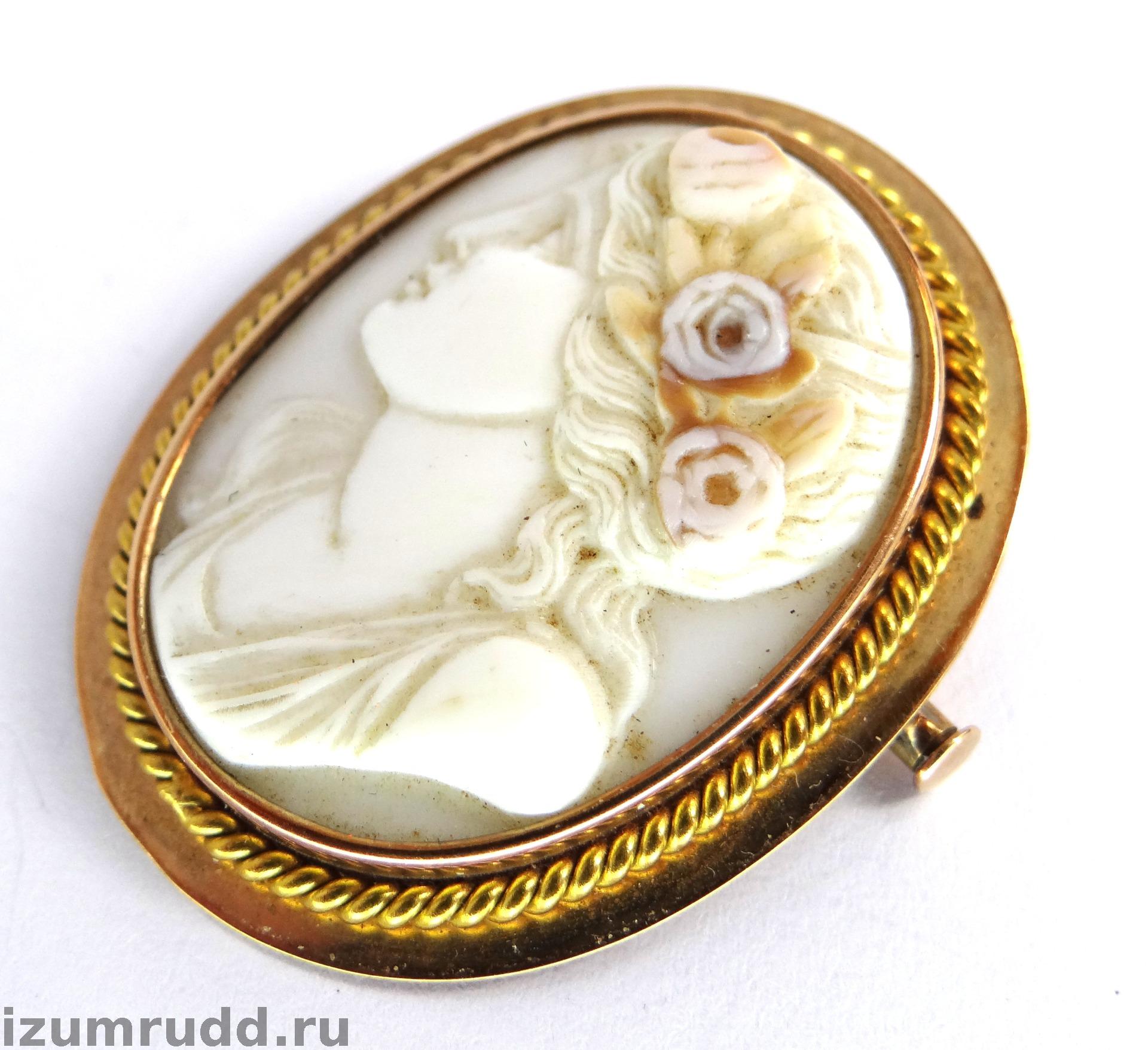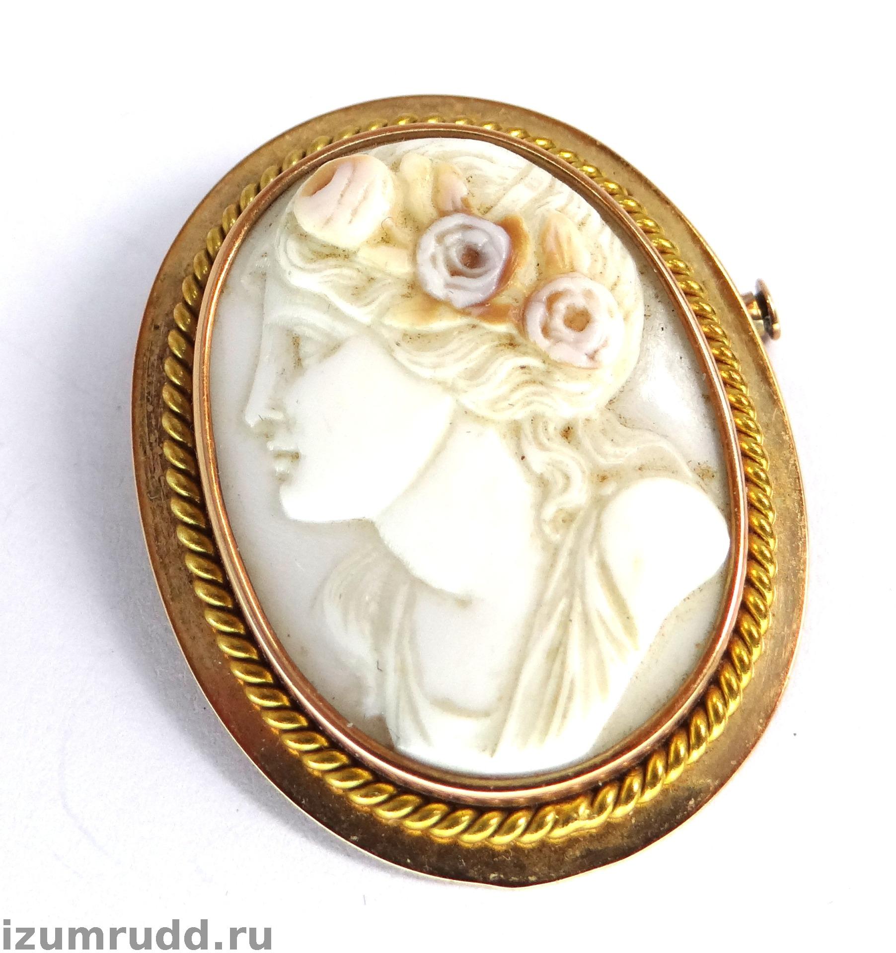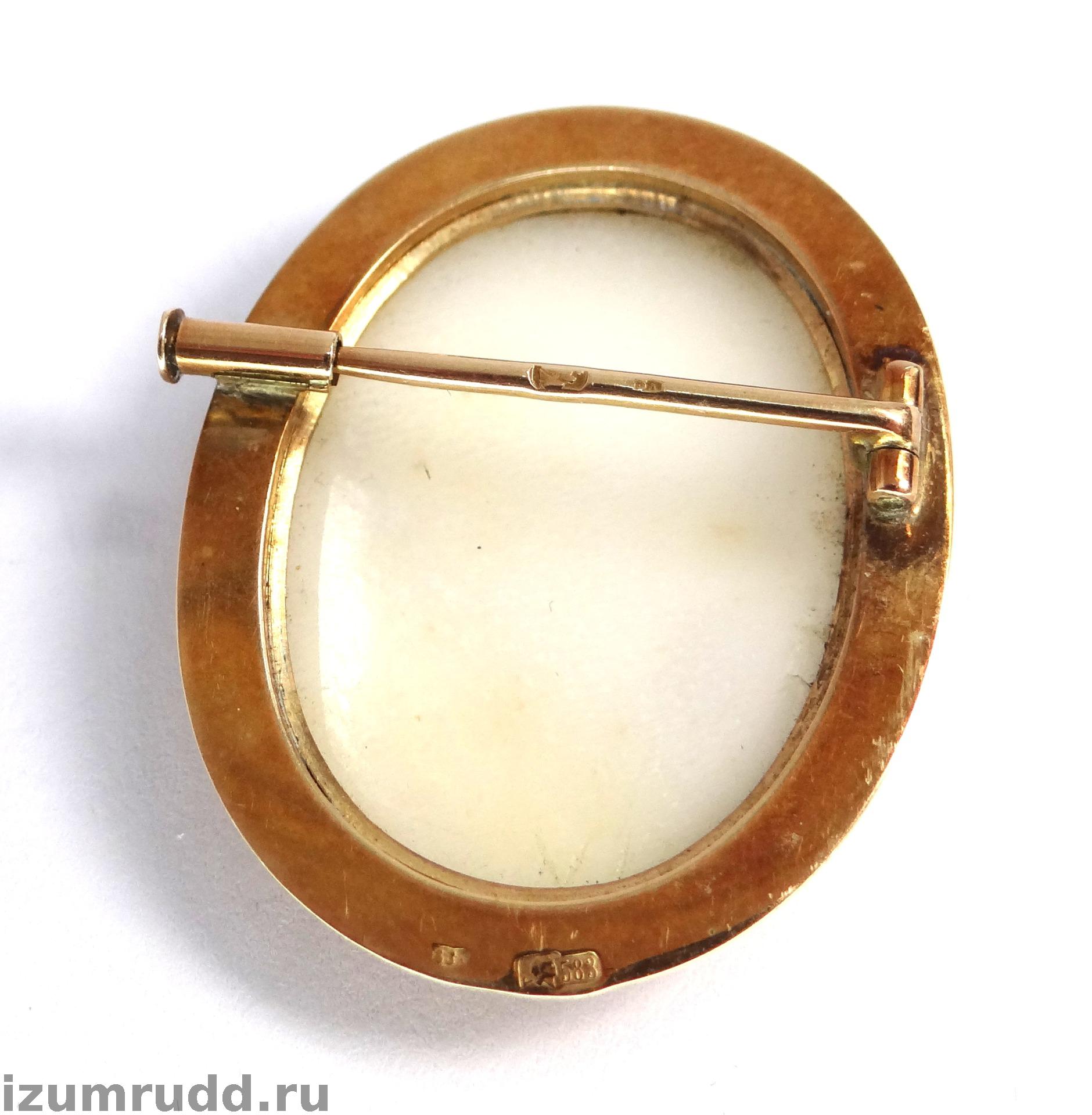 Брошь советского периода выполнена из розового золота 583 пробы с головой рабочего