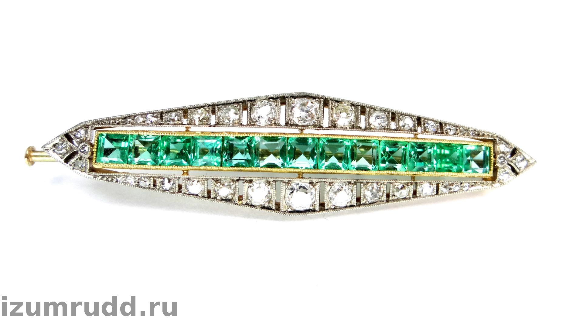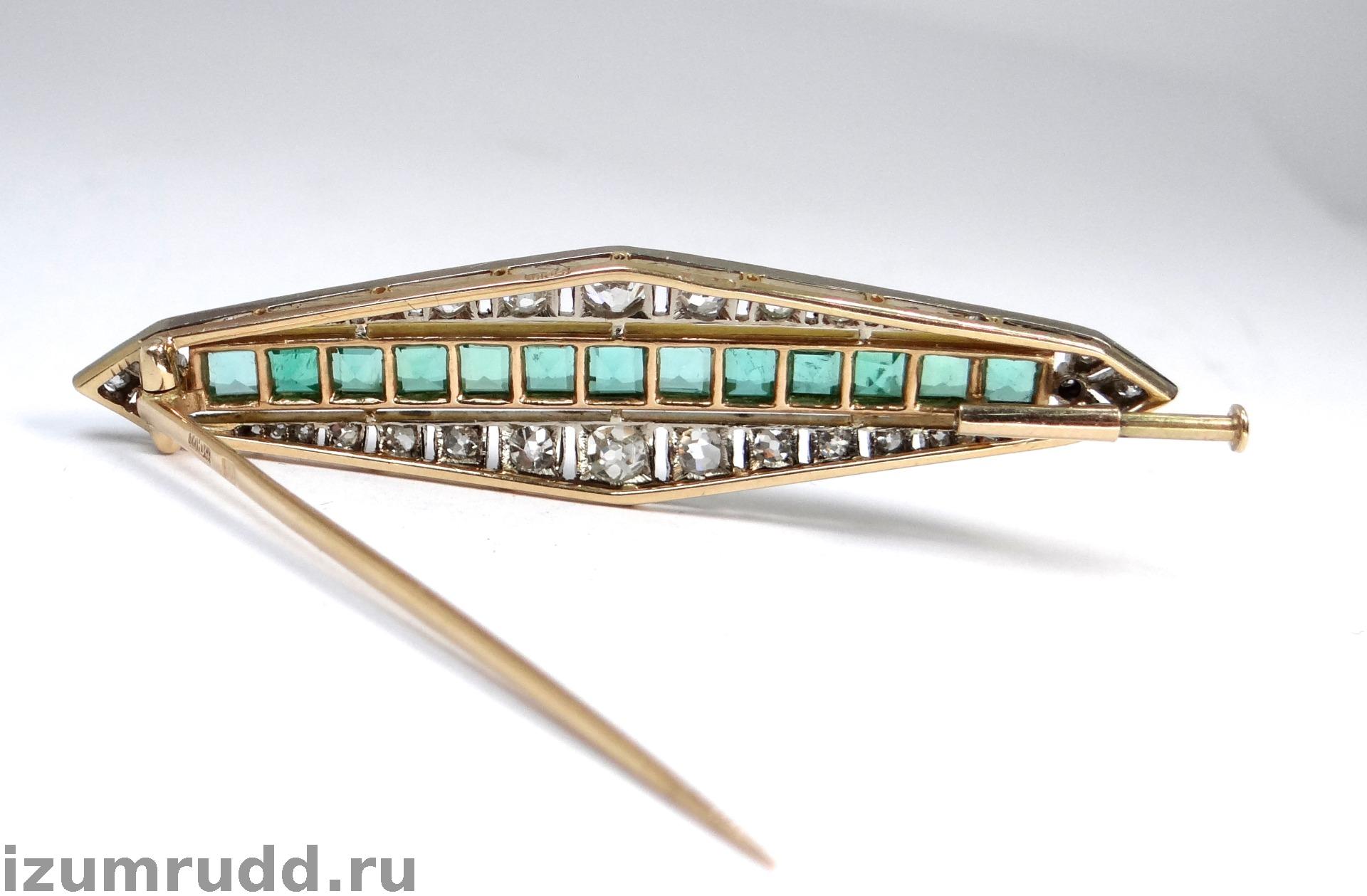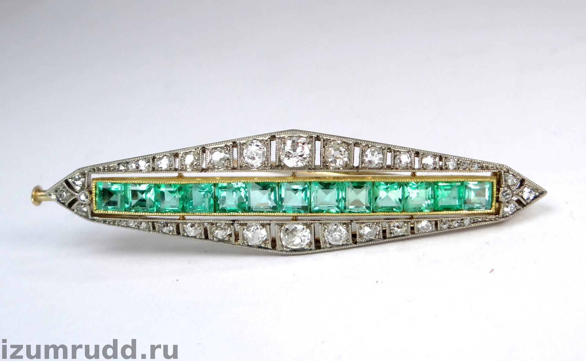 Антикварная золотая брошь с изумрудами и бриллиантами
