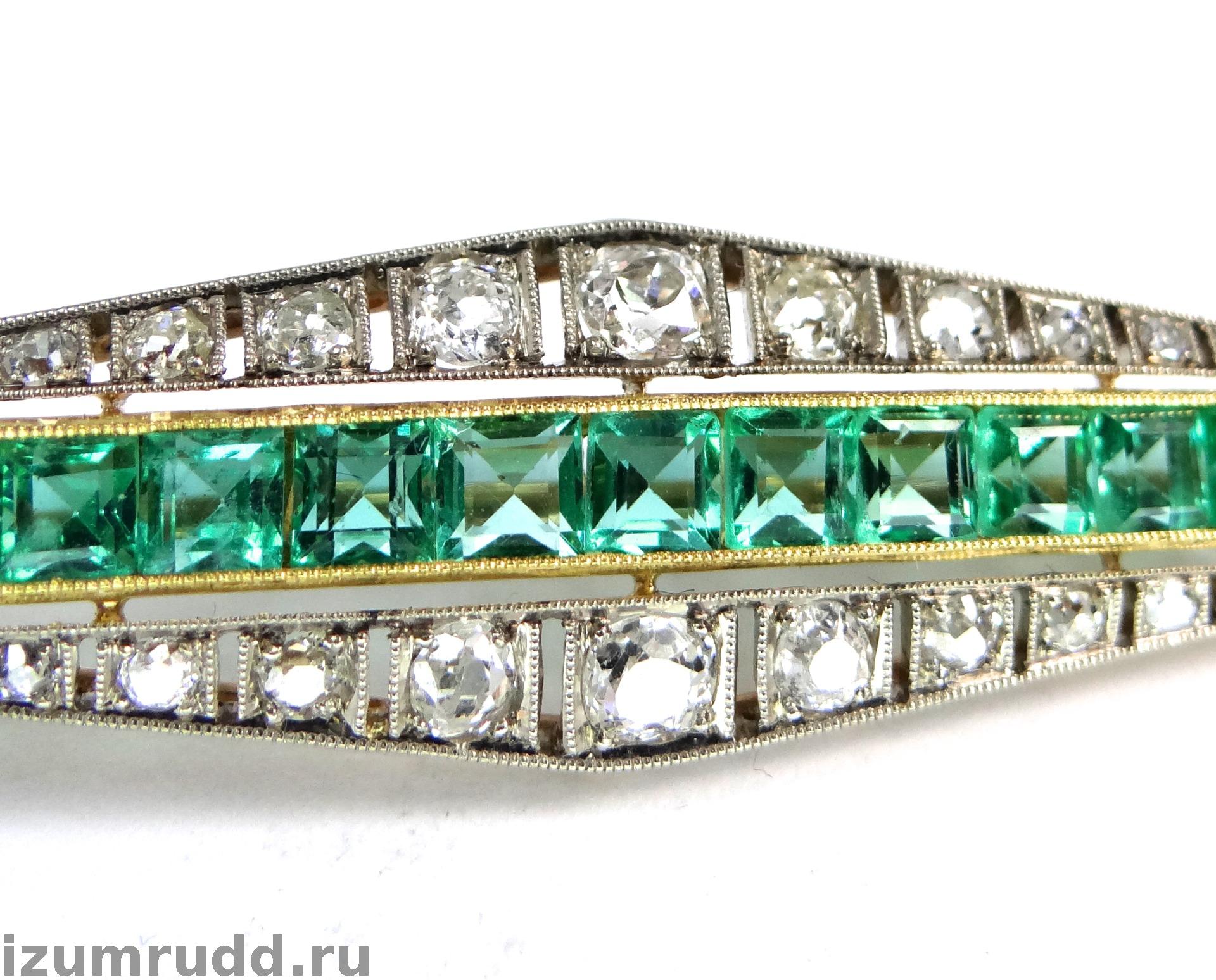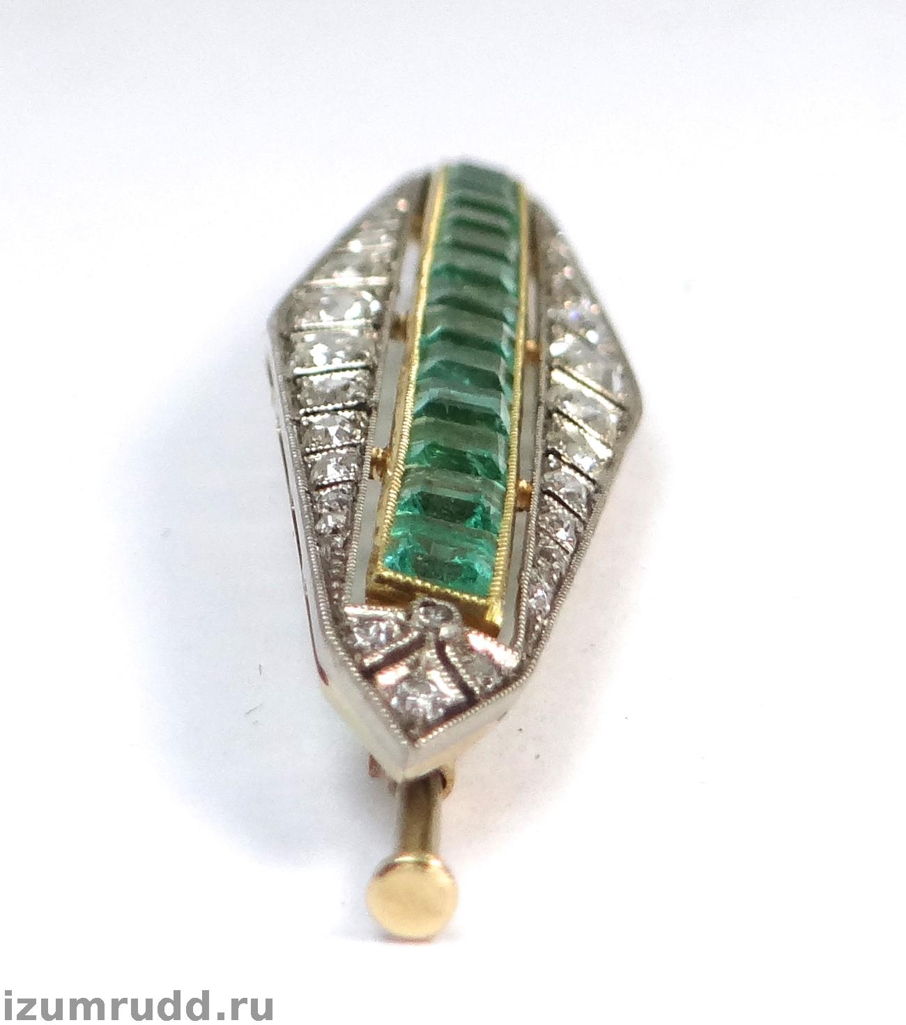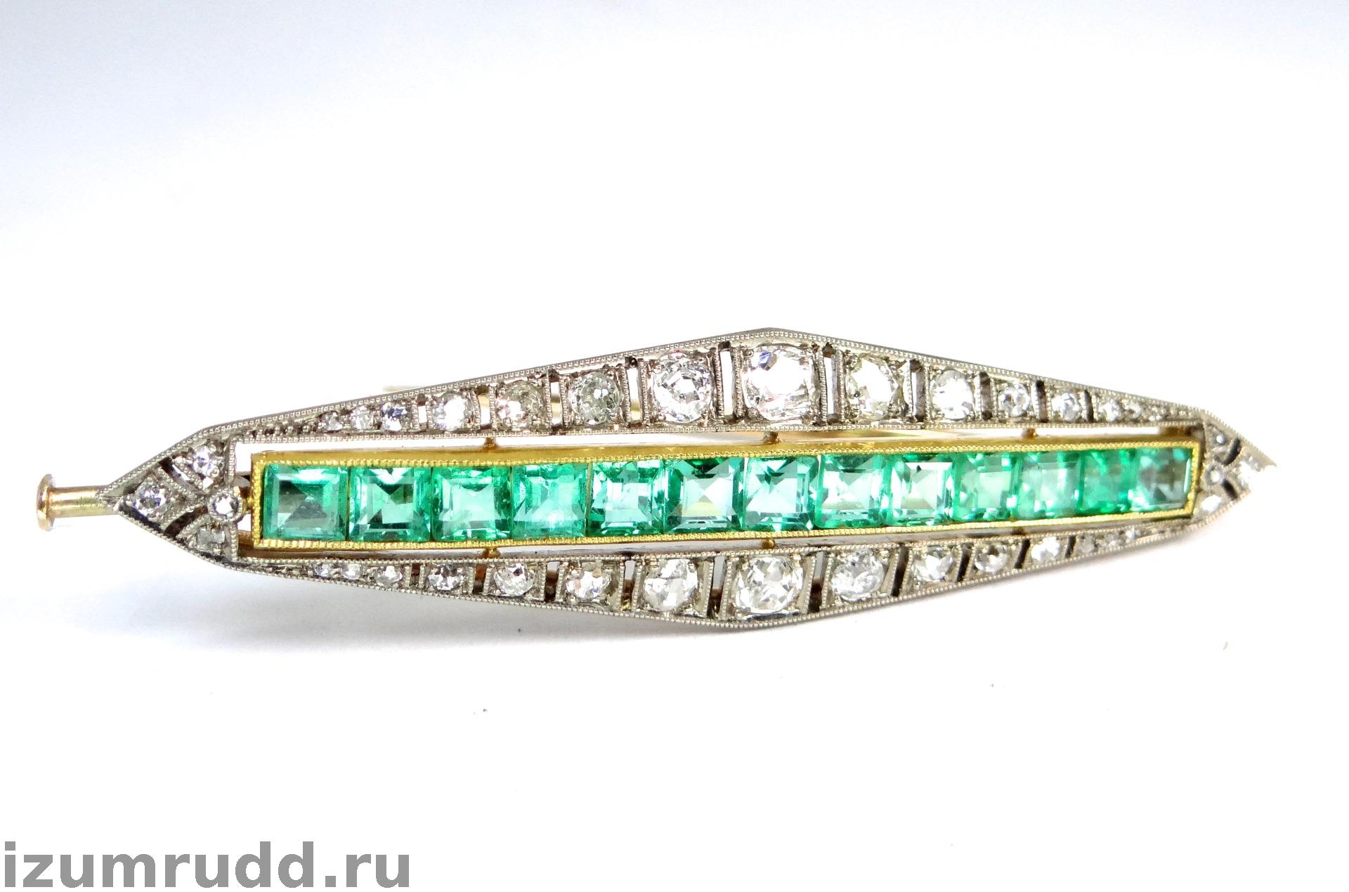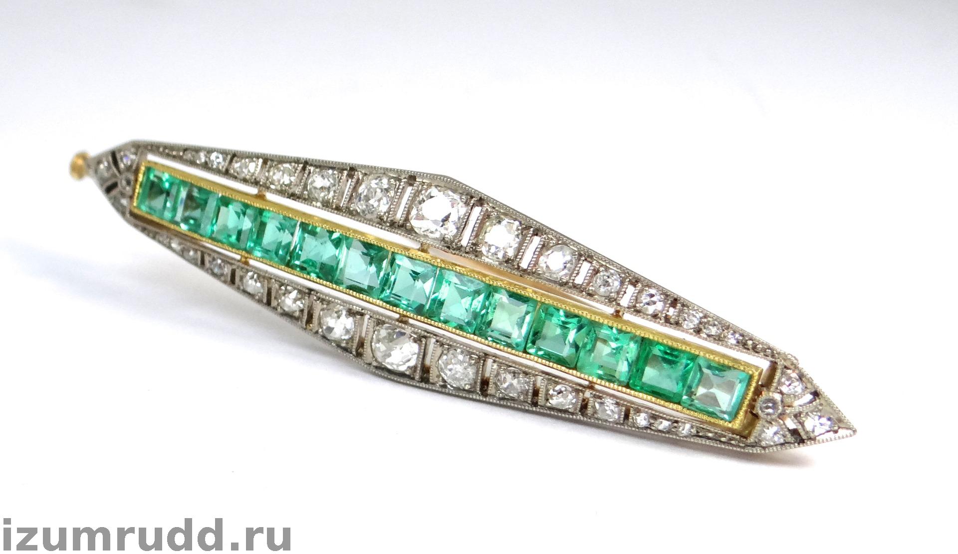 Антикварная золотая брошь с изумрудами и бриллиантами
