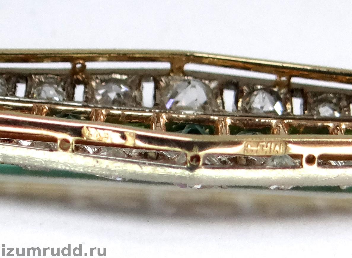 Антикварная золотая брошь, изумруды и бриллианты