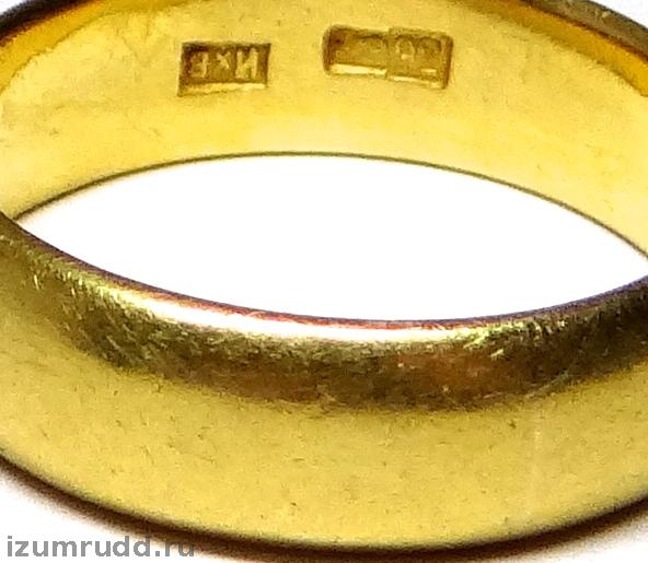 Кольцо выполнено из желтого золота 92 пробы ( в современном эквиваленте 958 проба ), на кольце присутствует клеймо мастера "ИхВ"