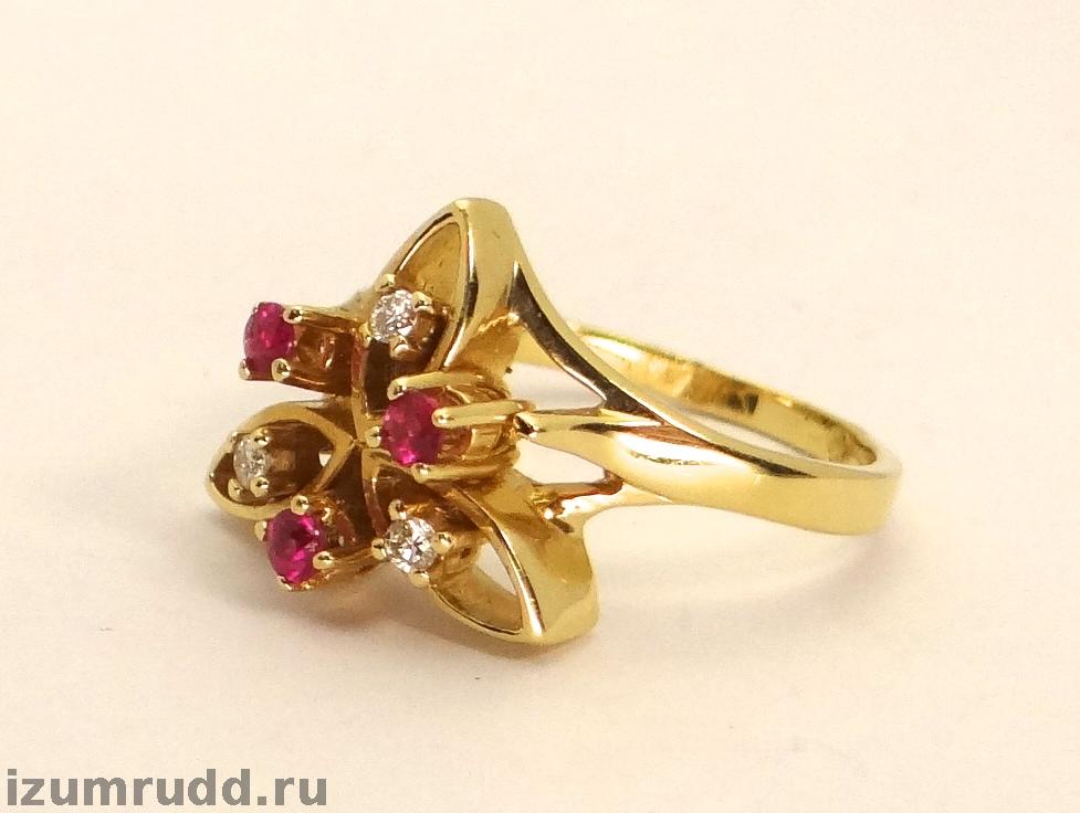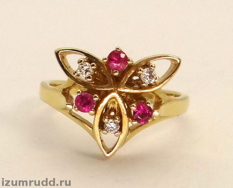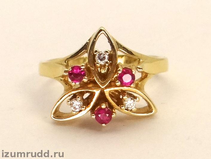 Золотое кольцо с бриллиантами и рубинами 585 пробы
