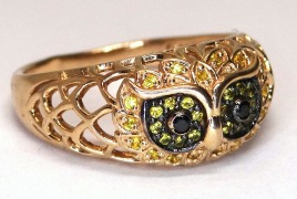 Кольцо выполнено из розового золота 585 пробы в виде головы совы.