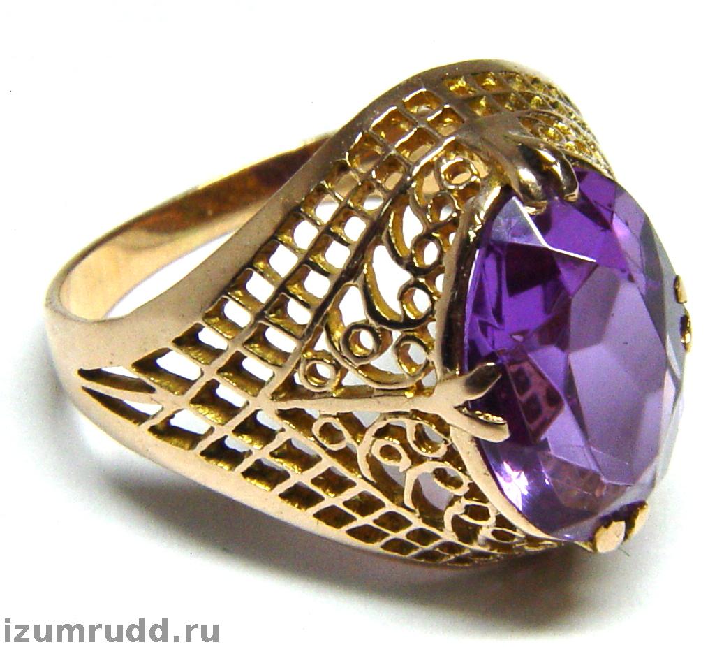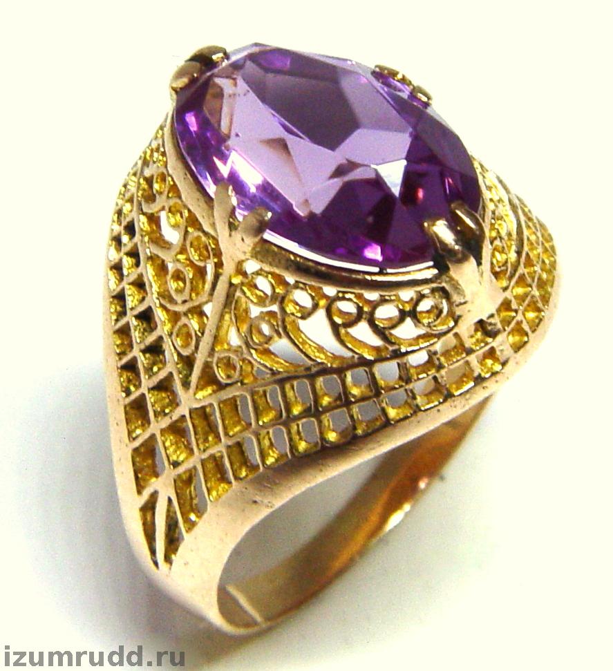 Кольцо Советского времени с искусственным александритом , выполнено из розового золота 583 пробы