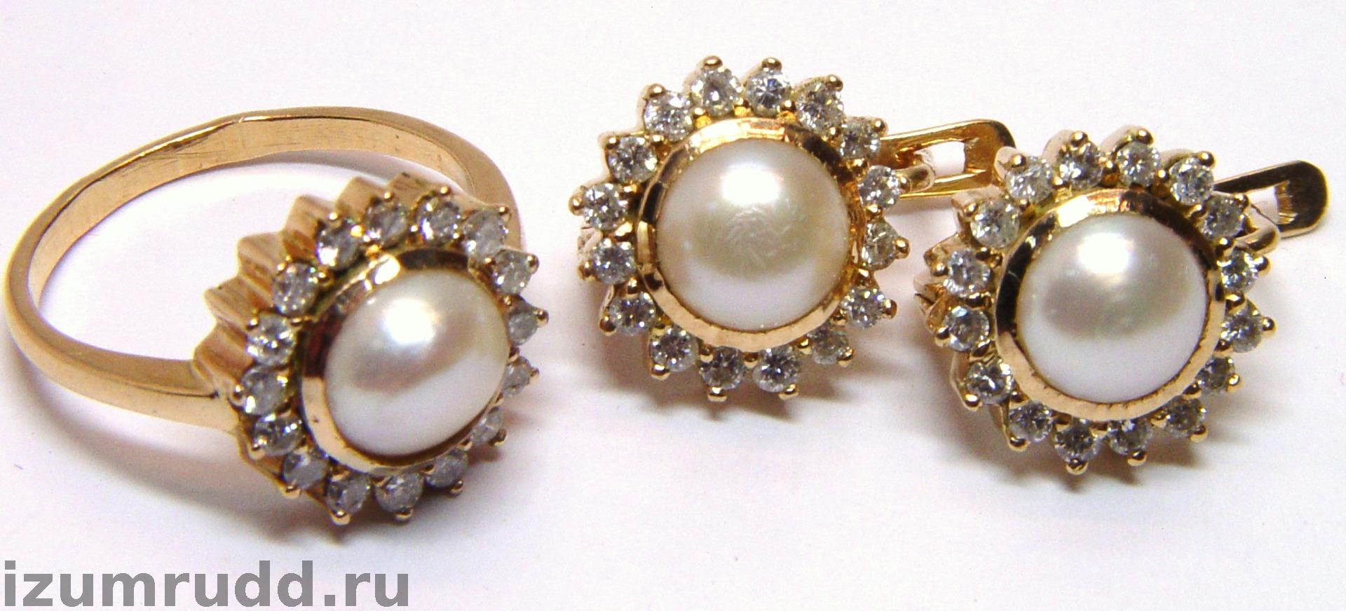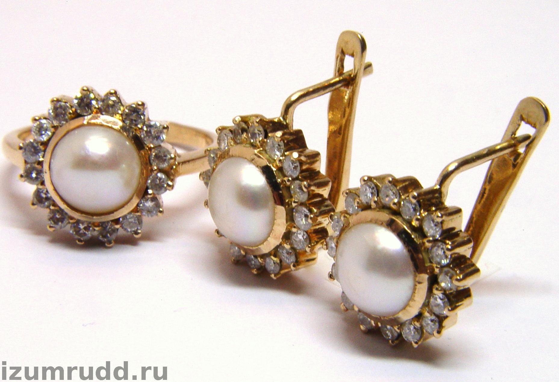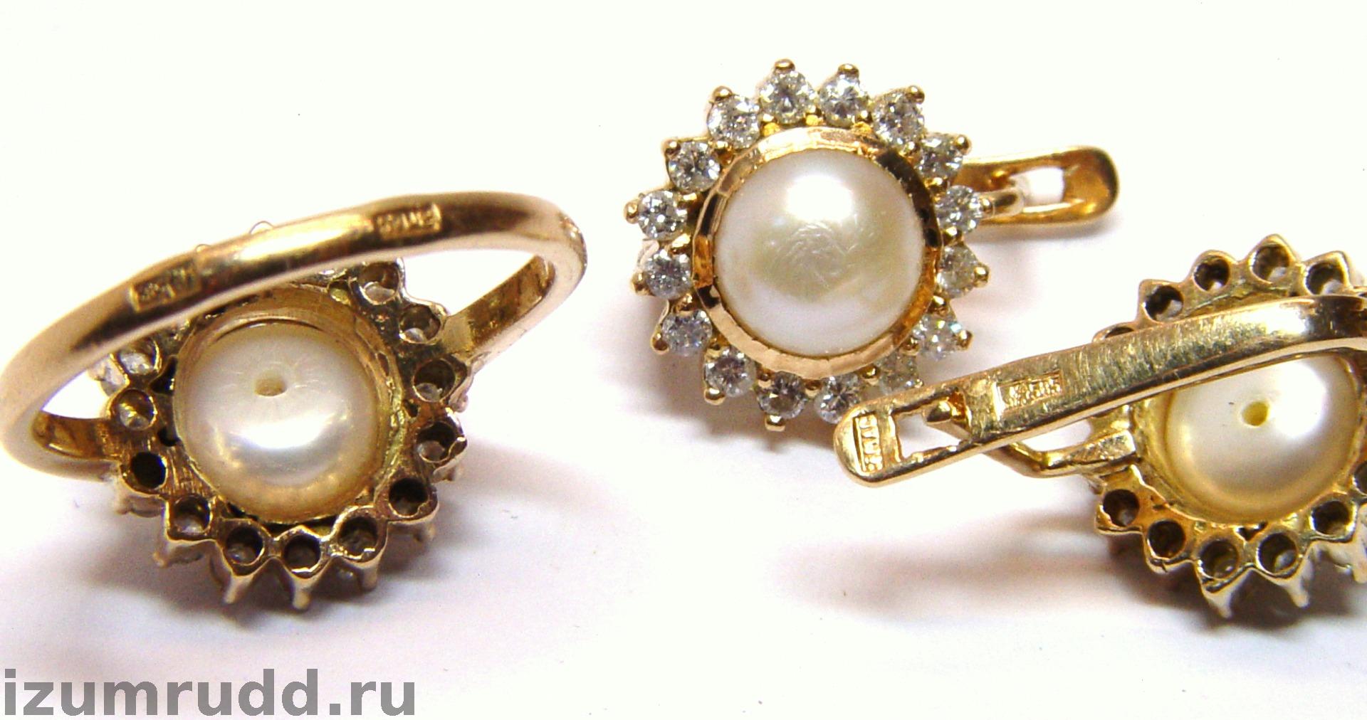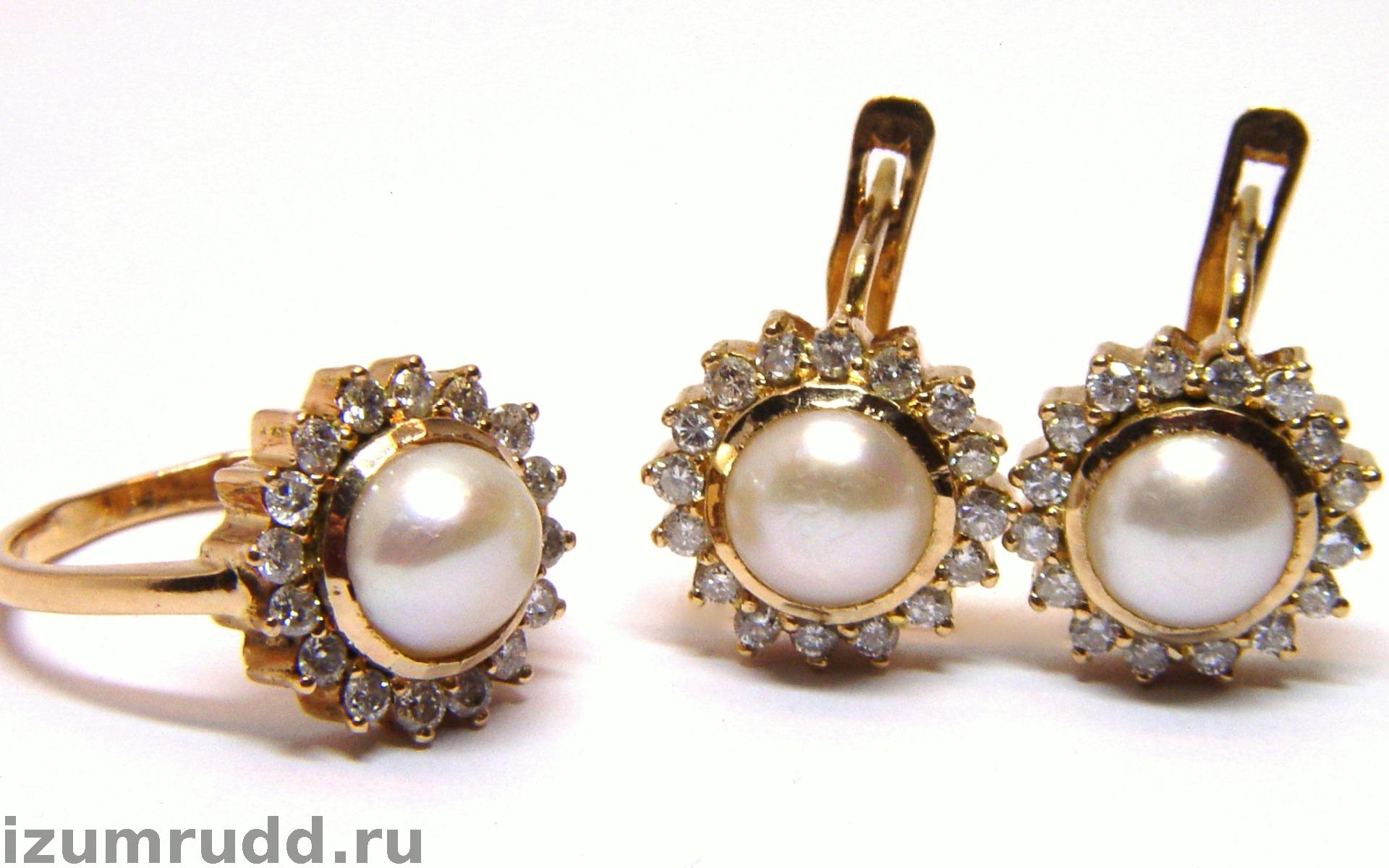 Комплект с жемчугом и бриллиантами из золота 585пр