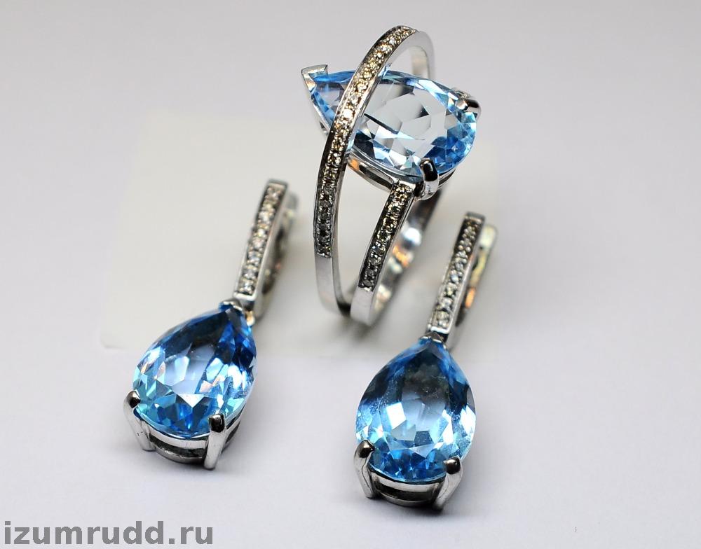 Красивый комплект из белого золота с топазами и бриллиантами 585 пробы