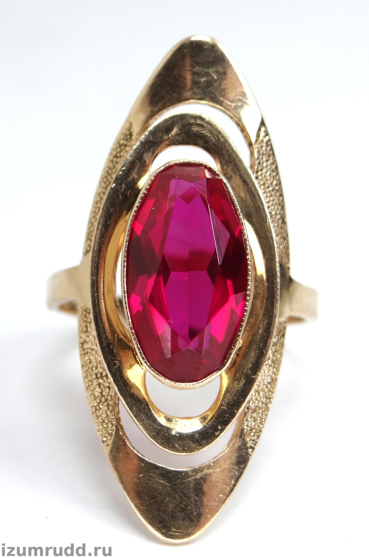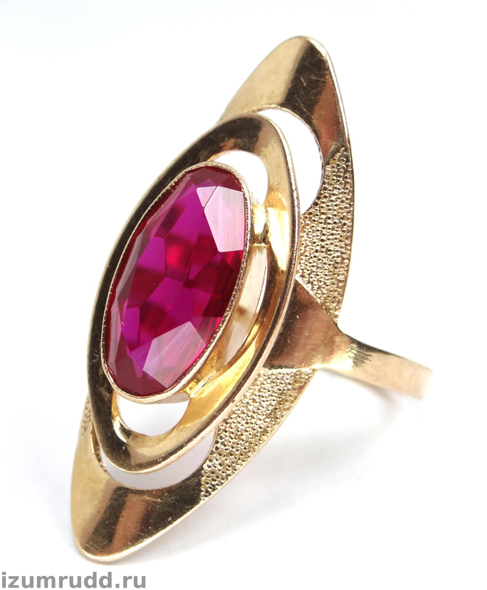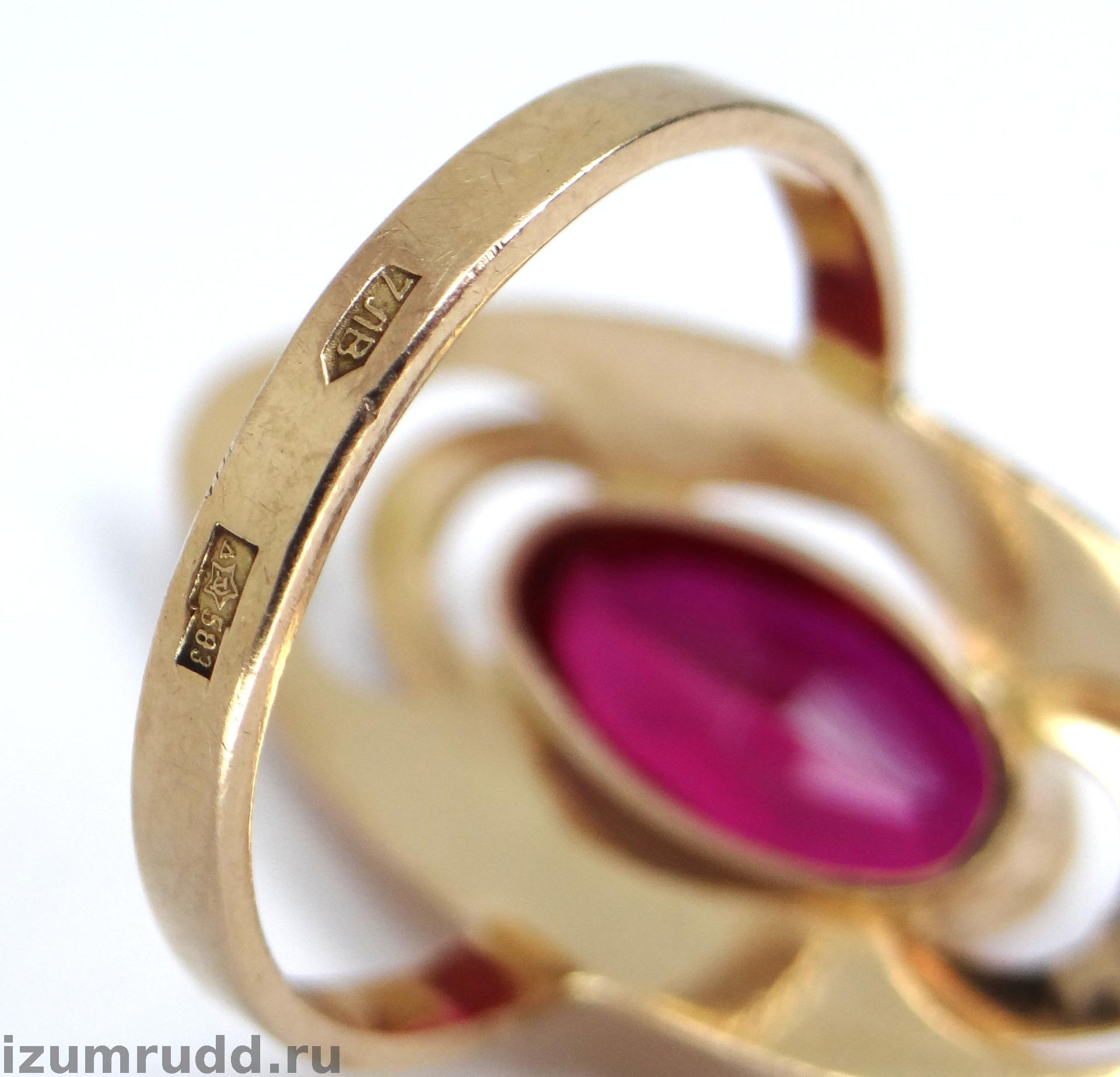 Кольцо Советского времени с искусственным рубином выполнено из розового золота 583 пробы.