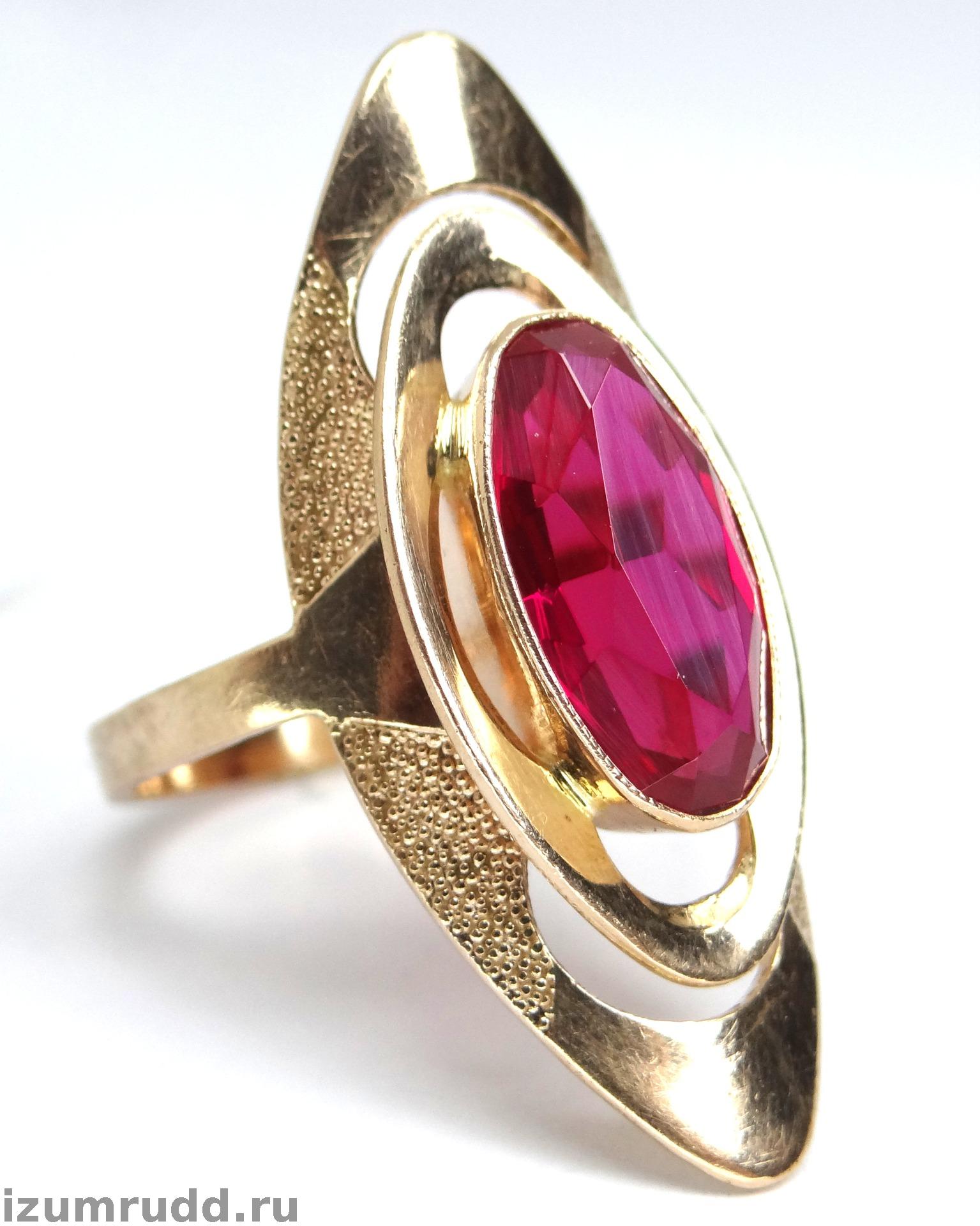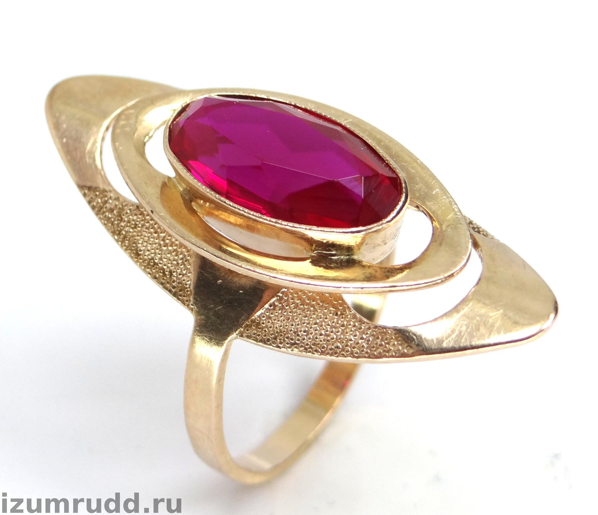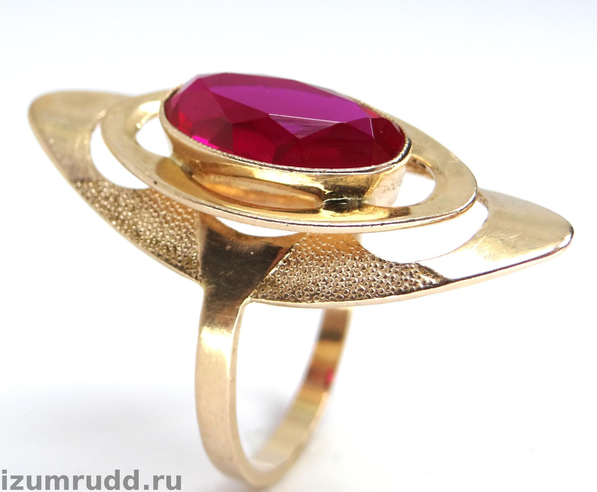 Кольцо Советского времени с искусственным рубином выполнено из розового золота 583 пробы.