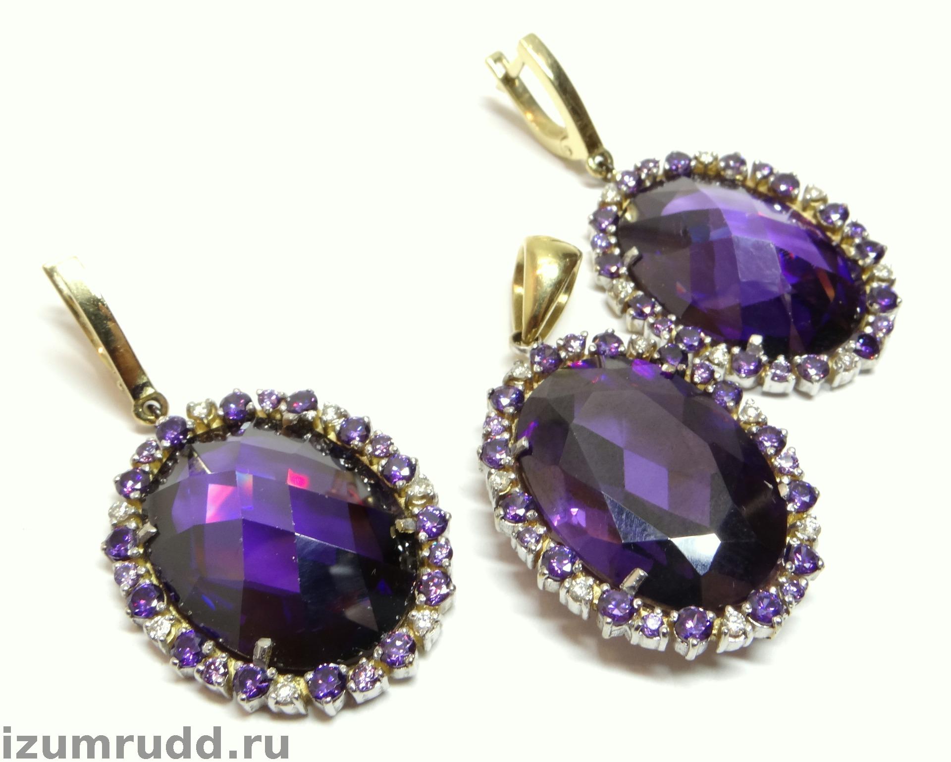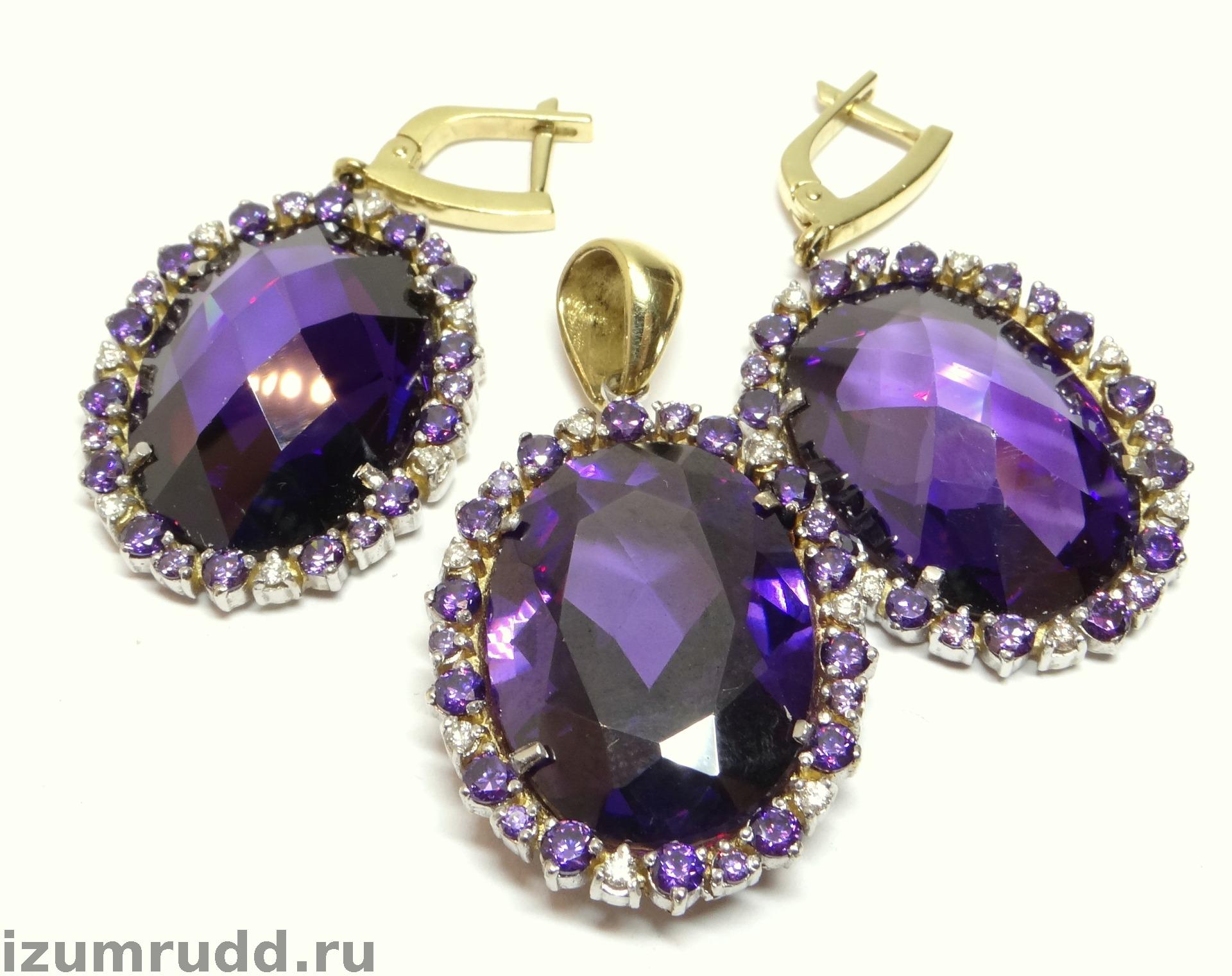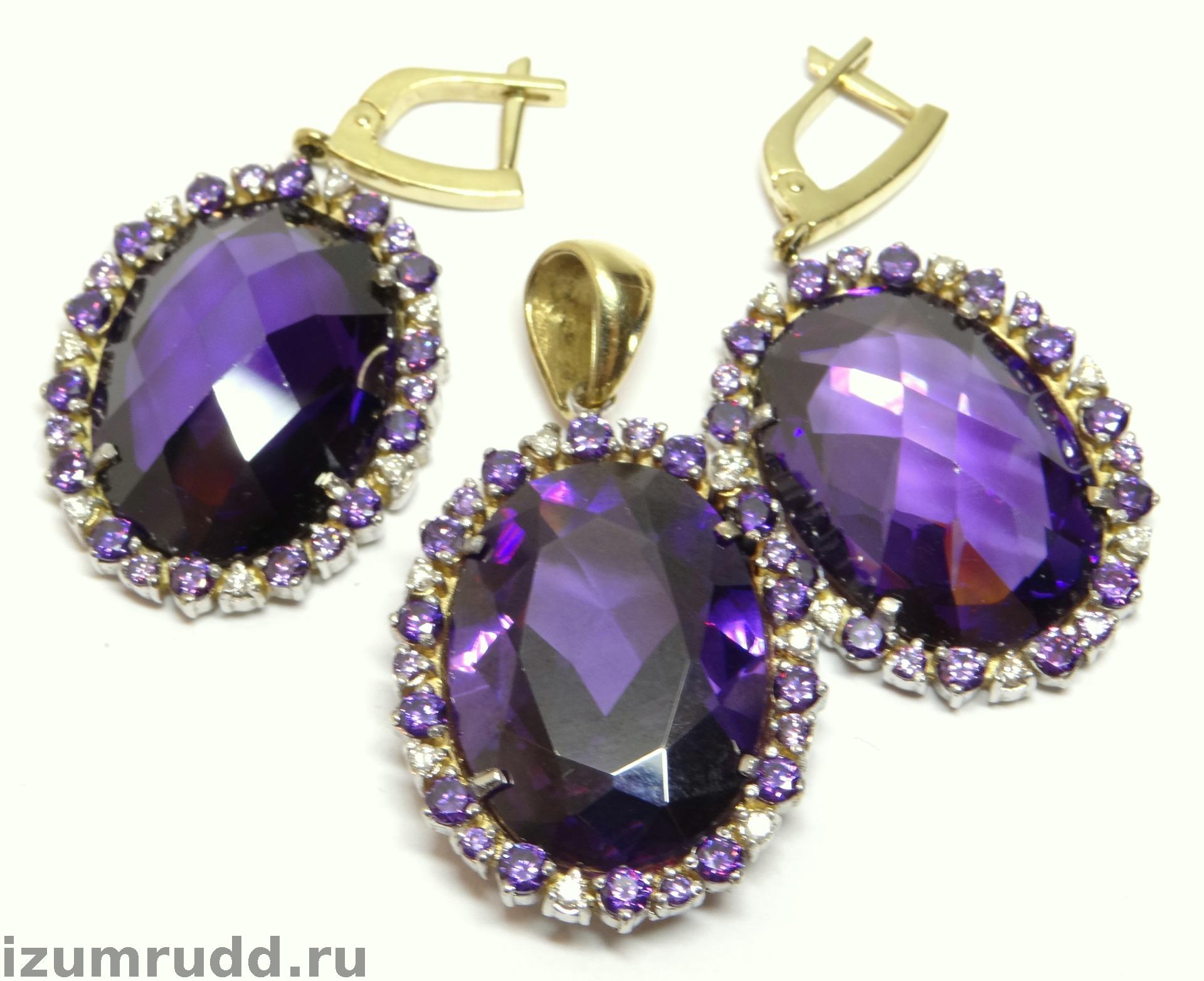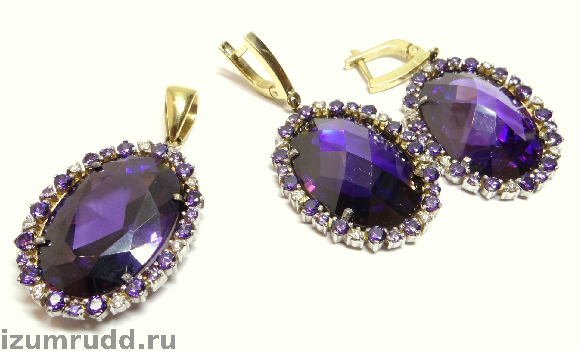 Крупный золотой комплект 585 пробы с бриллиантами