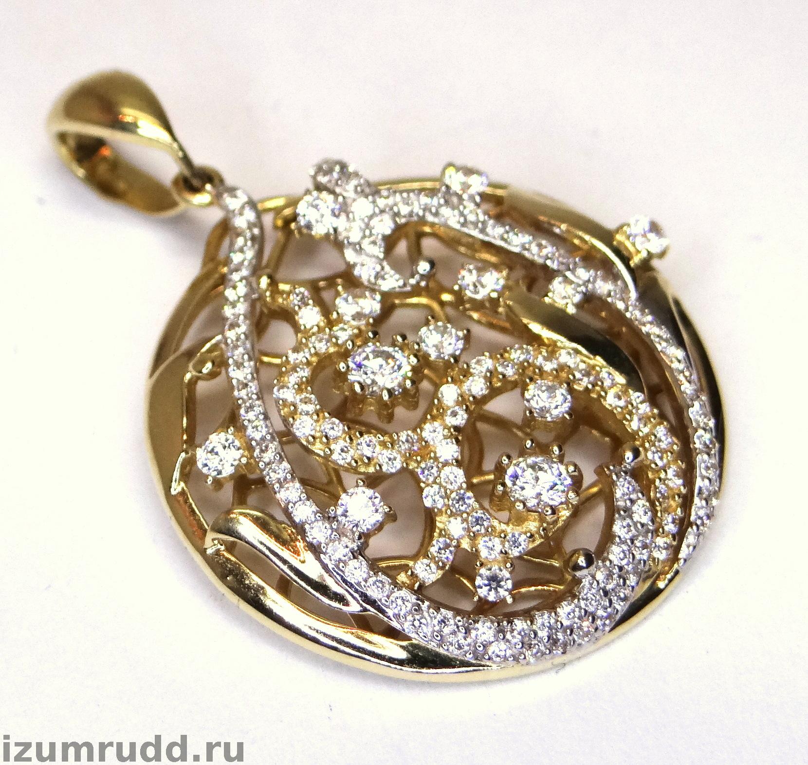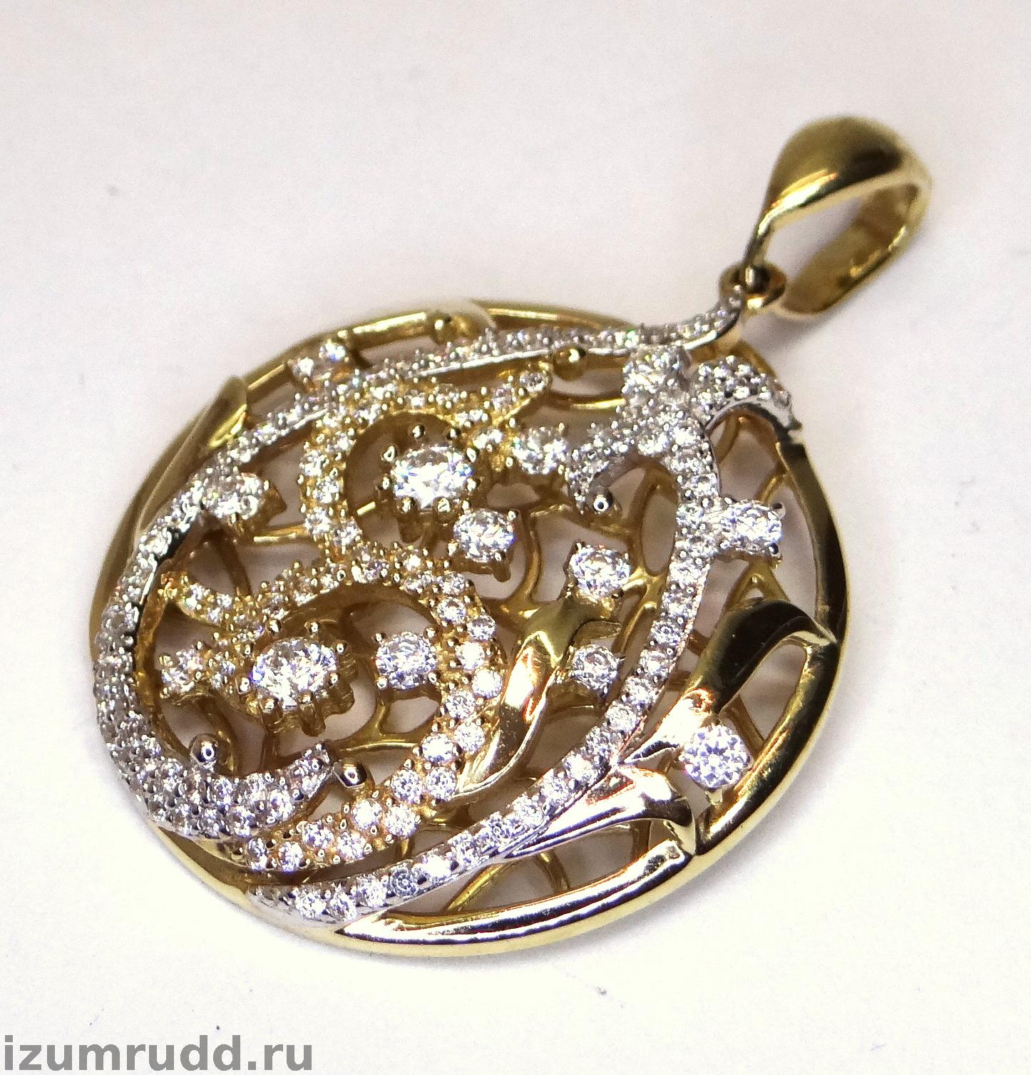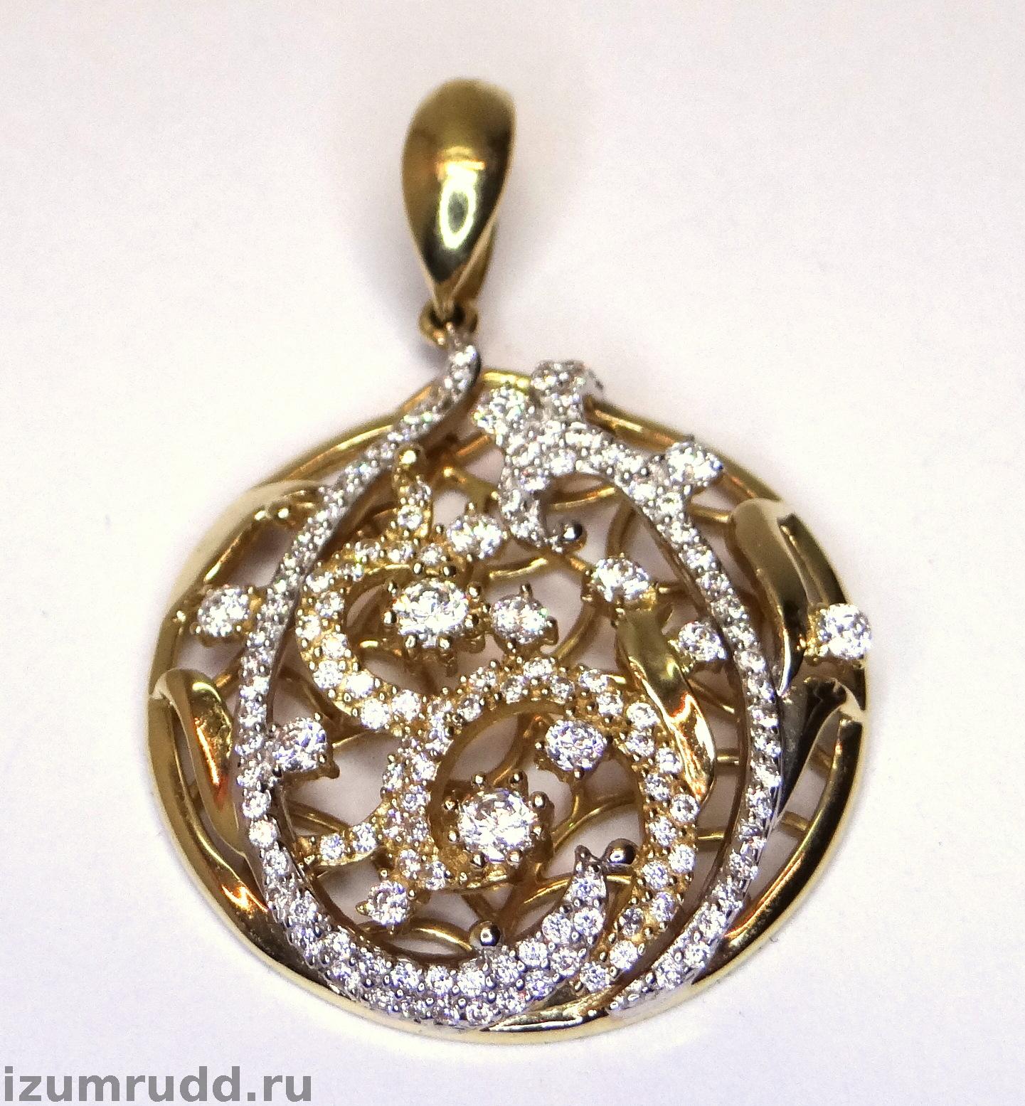 Крупный золотой кулон 585 пробы с фианитами