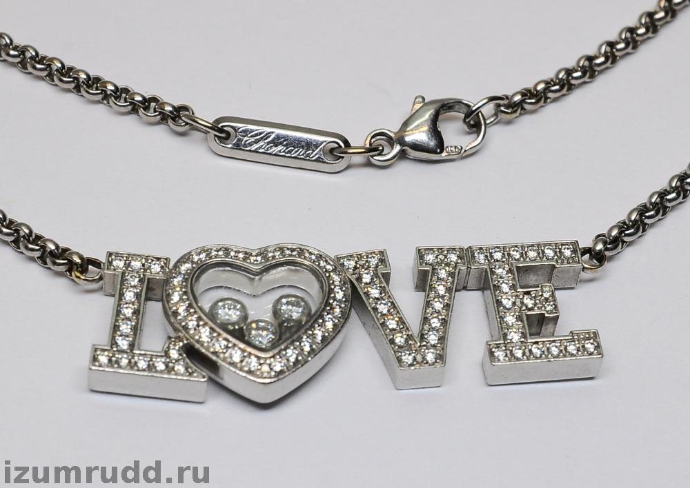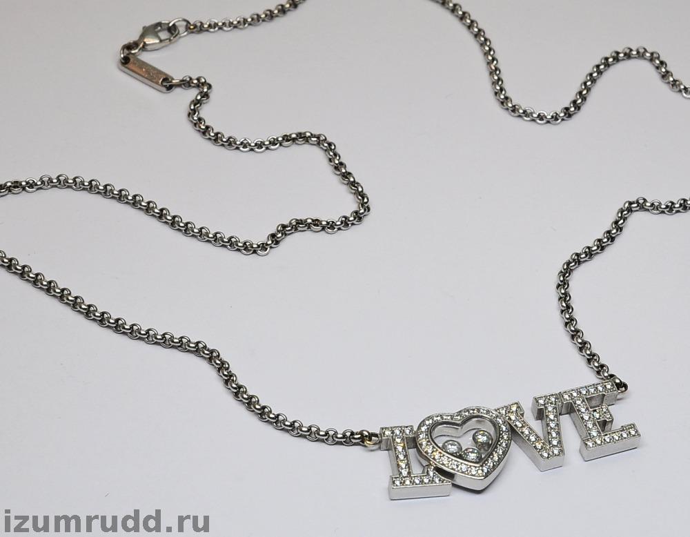 Кулон на цепочке Chopard "LOVE", выполнен из ,белого золота 750 пробы