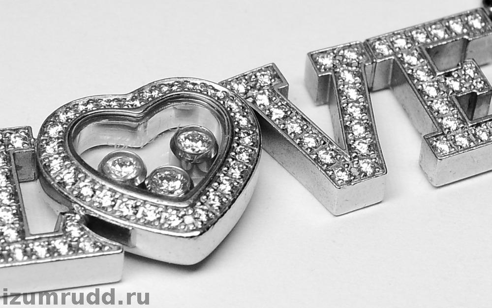Кулон на цепи Chopard "LOVE" с бриллиантами из белого золота 750 пробы