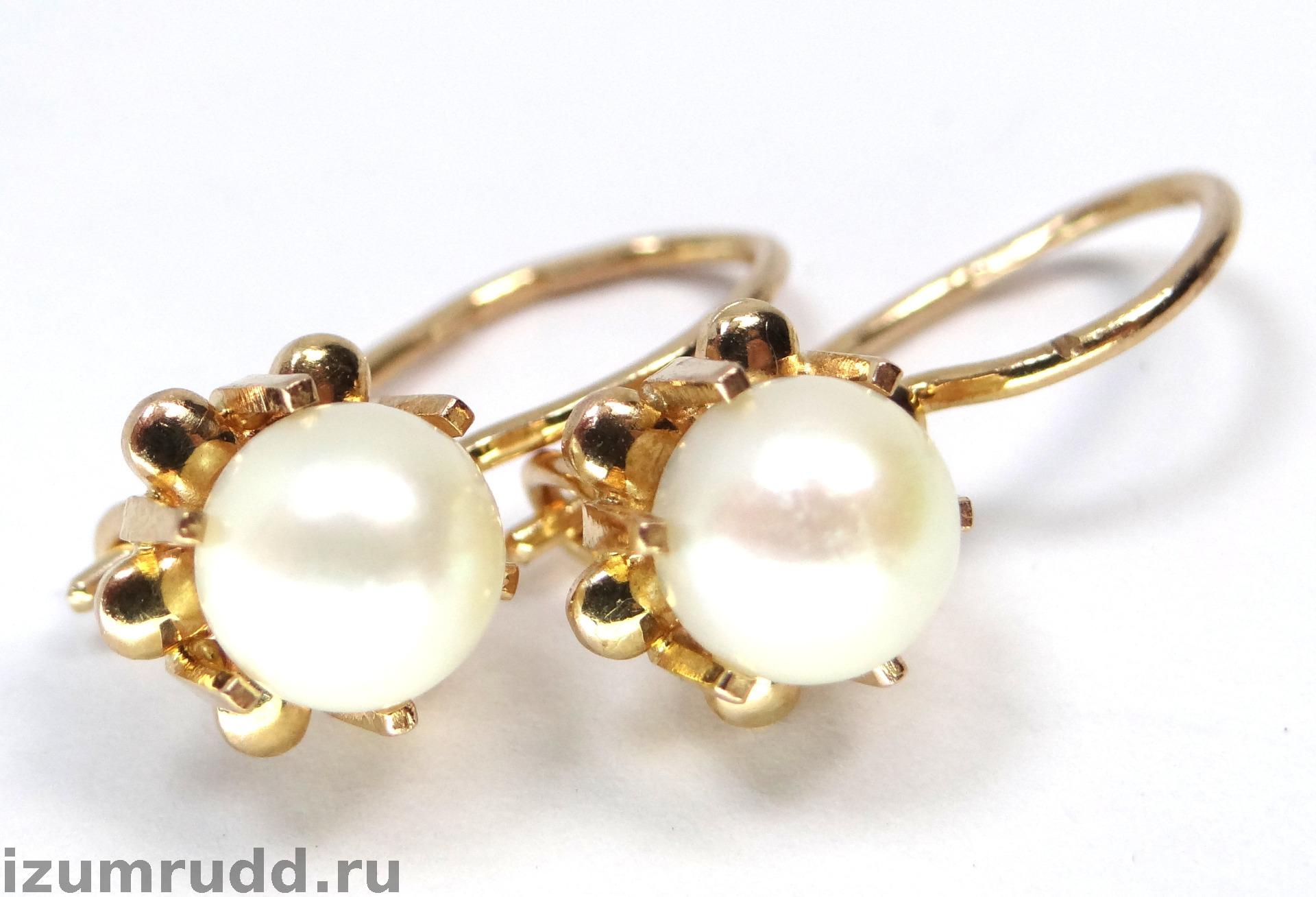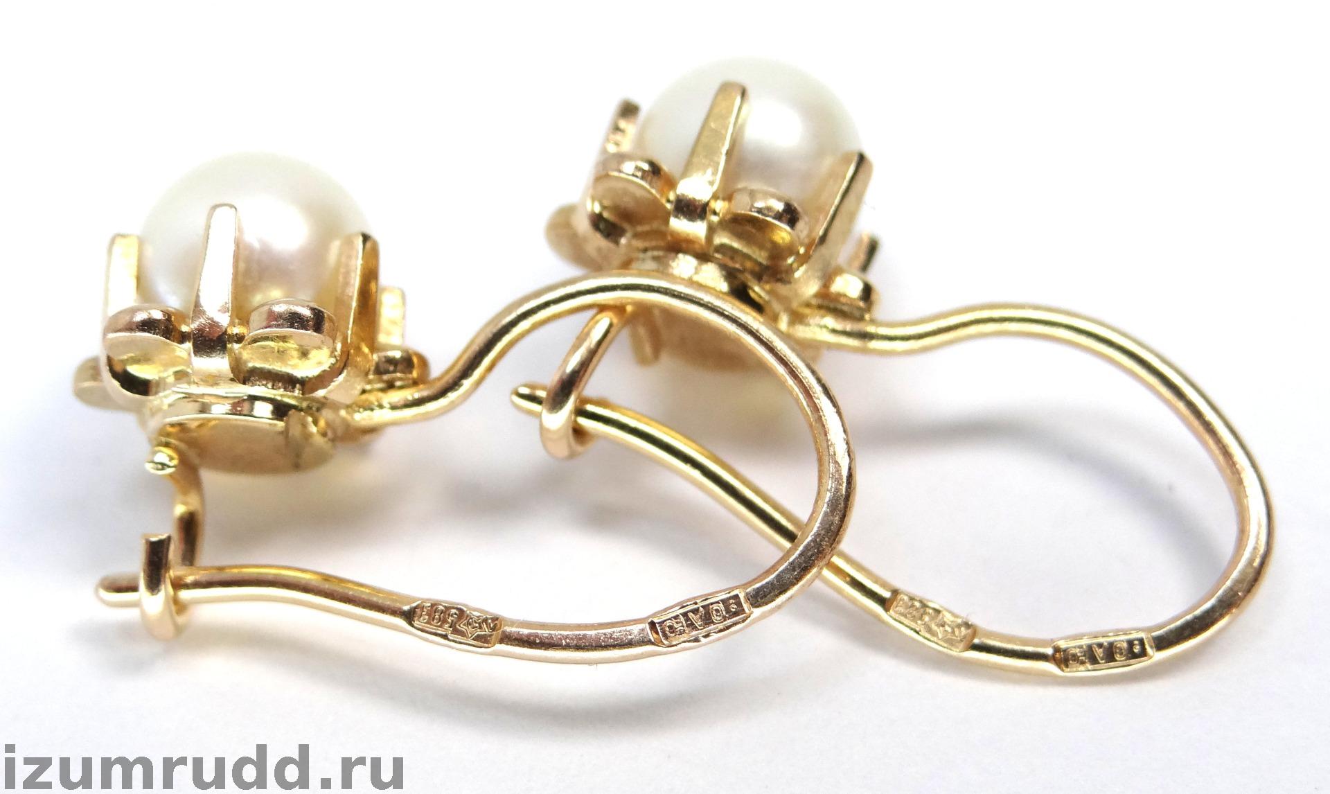 Ленинградские золотые серьги 583 пробы с жемчугом