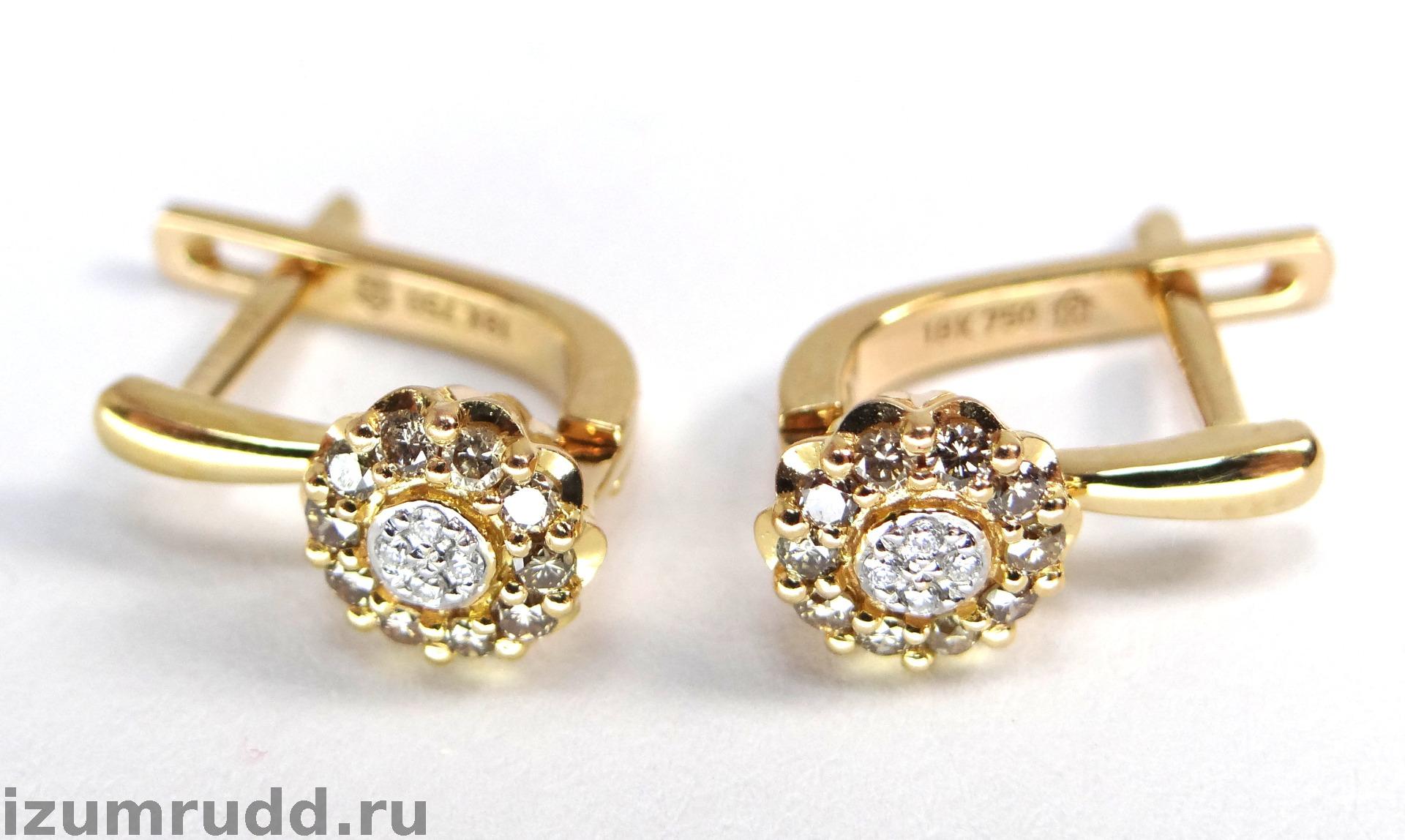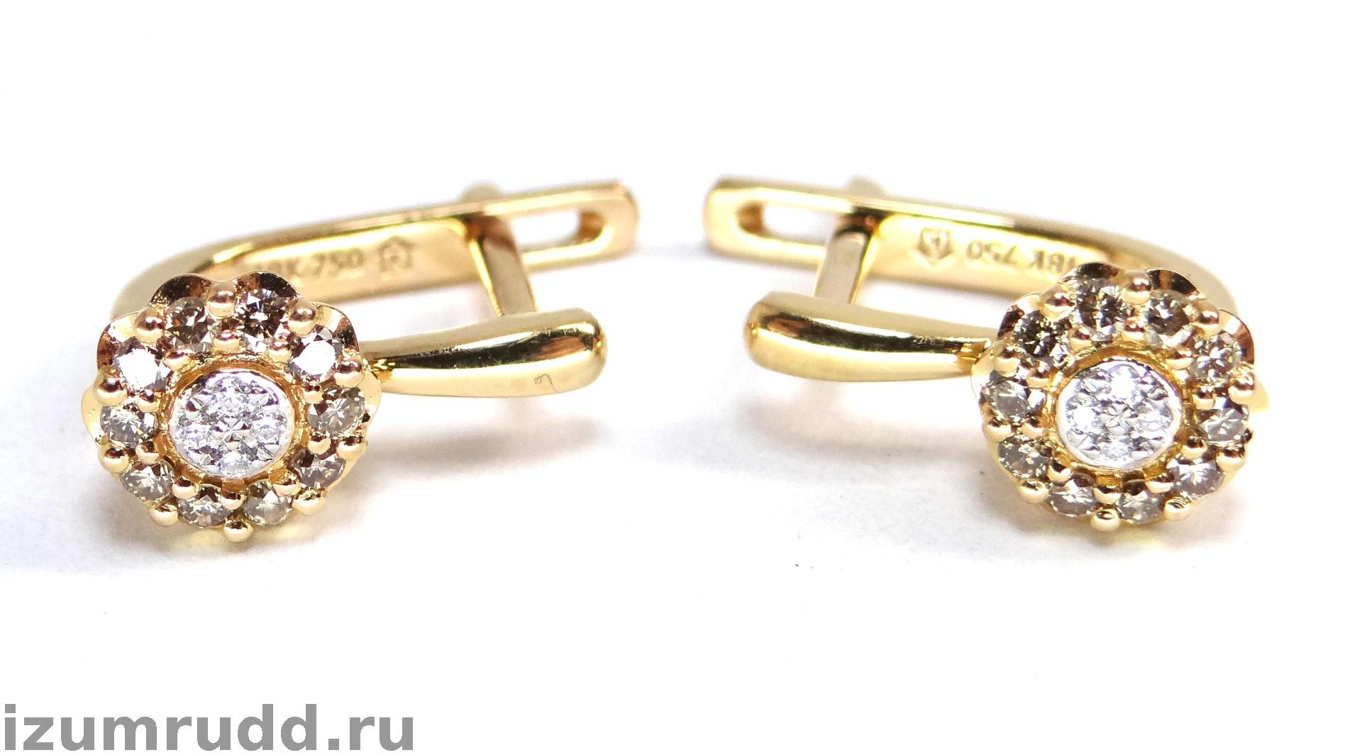 Маленькие золотые серьги с бриллиантами 750 пробы