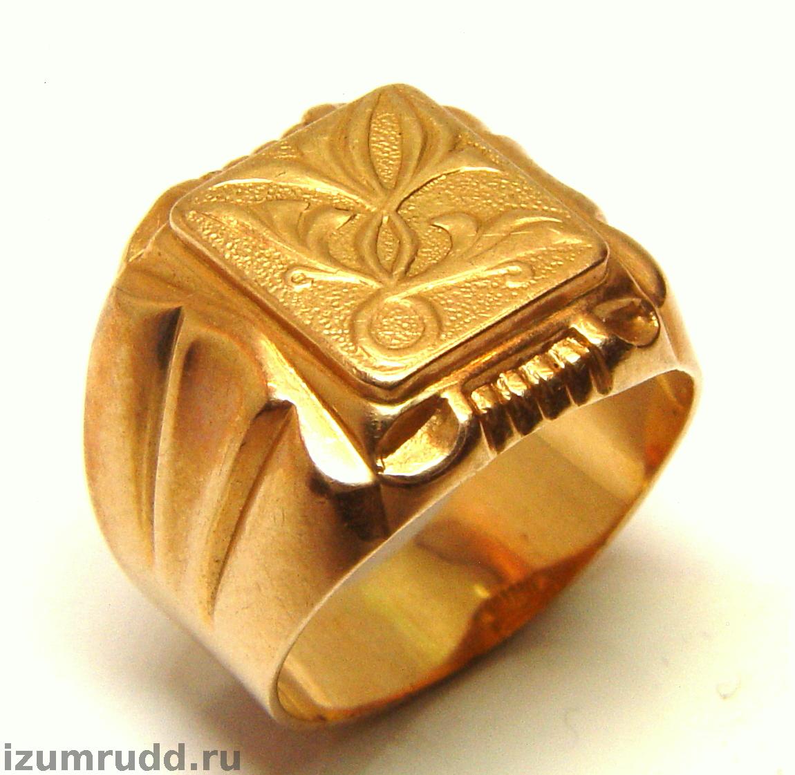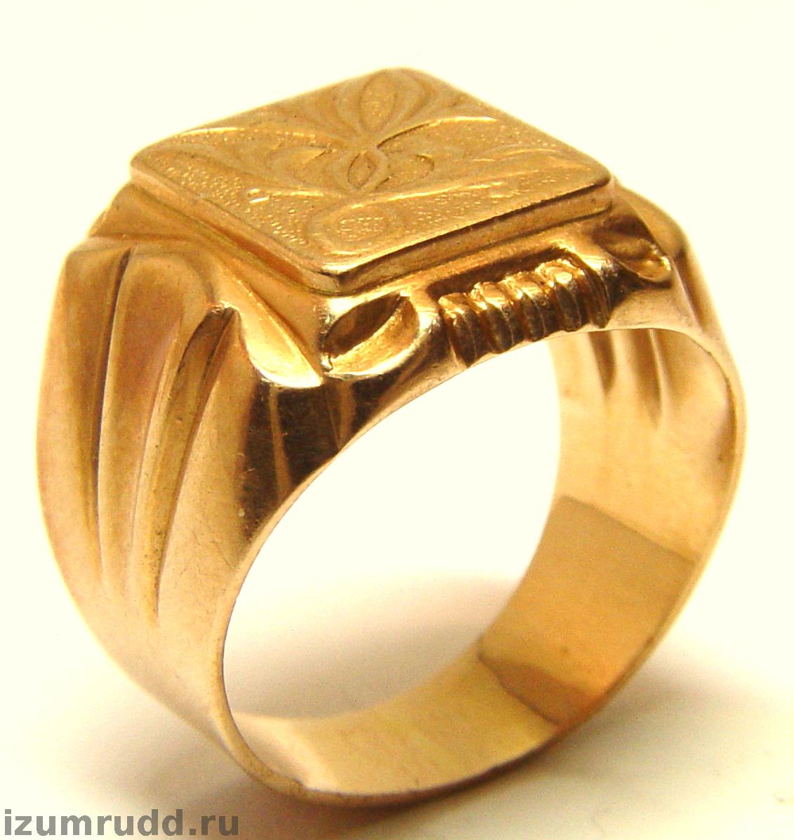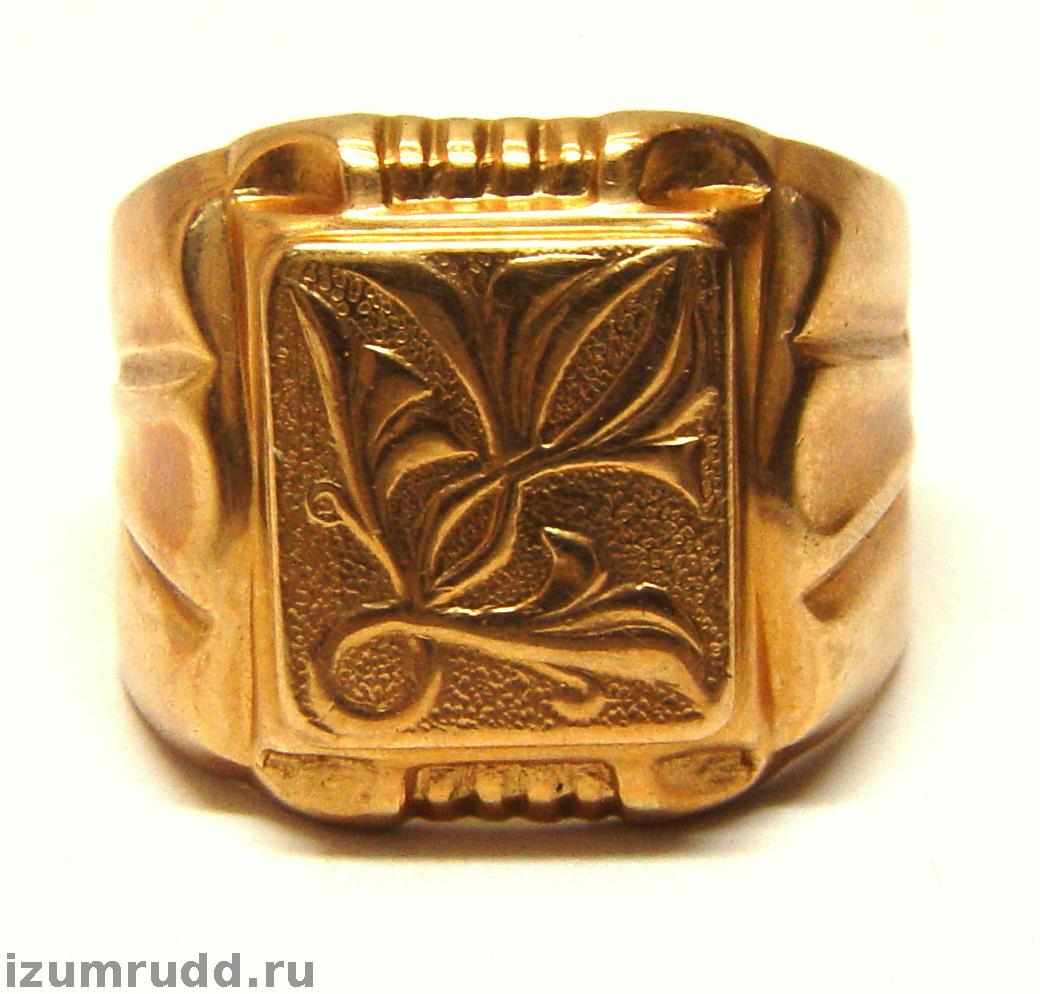 Кольцо печатка выполнено из розового золота 583 пробы.