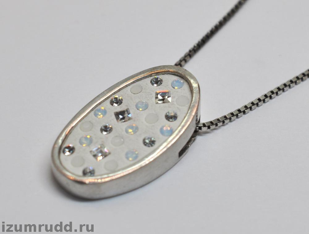 Кулон (подвеска) со стразами на цепочке, выполнен из серебра 925 пробы
