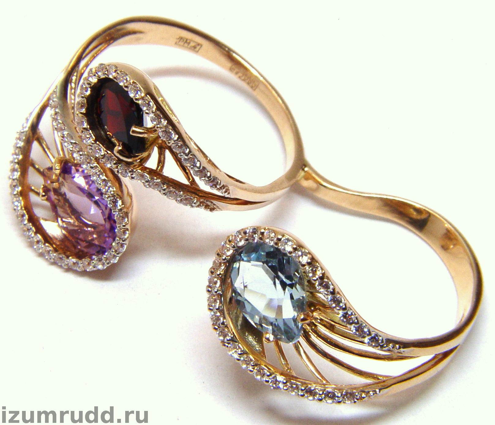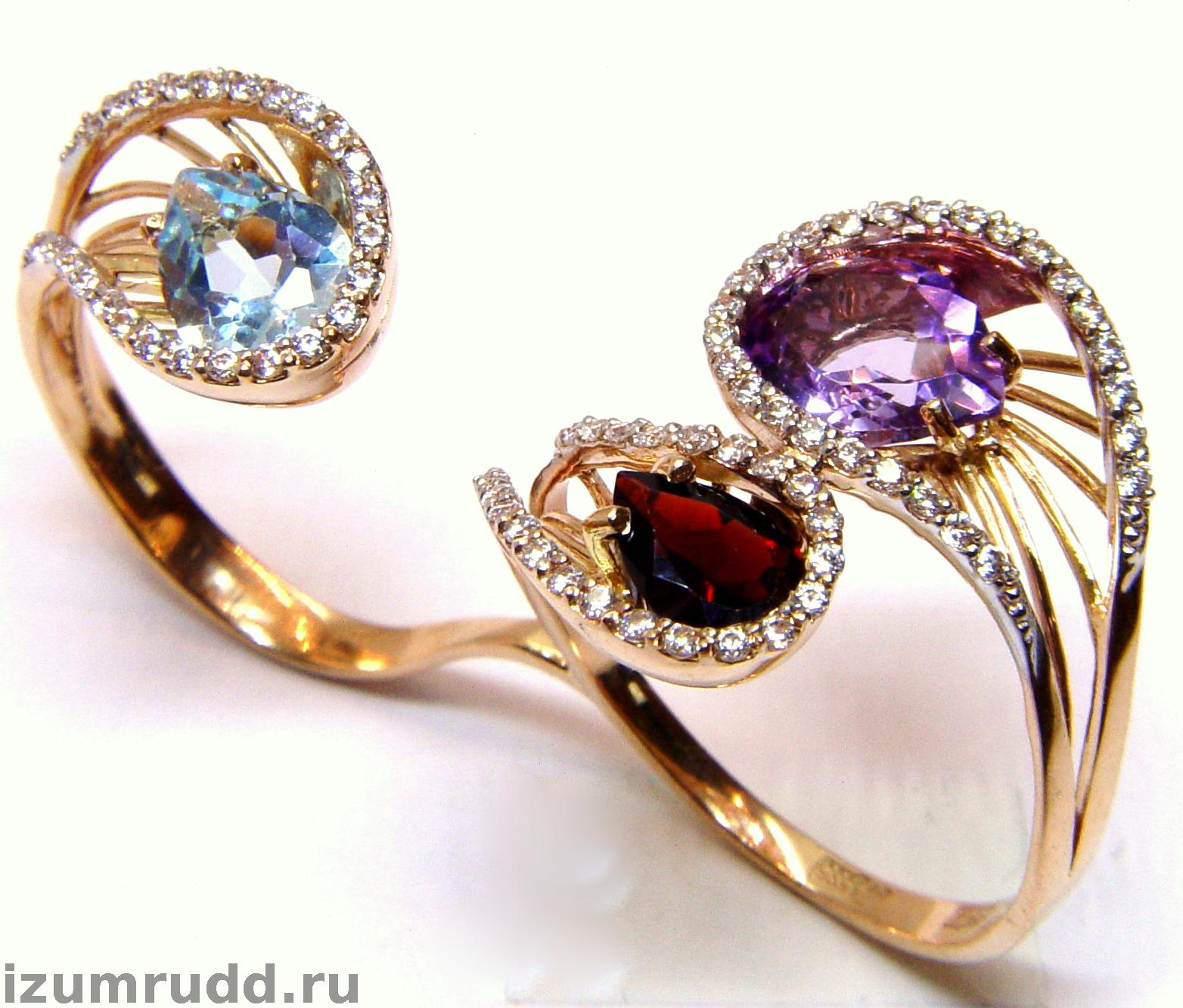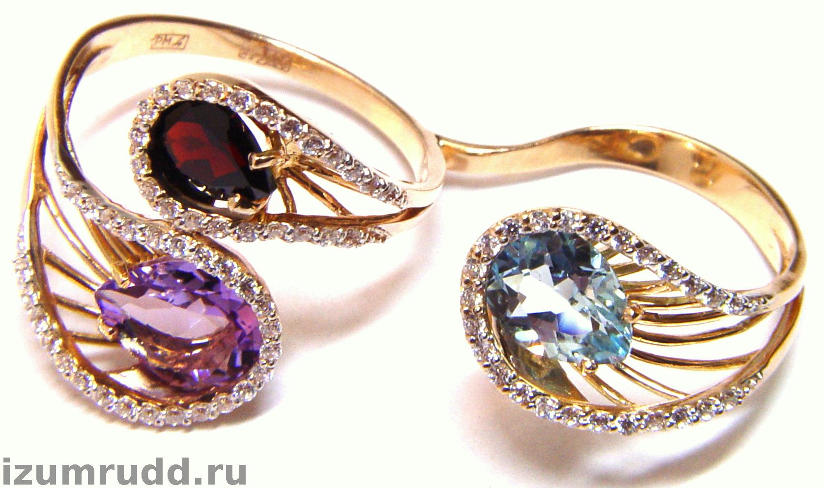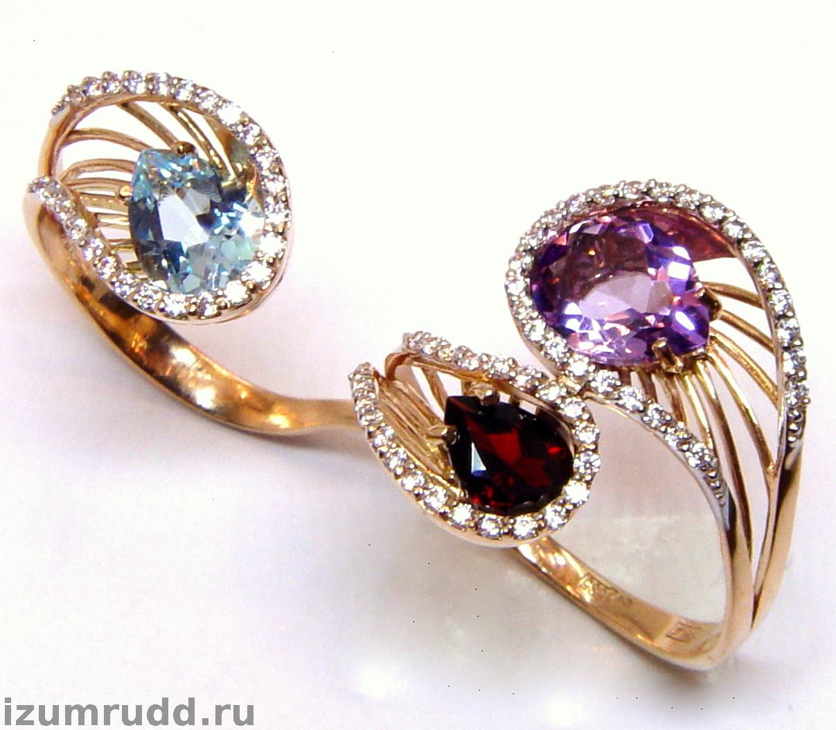 Оригинальное кольцо с самоцветами из золота 585 пр