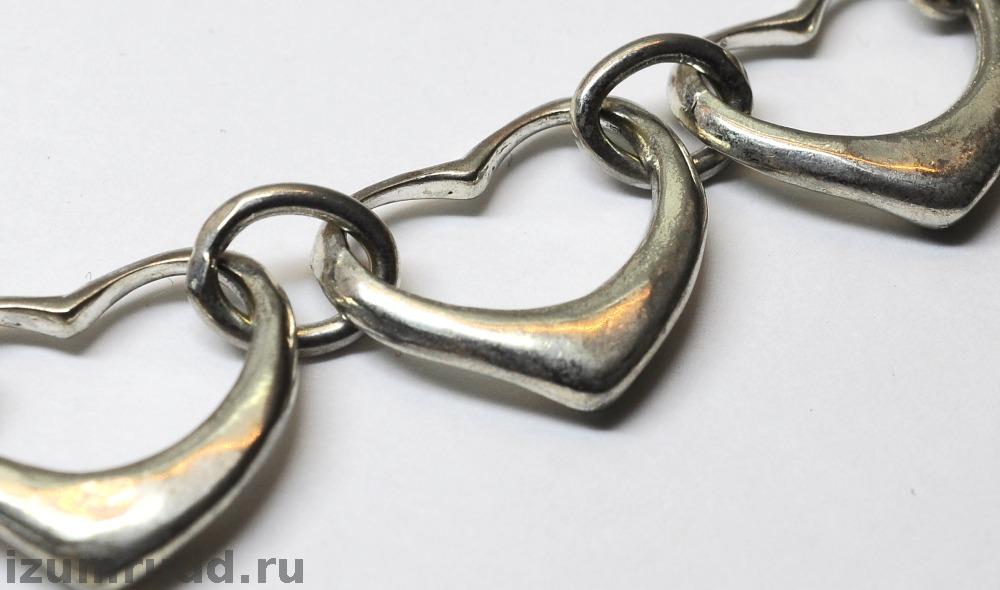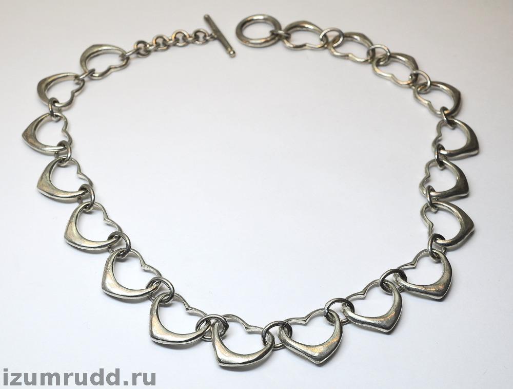 Колье, цепочка с сердечками, выполнена из серебра 925 пробы
