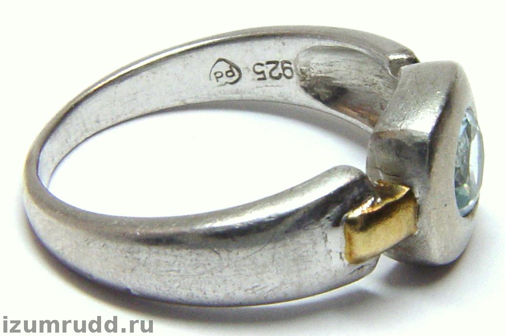 Кольцо с топазом, выполнено из серебра 925 пробы с позолотой.
