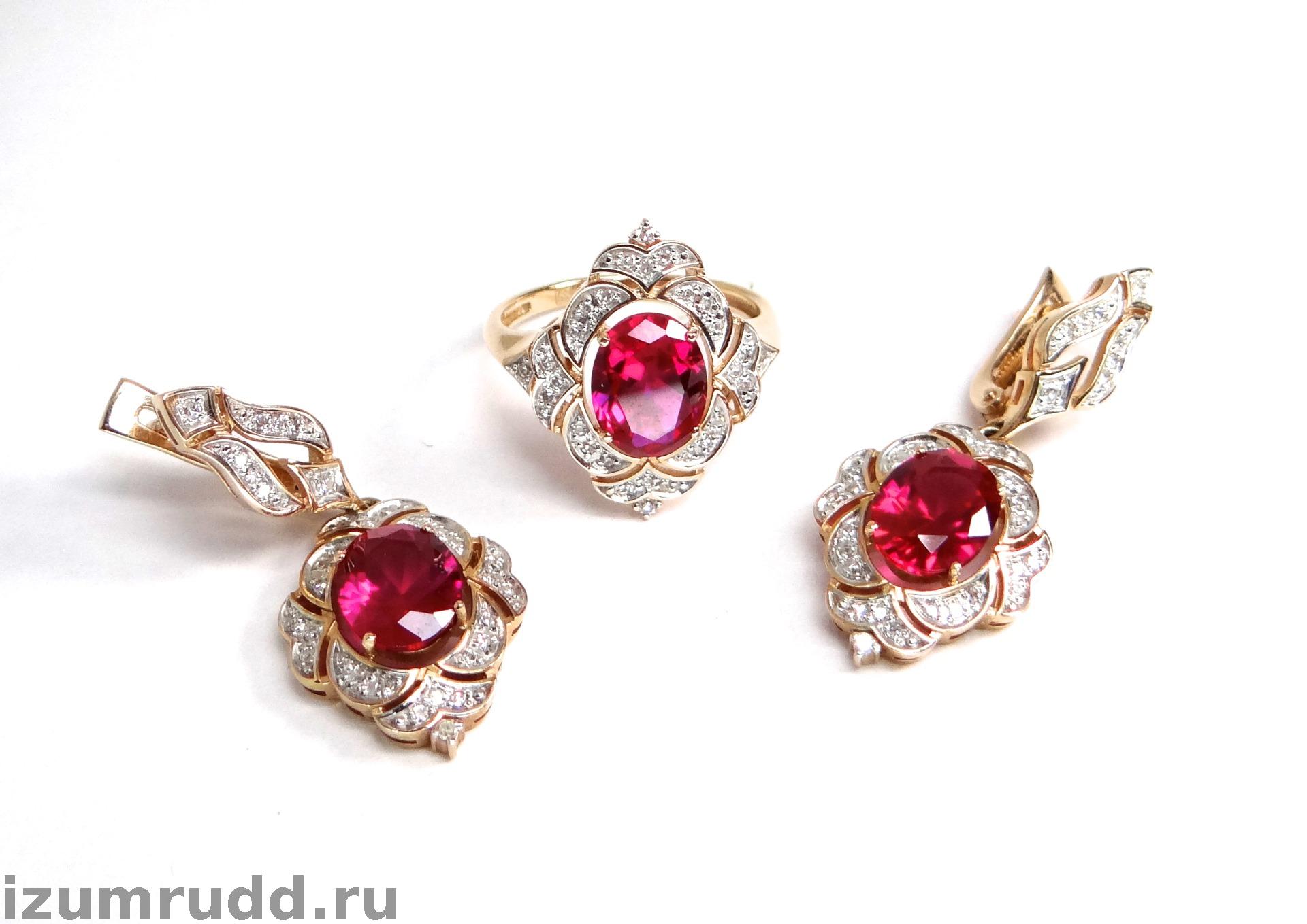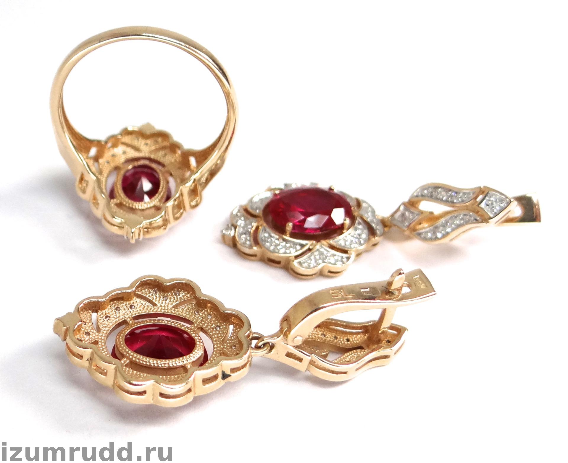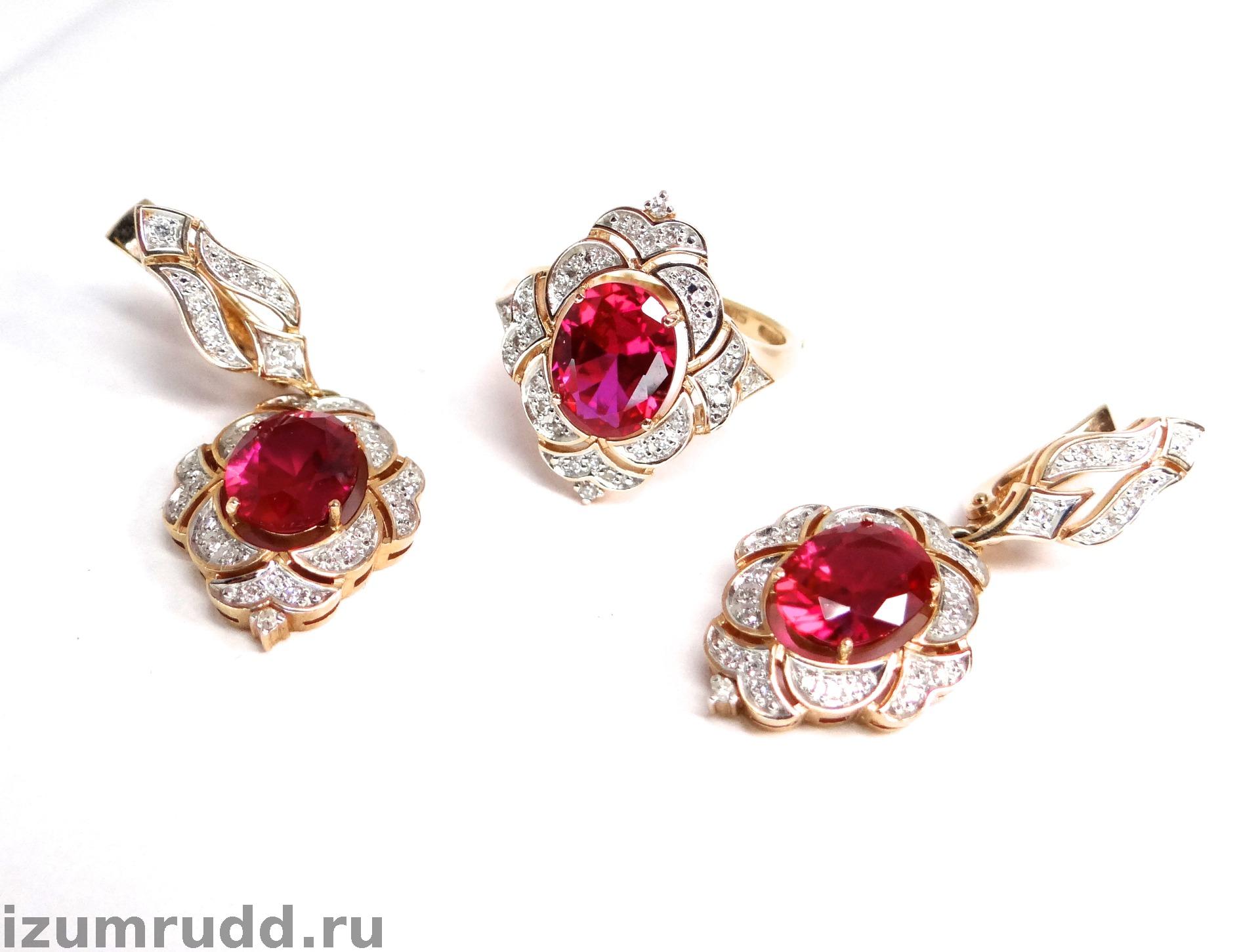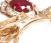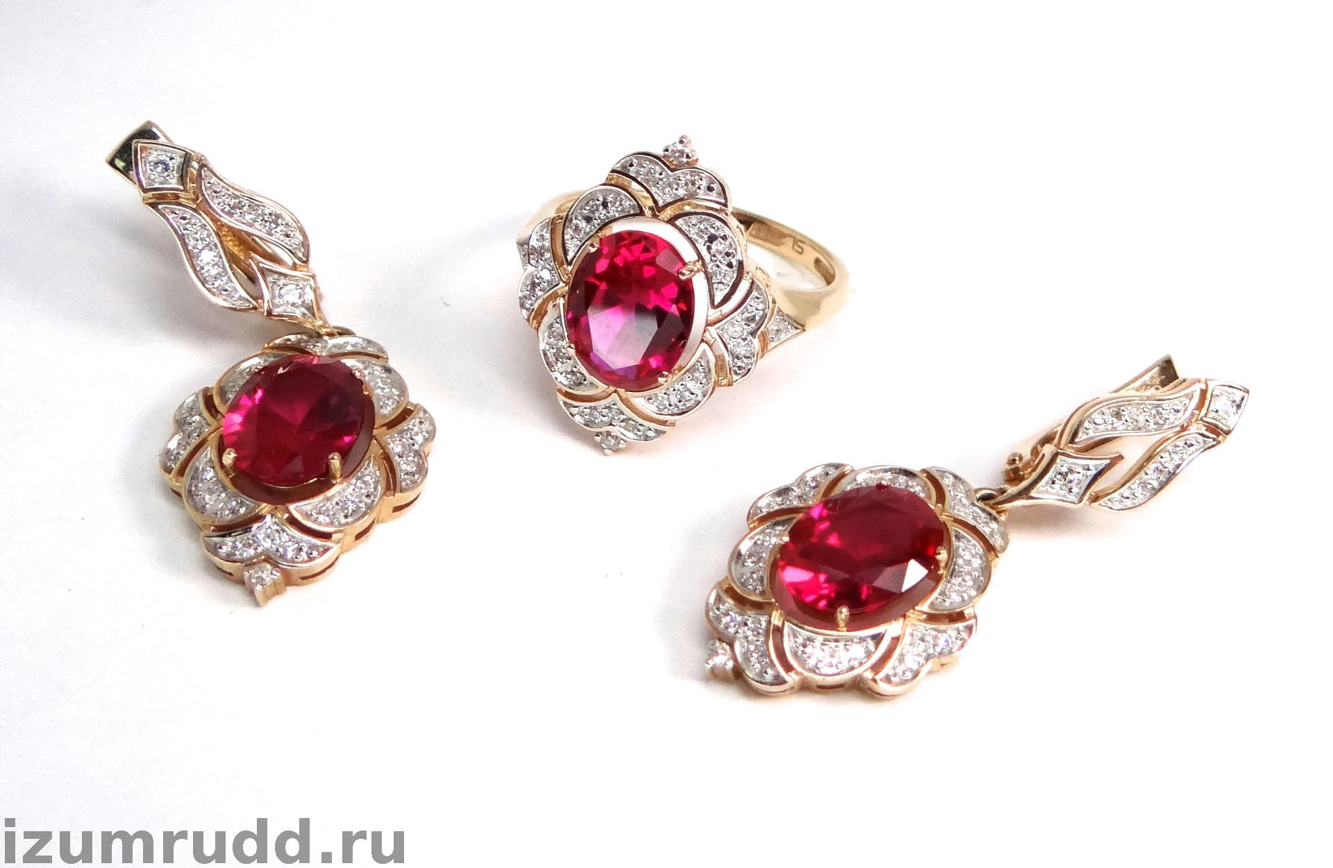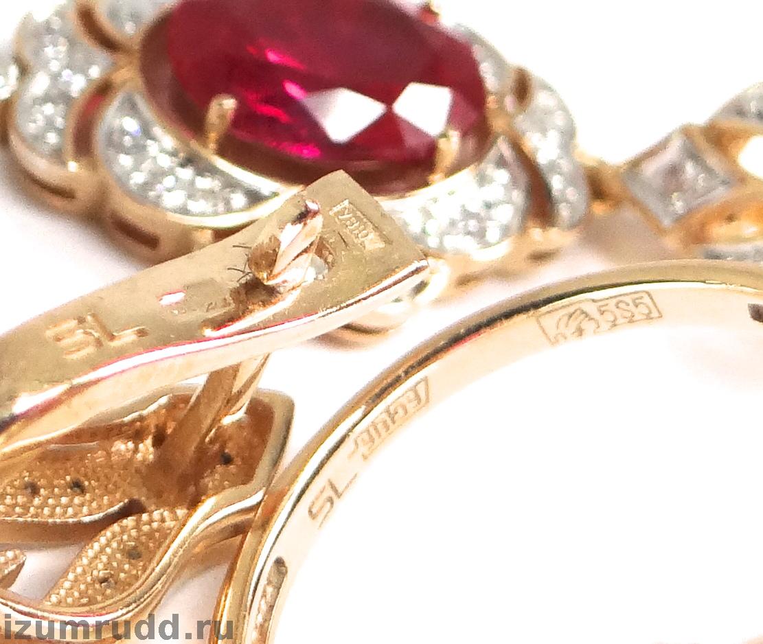 вставки: 4 бриллианта 0.04 ct, 24 бриллианта - 0.092 ct, синтетический рубин 9.0 х 7.5 мм