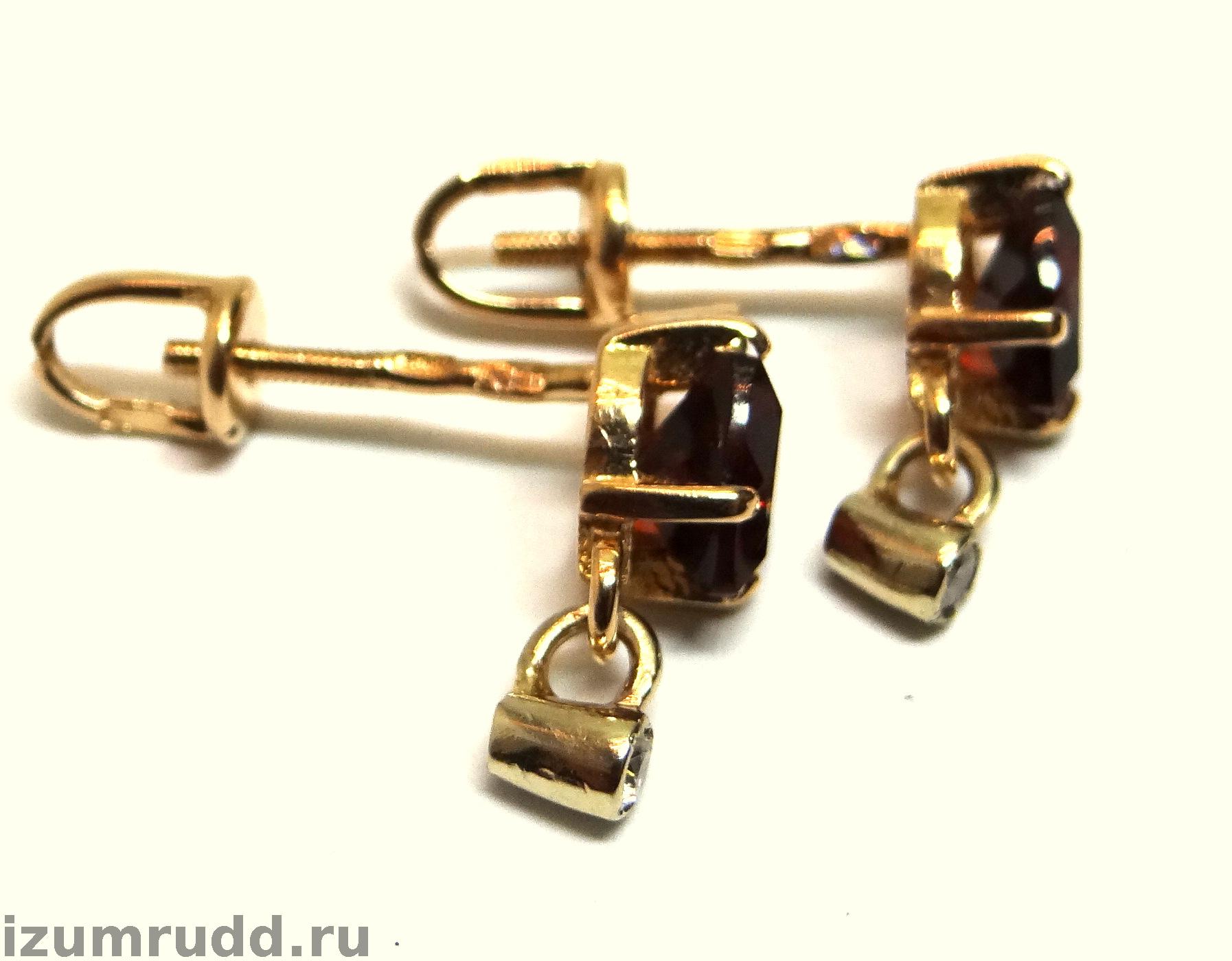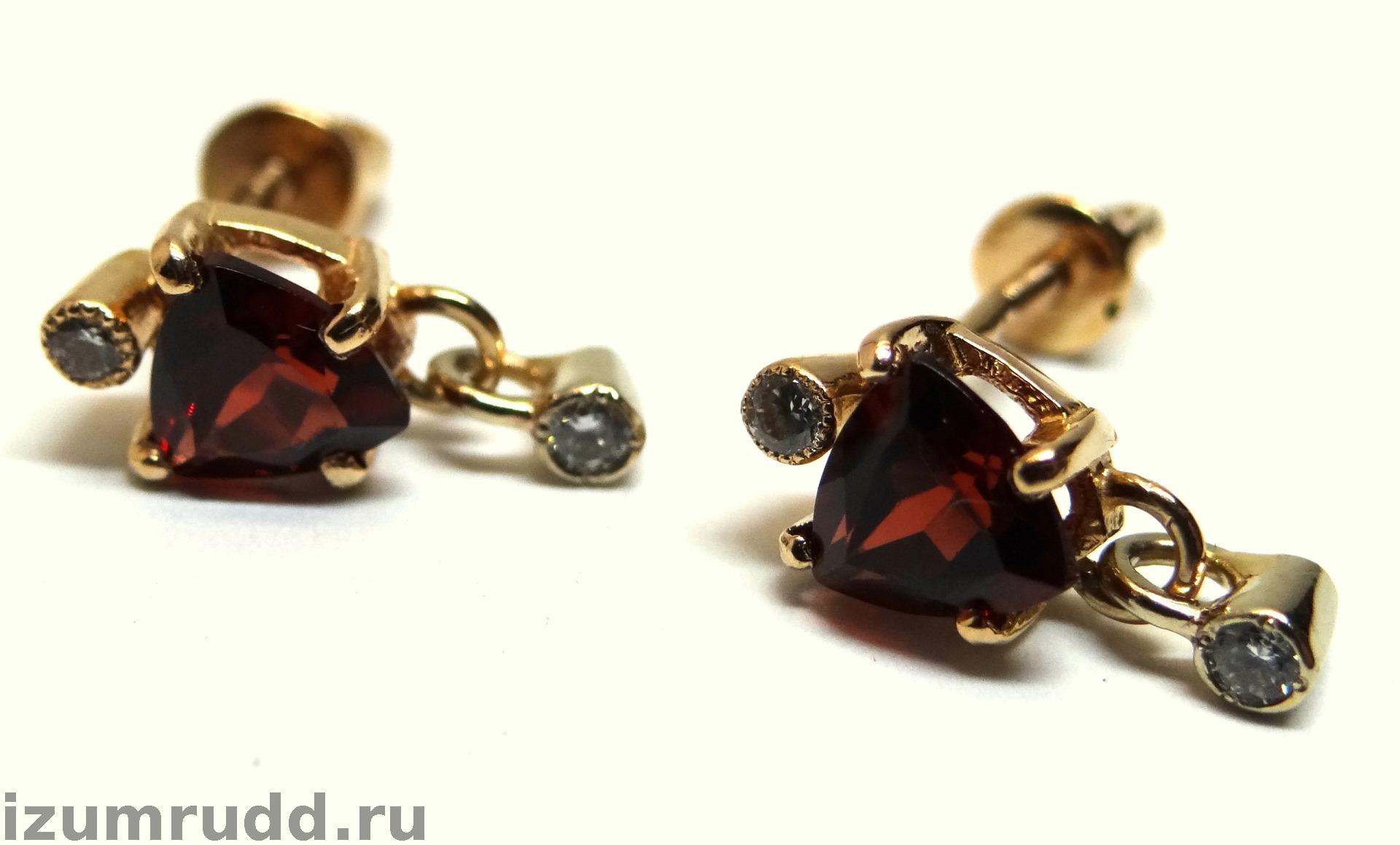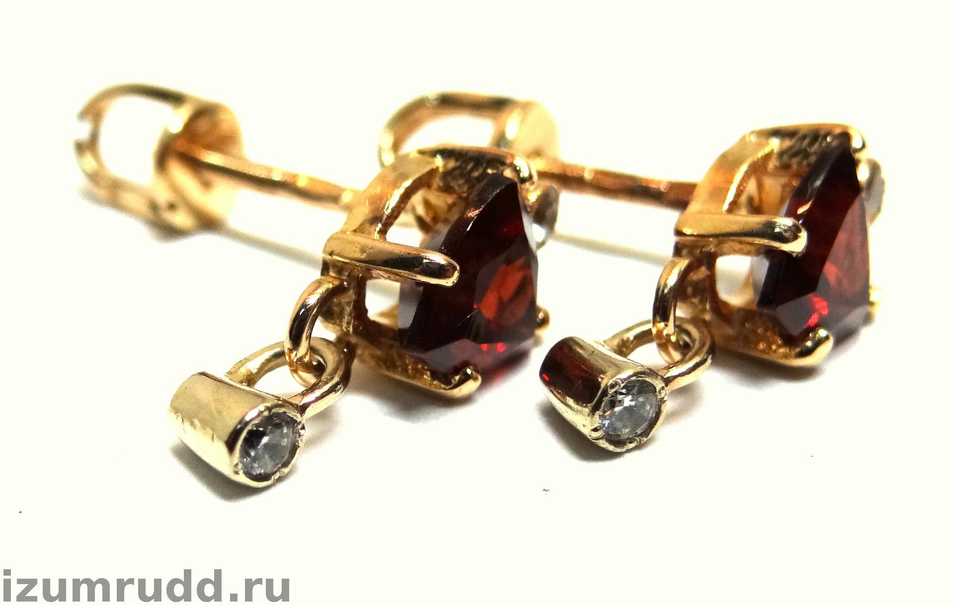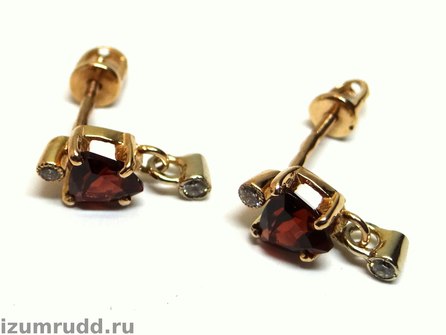 Серьги пусеты из золота 585 пробы с гранатами и фианитами.