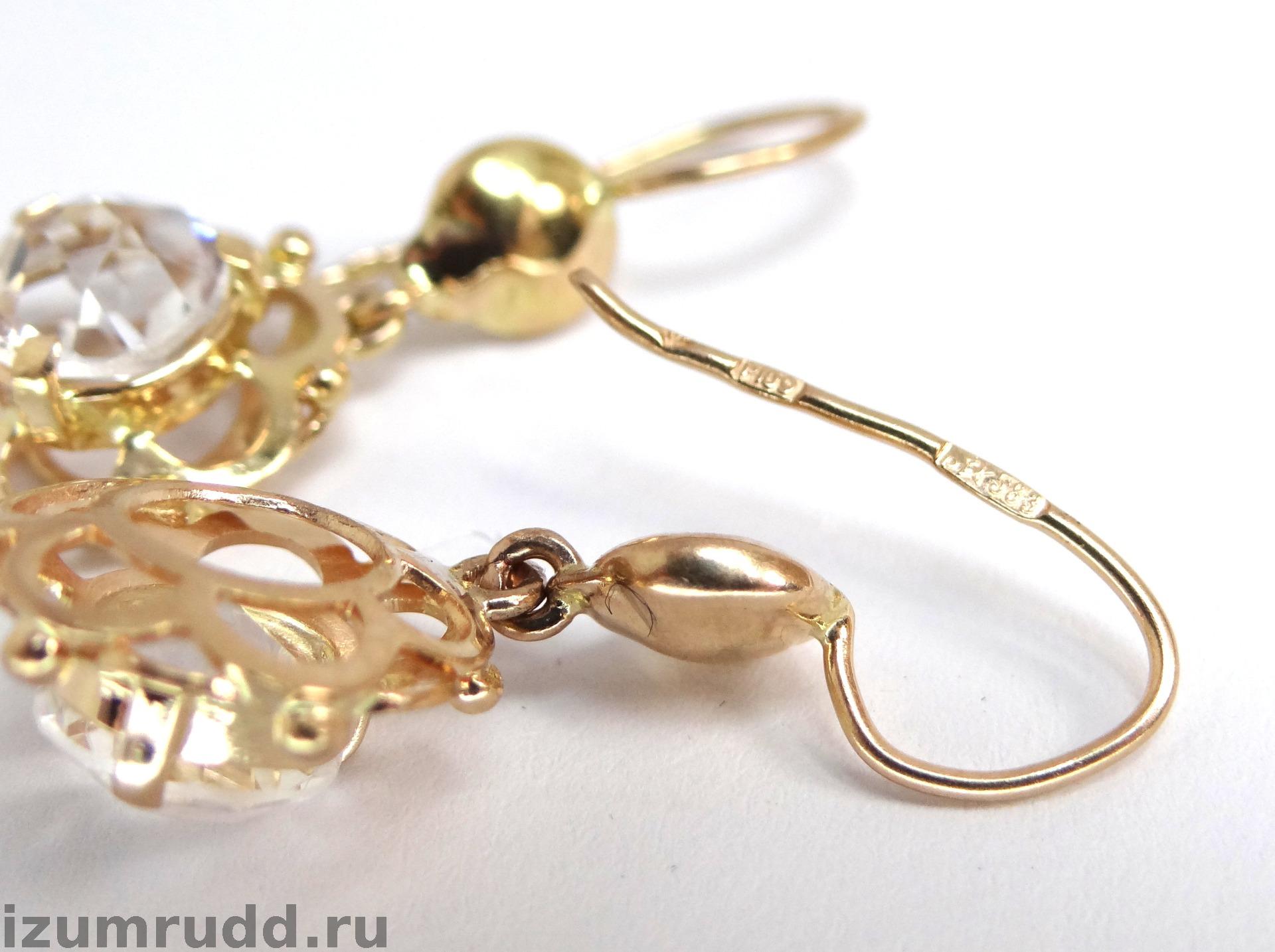 Серьги с горным хрусталем из золота 583 пробы СССР