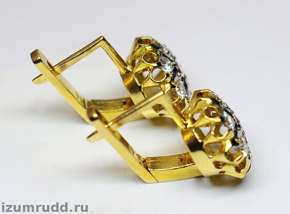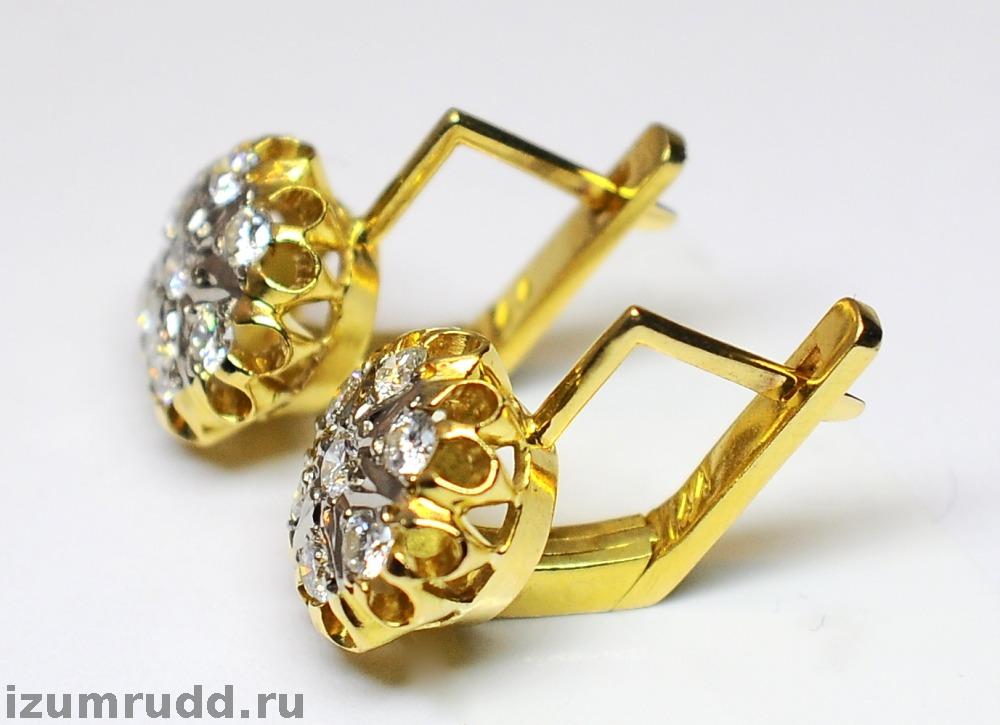 Серьги золотые "Малинка" с бриллиантами Советского периода 750 пробы