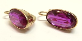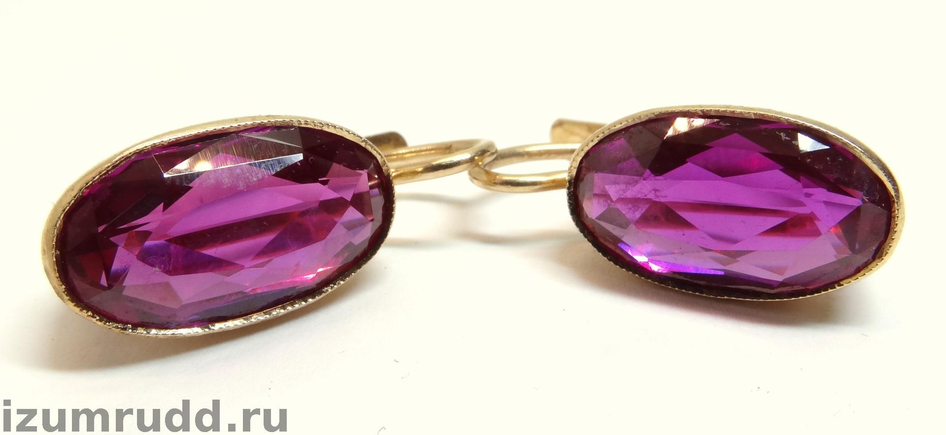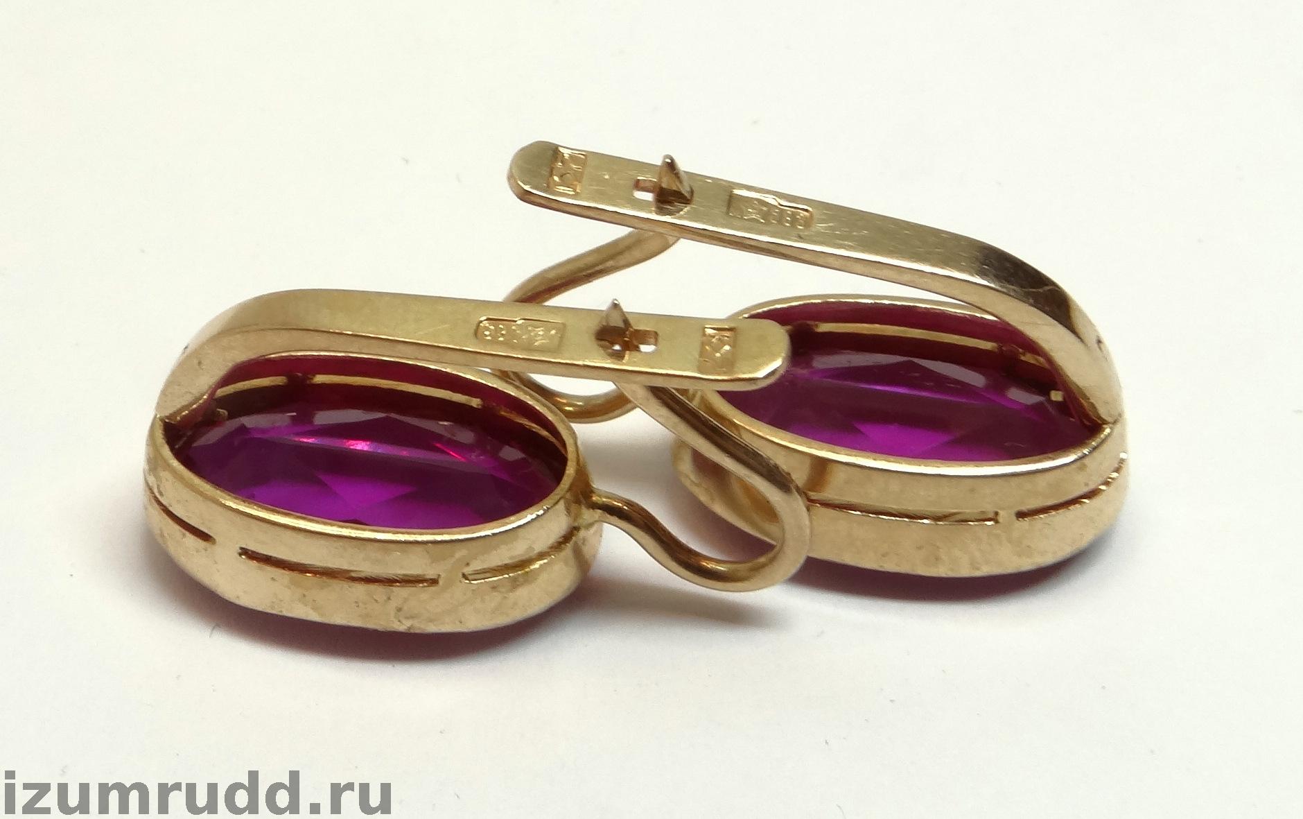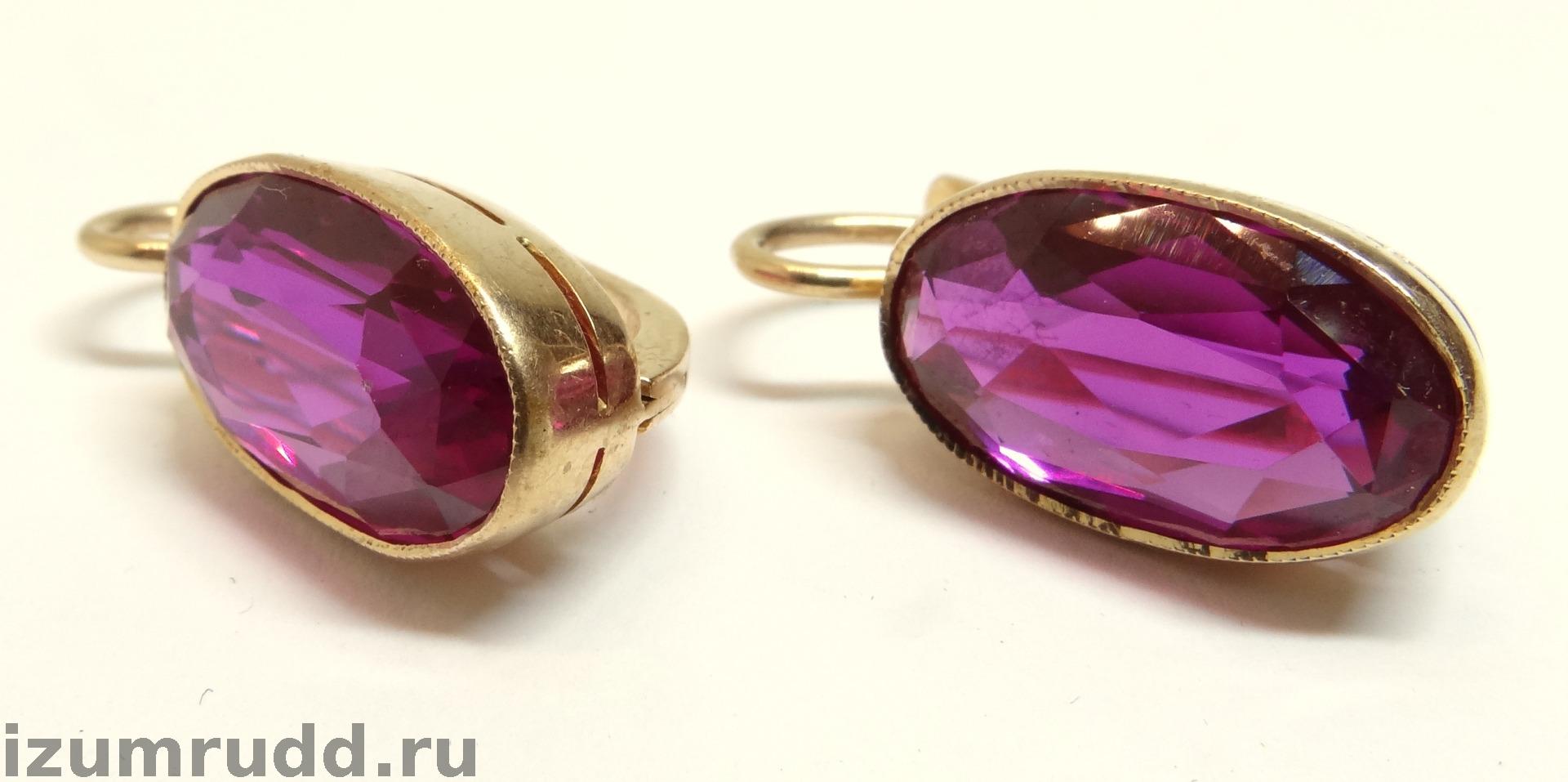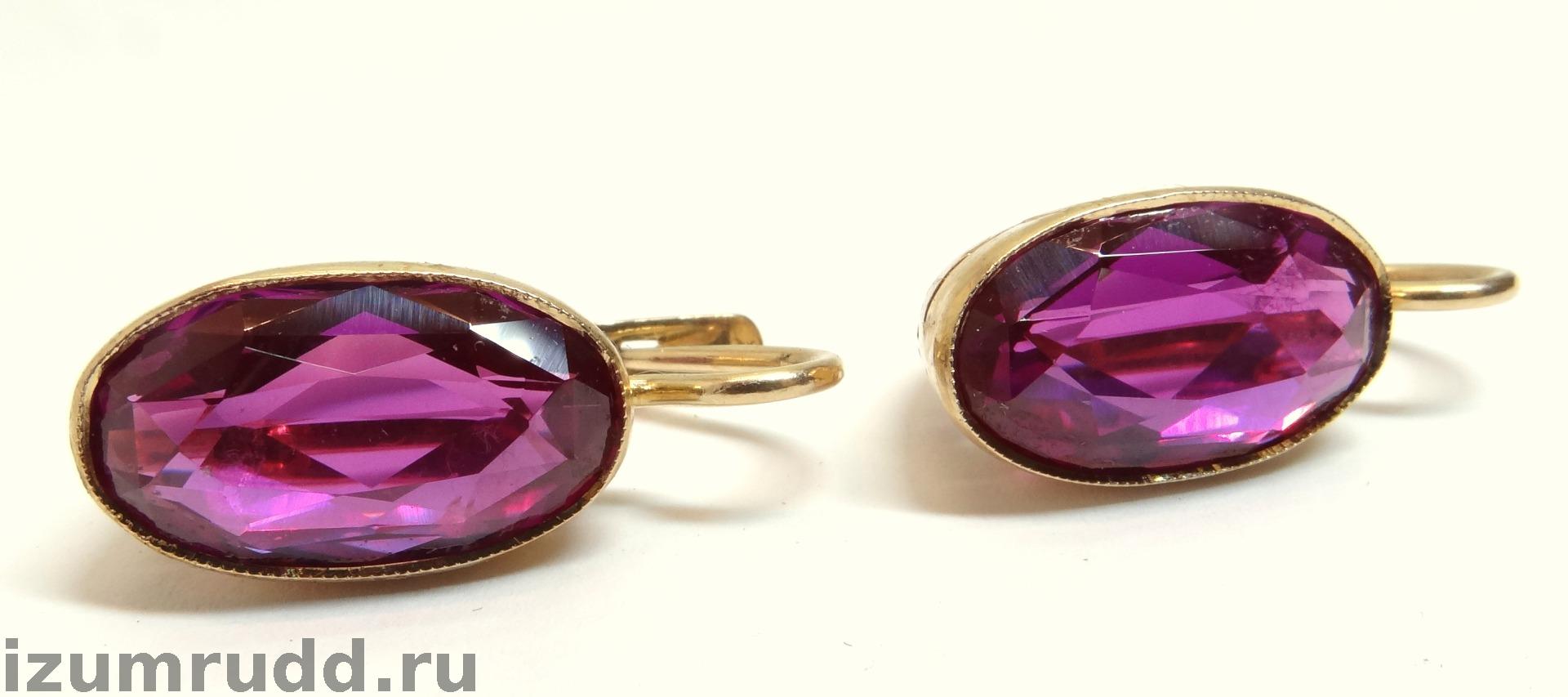 Золотые серьги с синтетическими корундами Советского периода выполнены из розового золота 583 пробы.