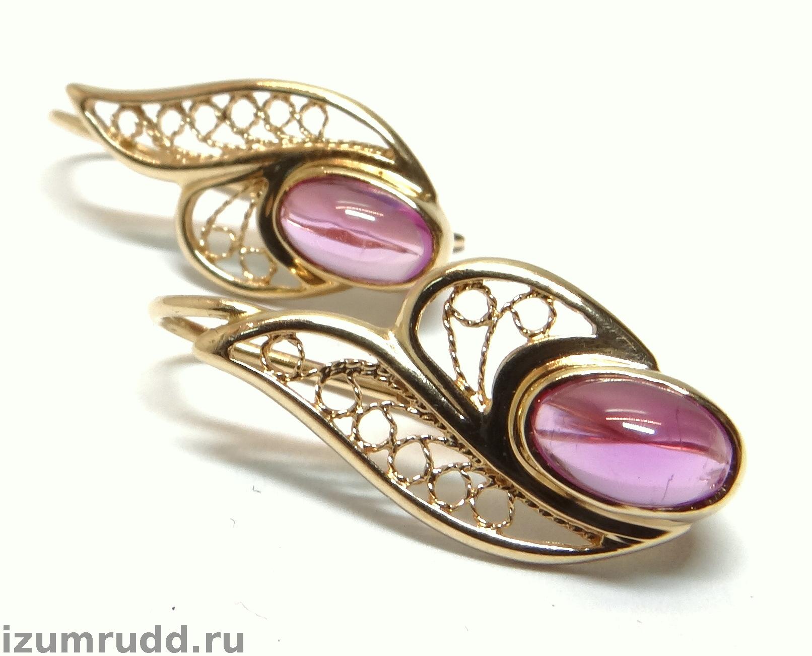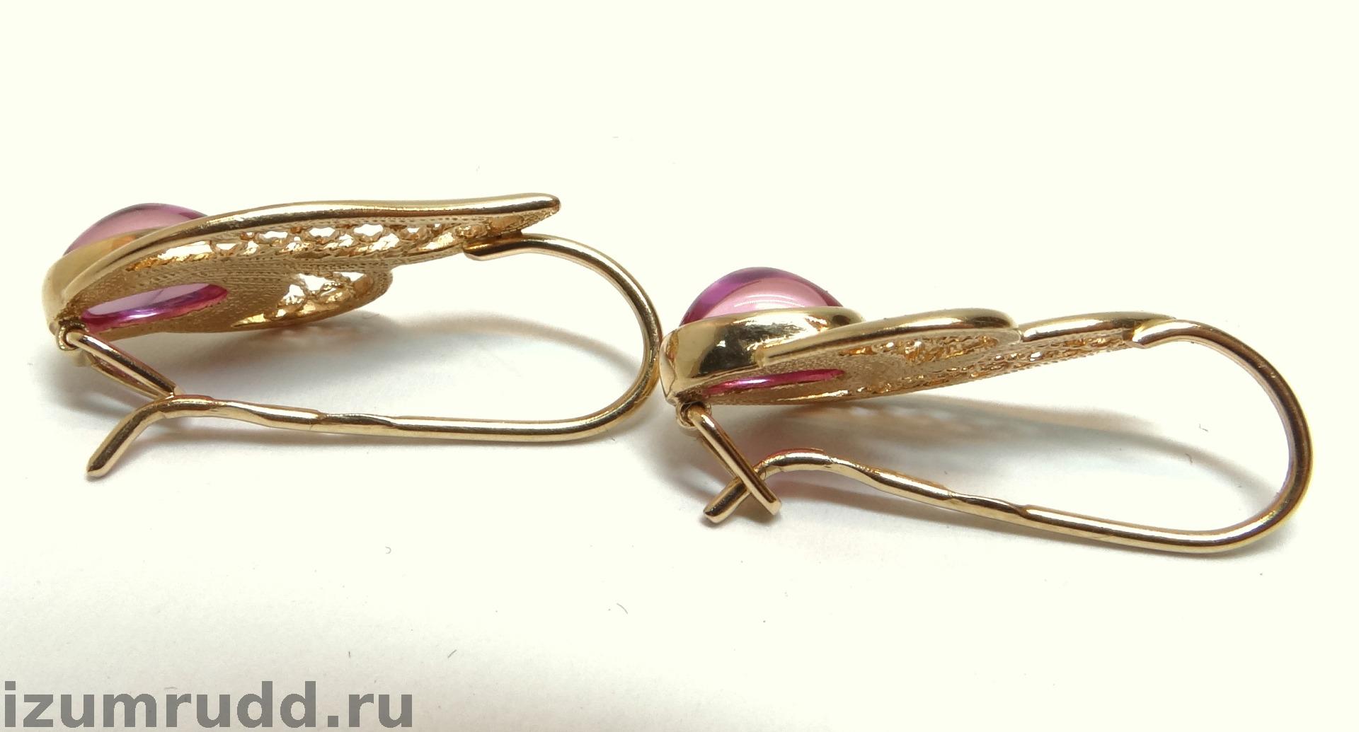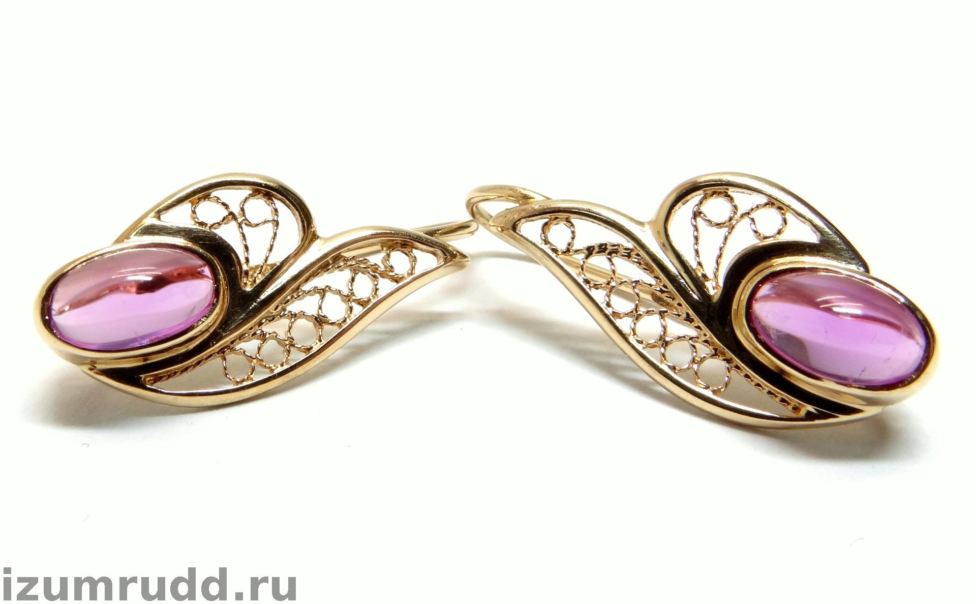 Золотые серьги с искусственными розовыми сапфирами Советского периода, выполнены из розового золота 583 пробы.