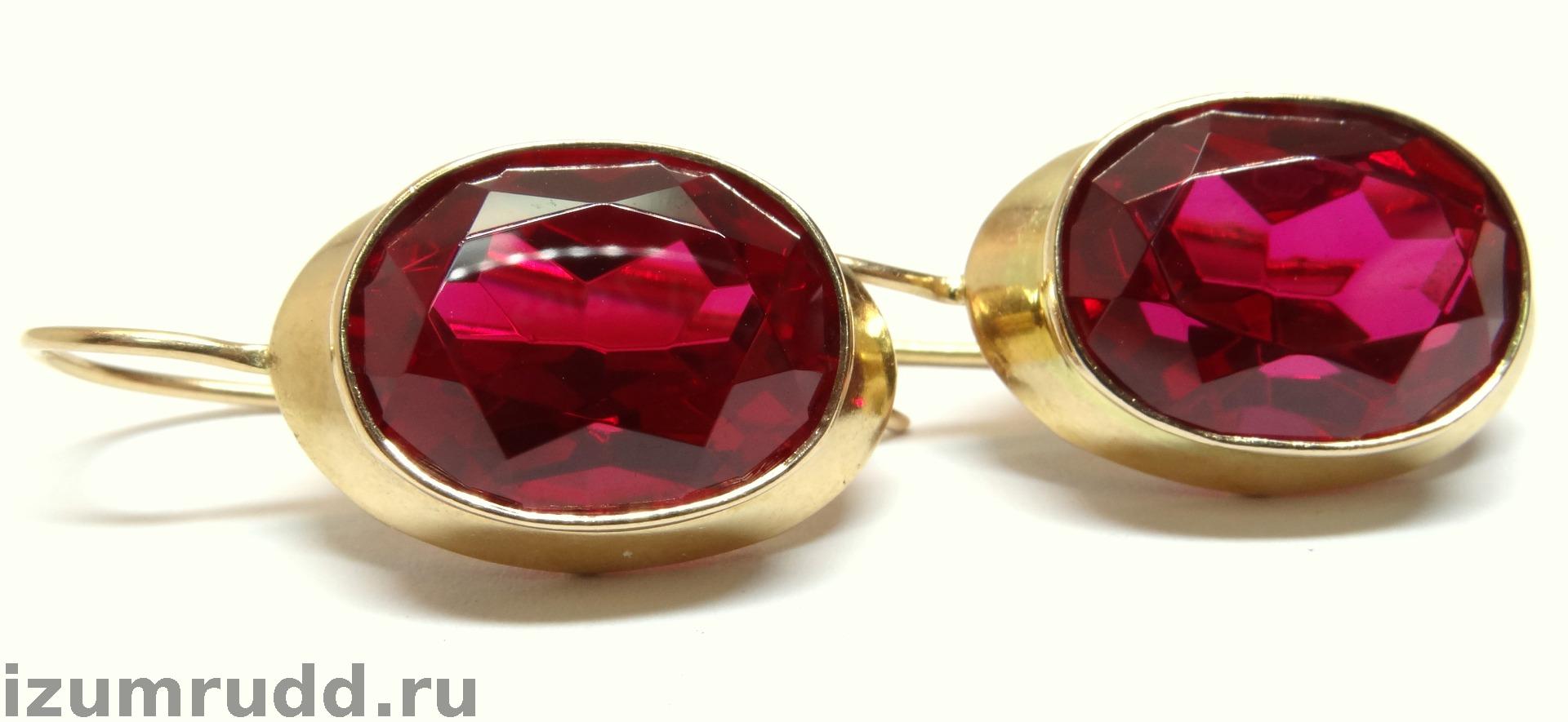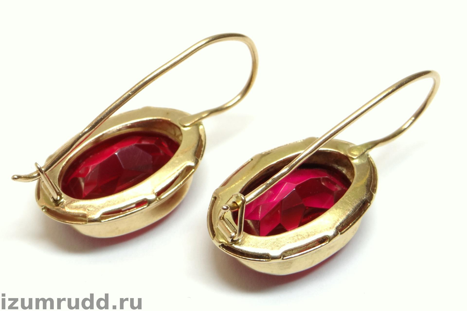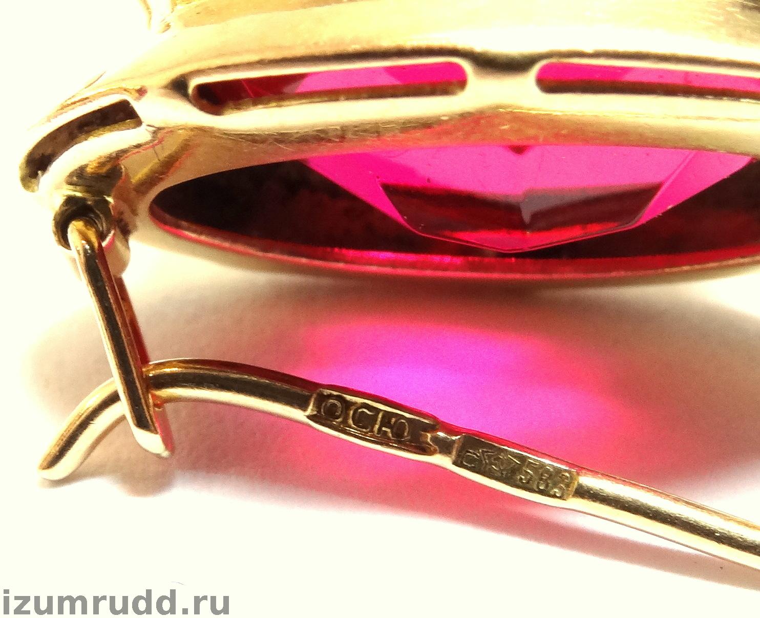 Серьги с искусственными рубинами советского периода выполнены из розового золота 583 пробы.