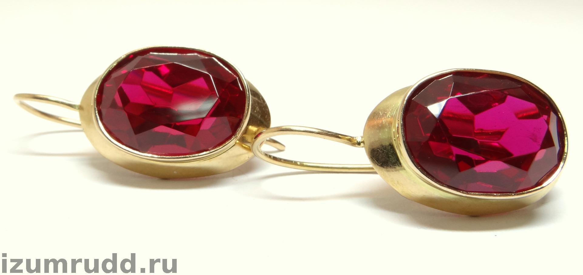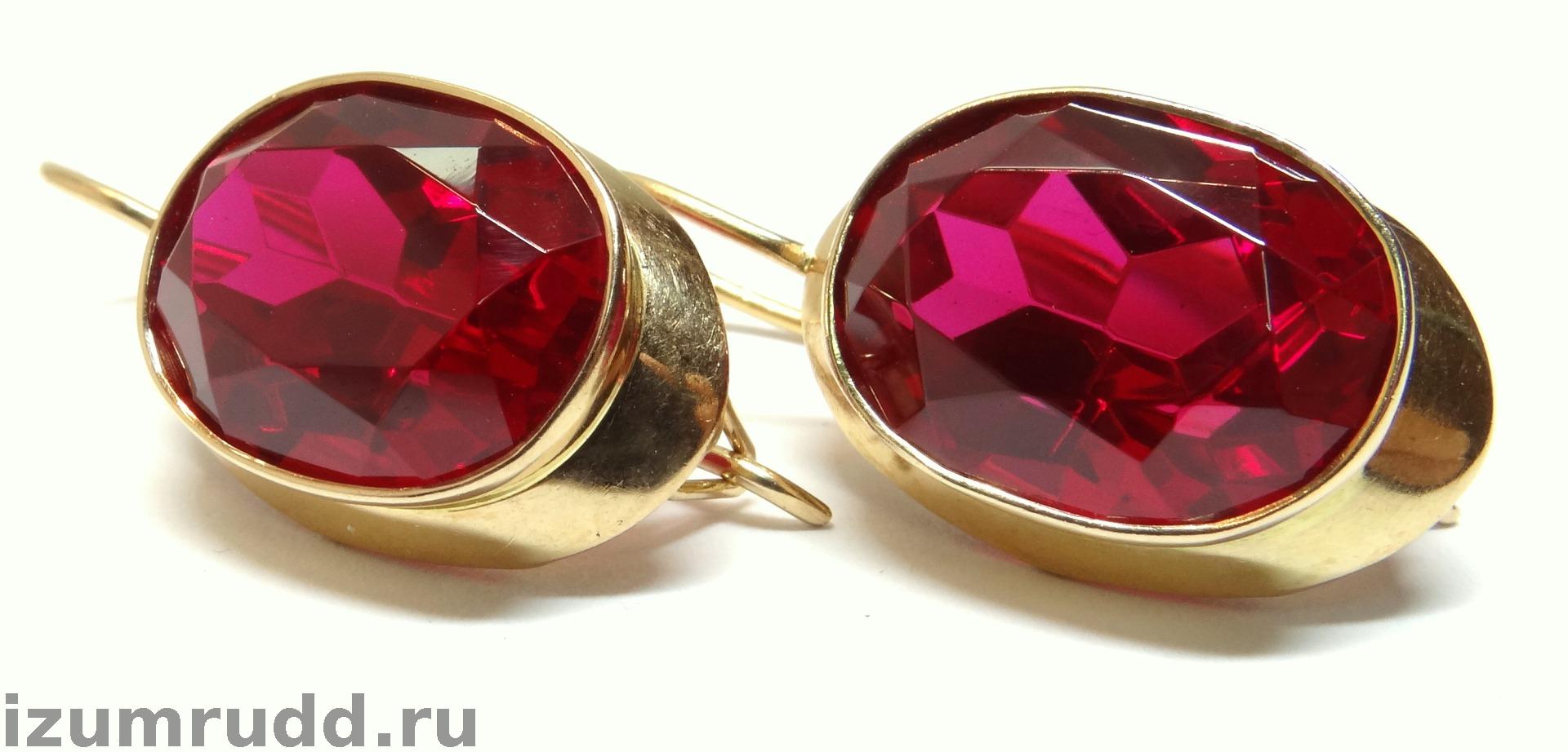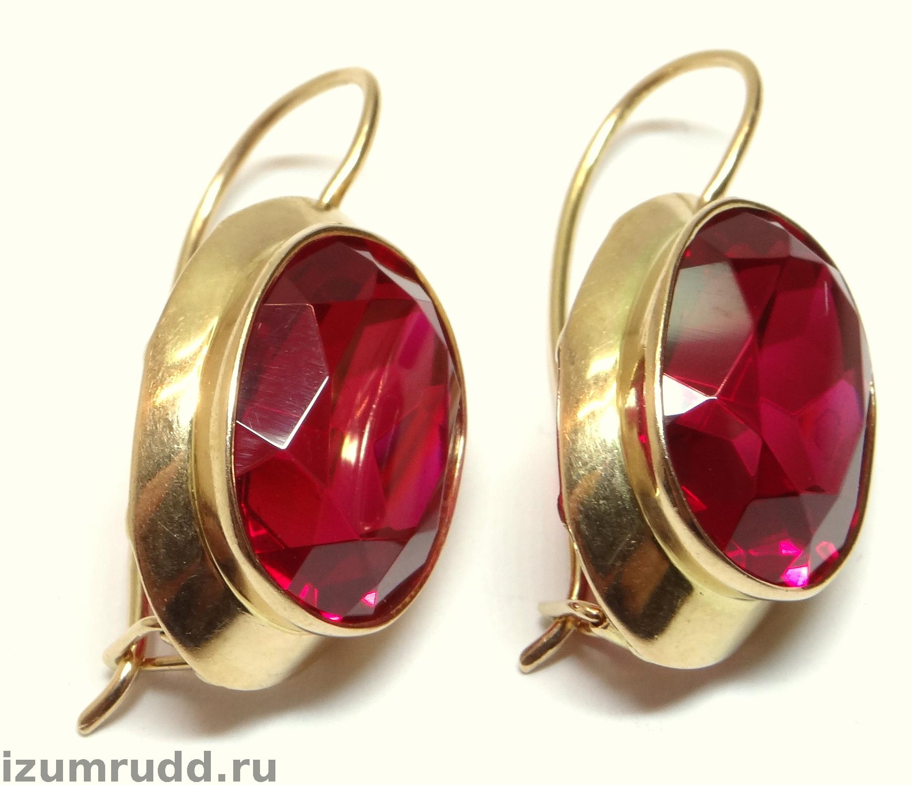 Серьги с искусственными рубинами советского периода выполнены из розового золота 583 пробы.
