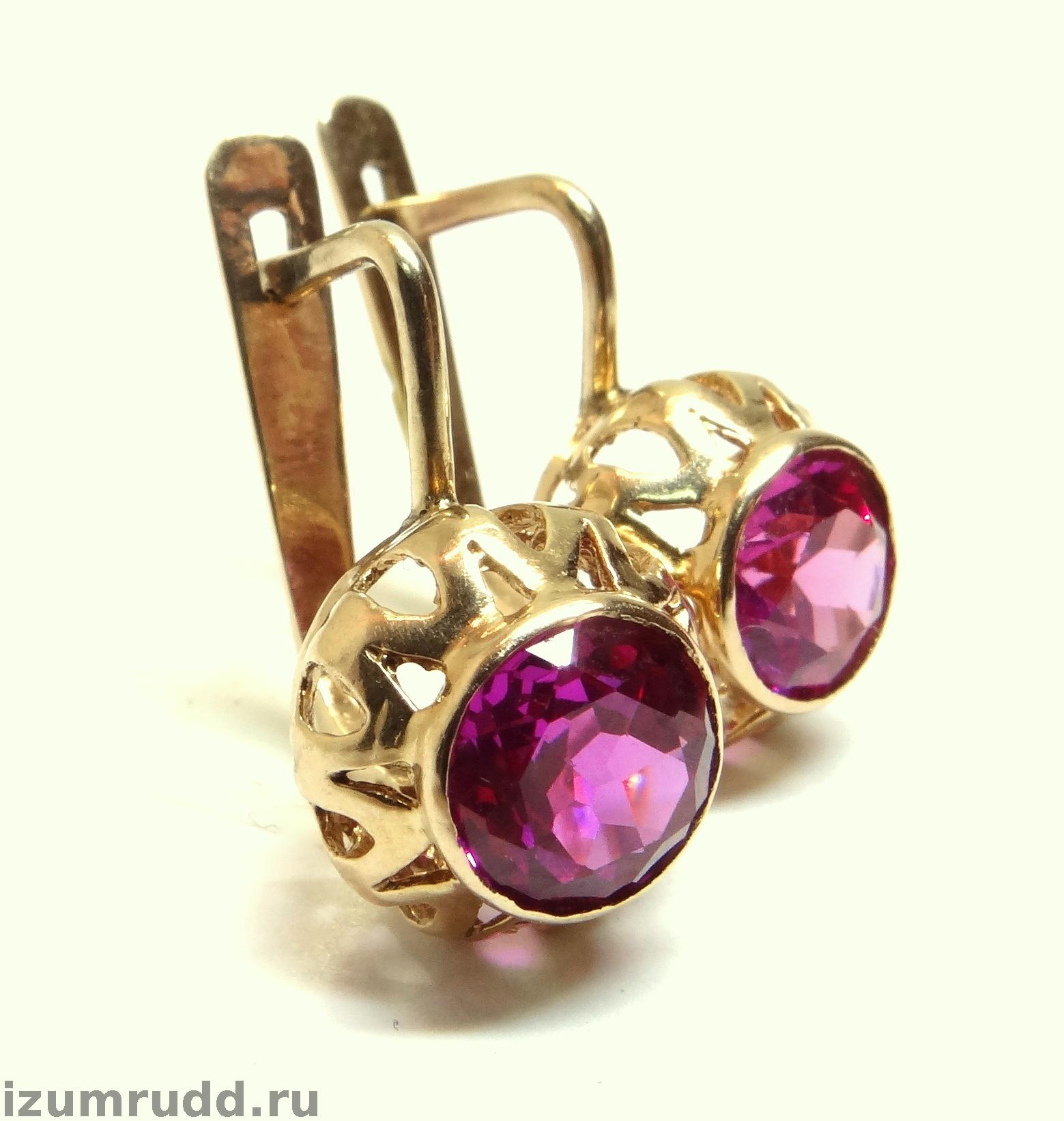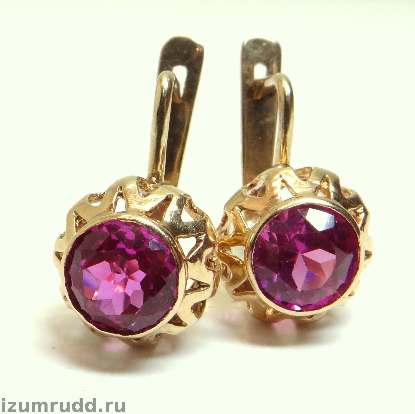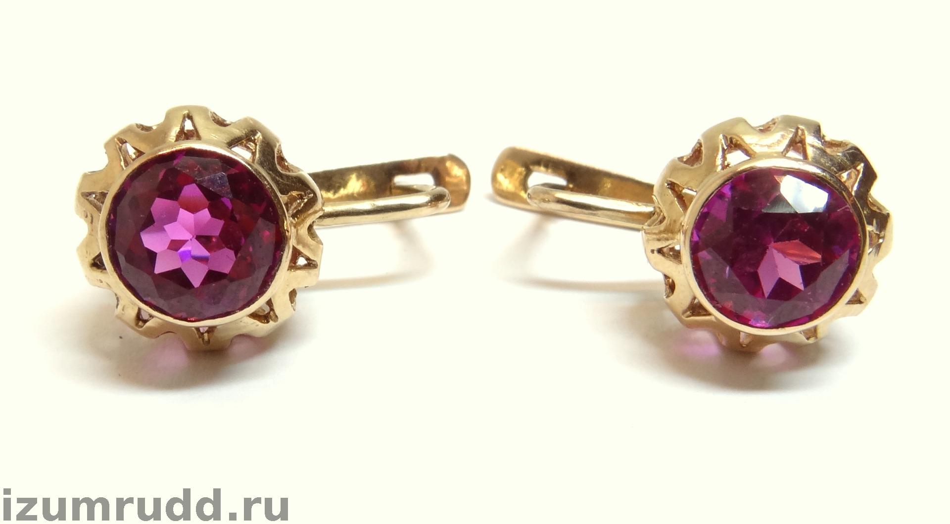 Золотые серьги с синтетическими корундами Советского периода выполнены из розового золота 583 пробы.
