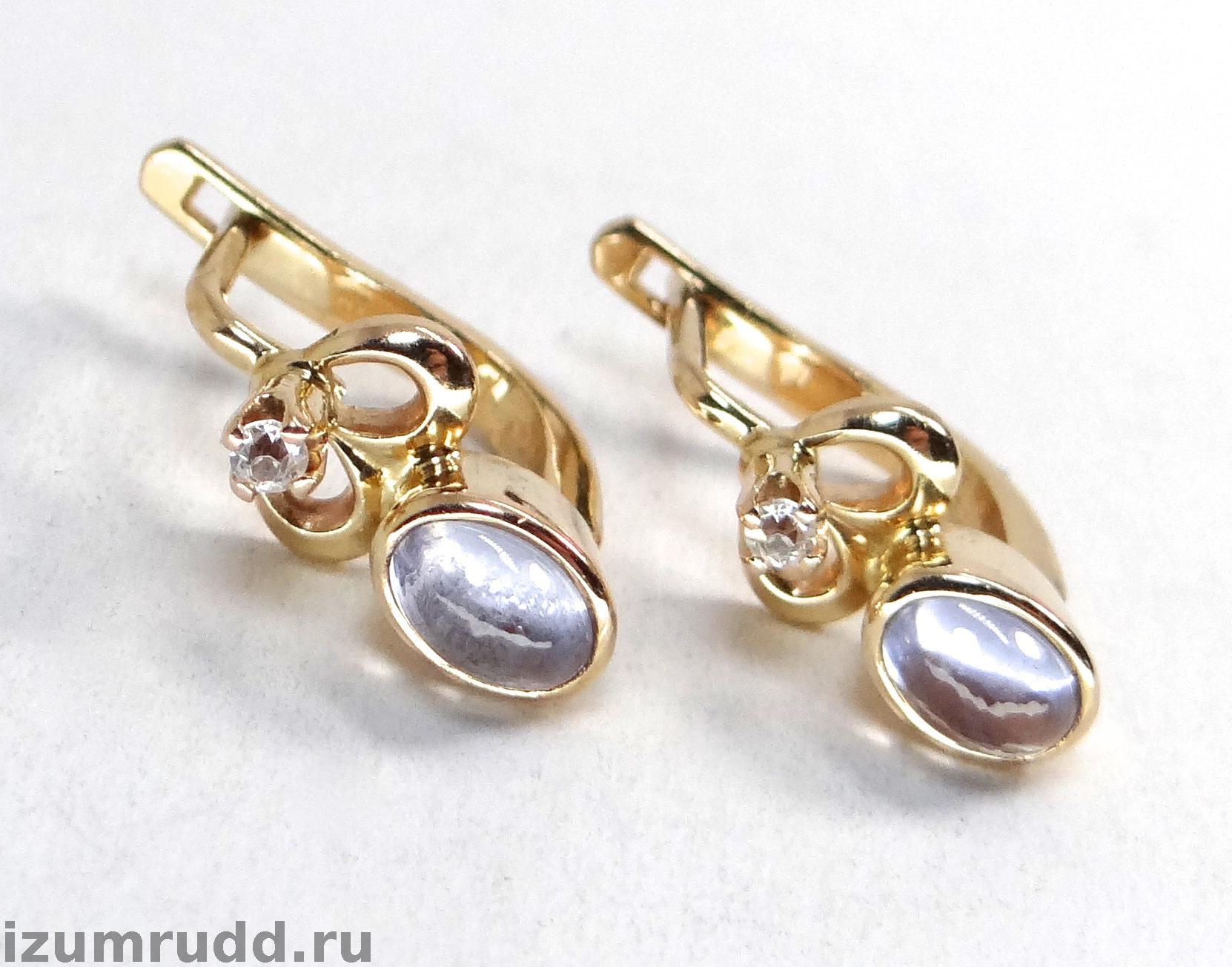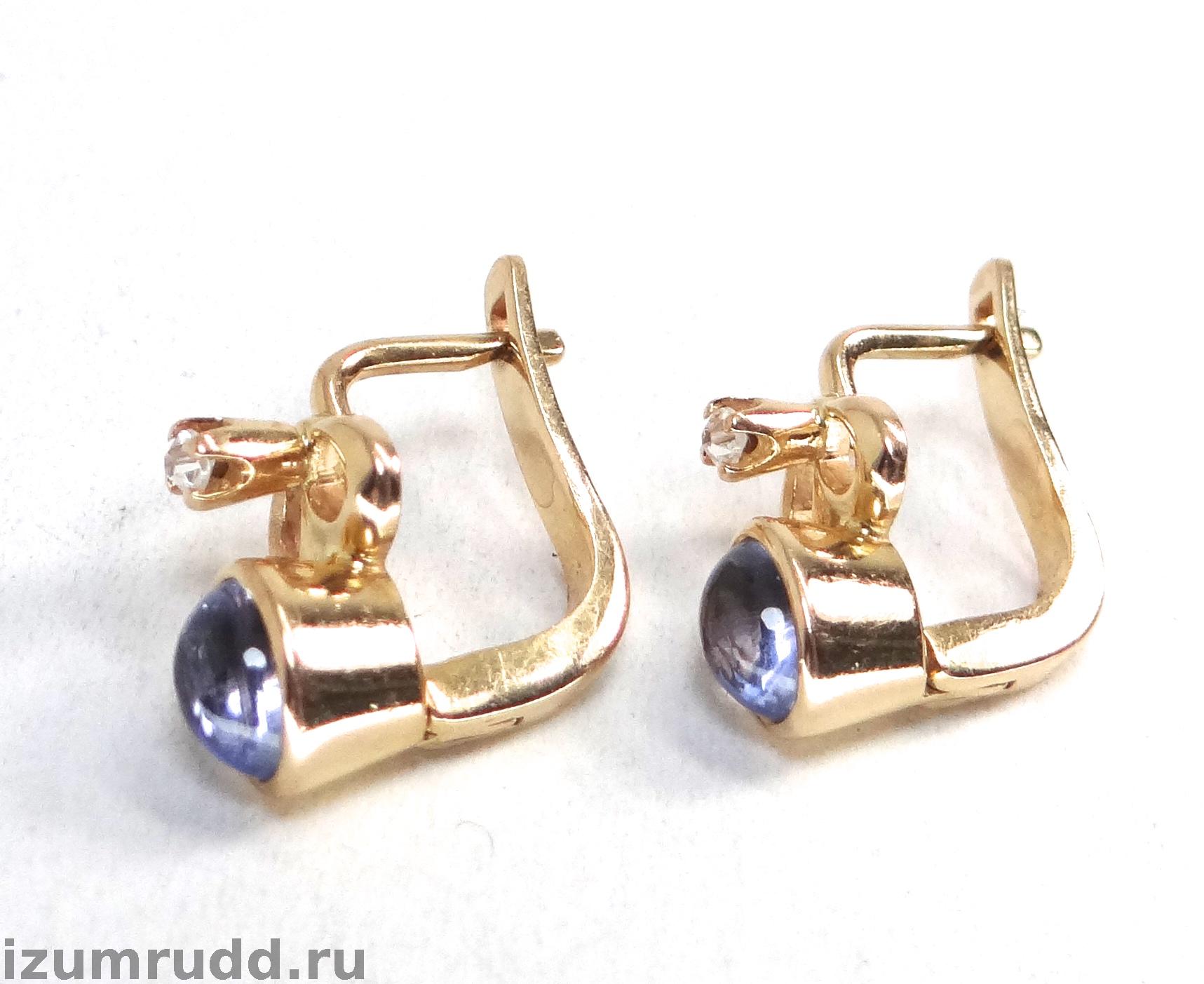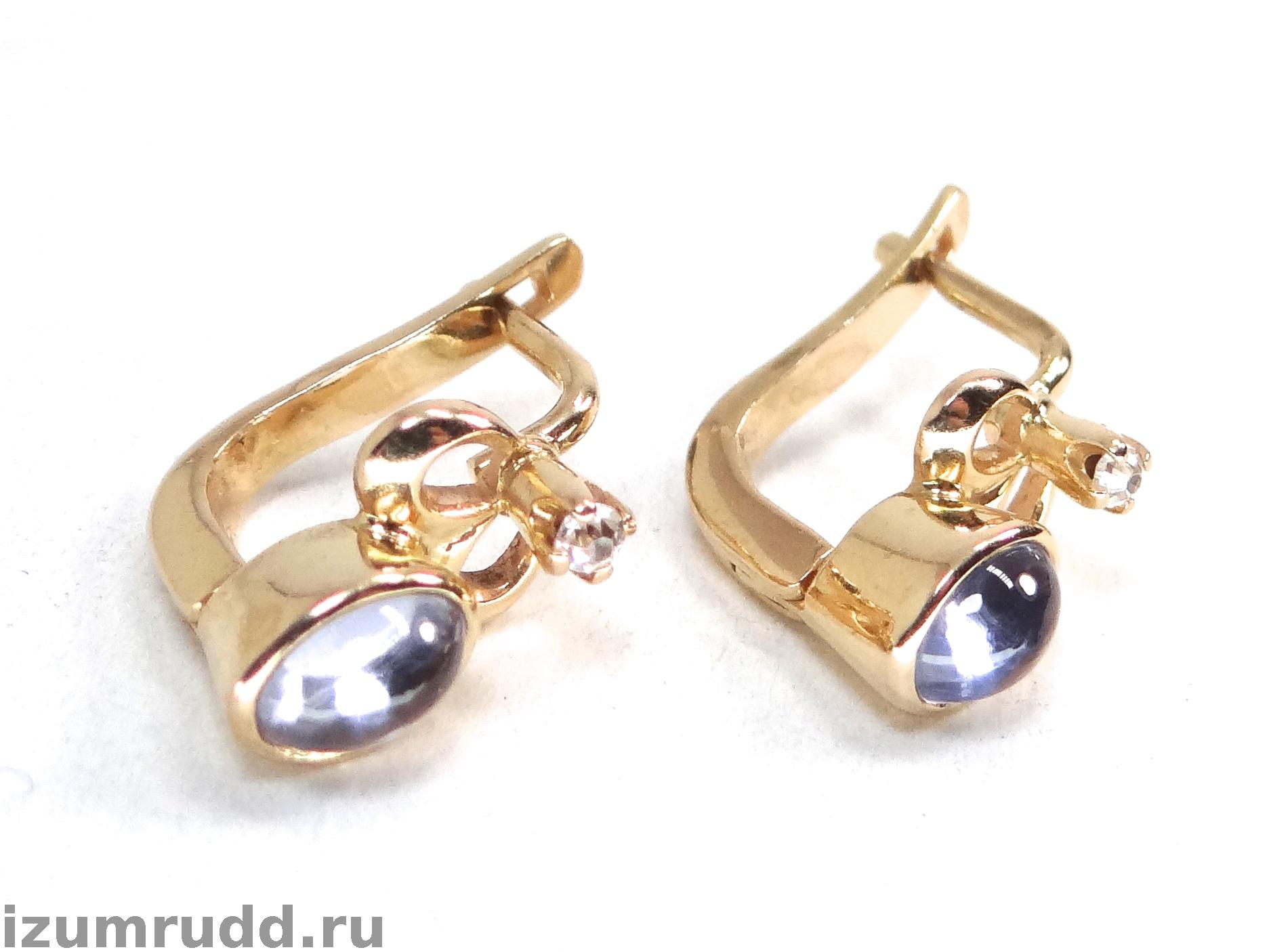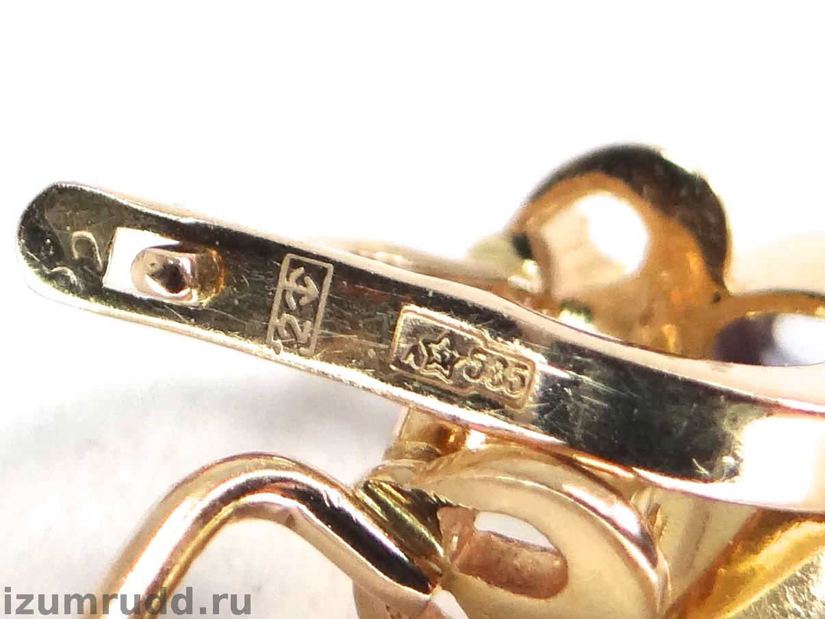 Золотые серьги с синтетическими корундами и горным хрусталем Советского периода выполнены из розового золота 585 пробы.