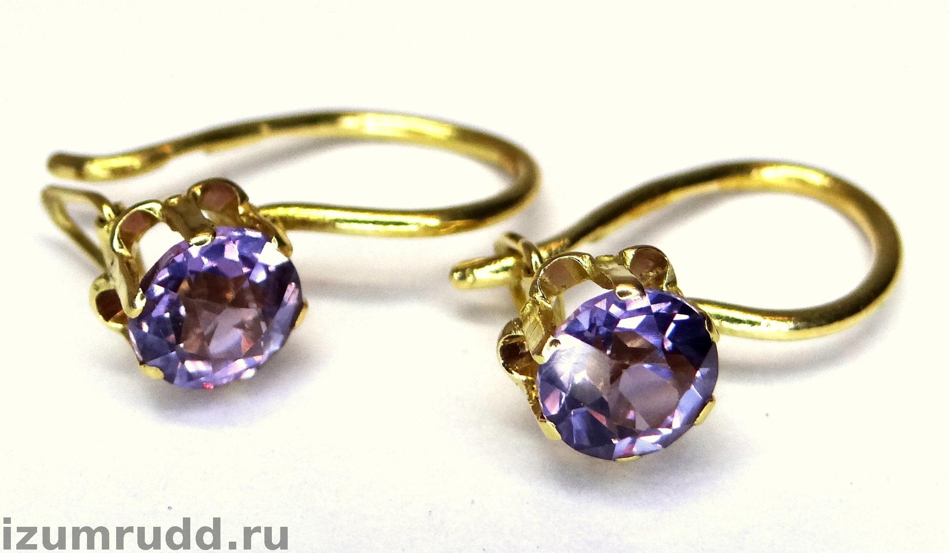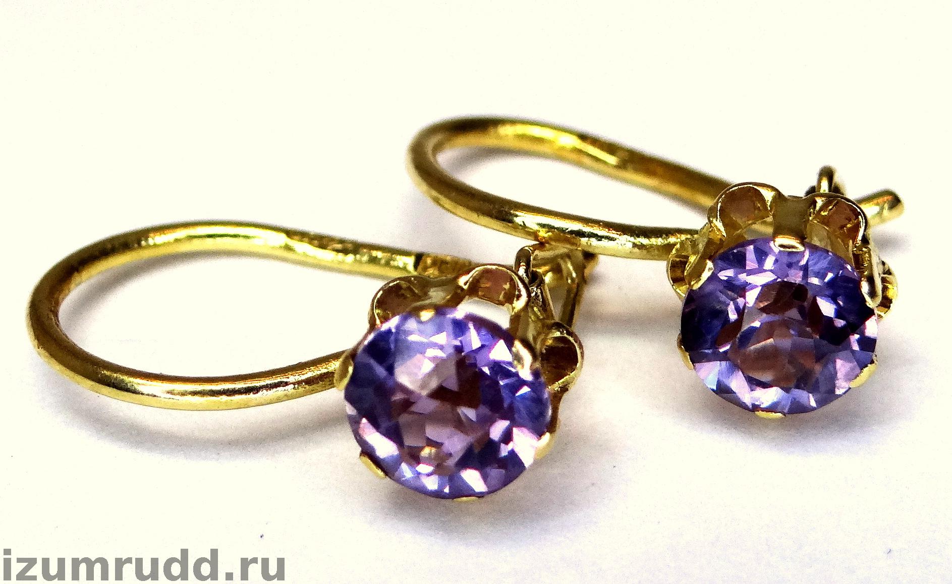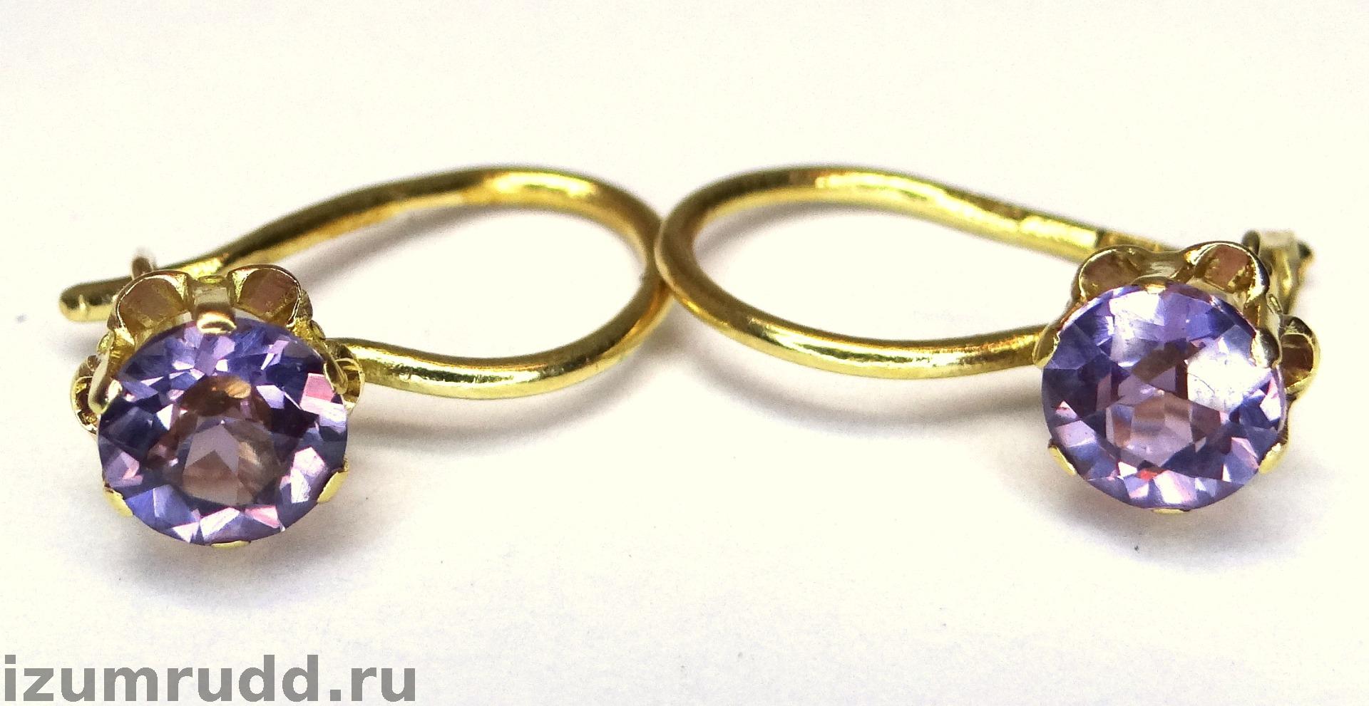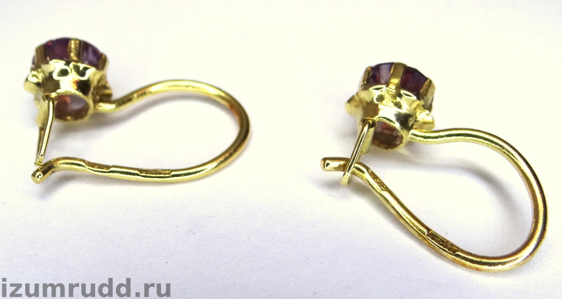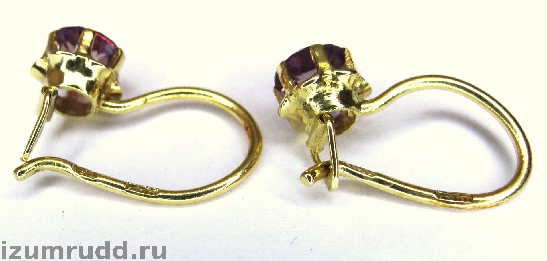 Серьги Советского времени с искусственными александритами выполнены из желтого золота 750 пробы.