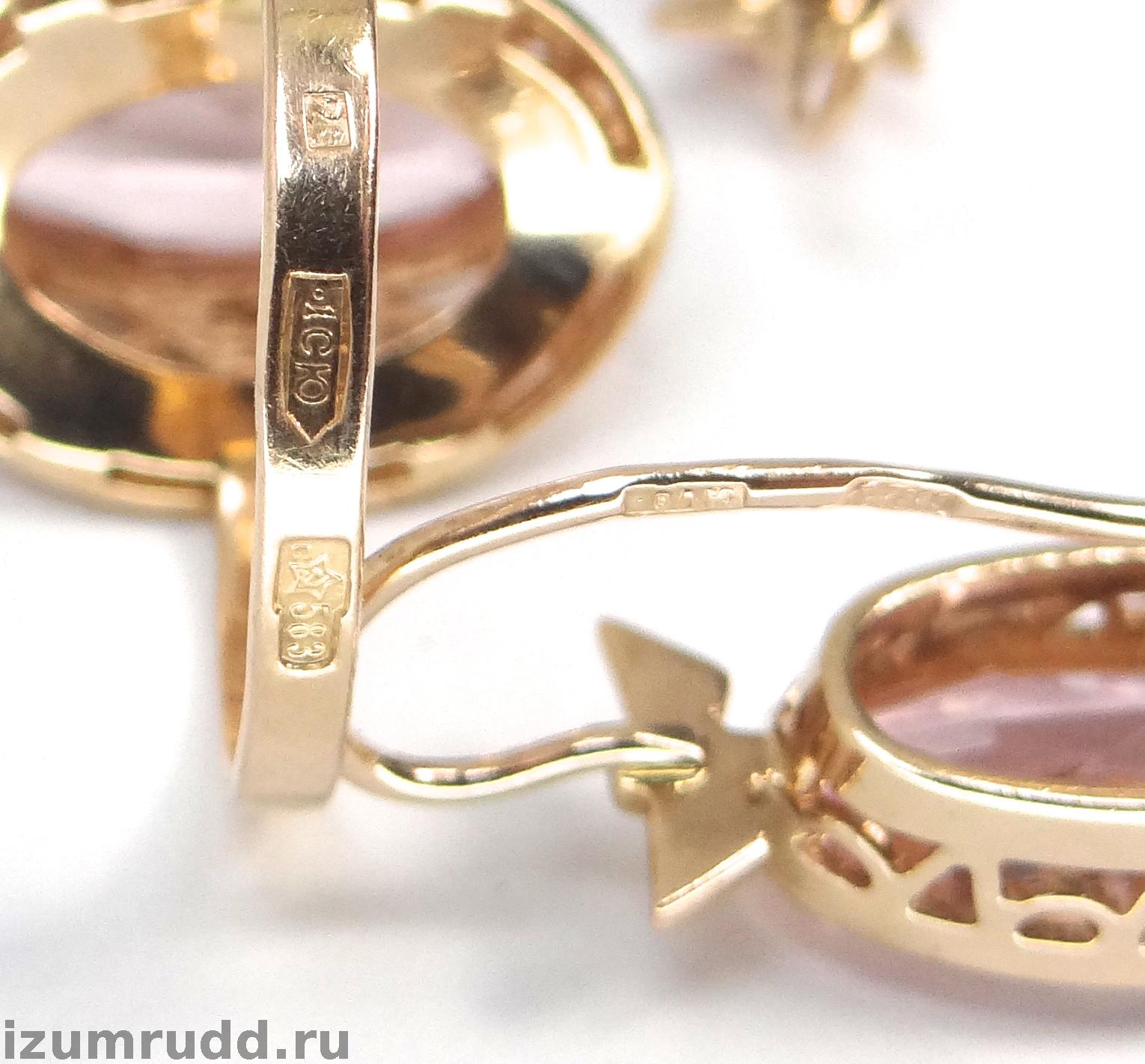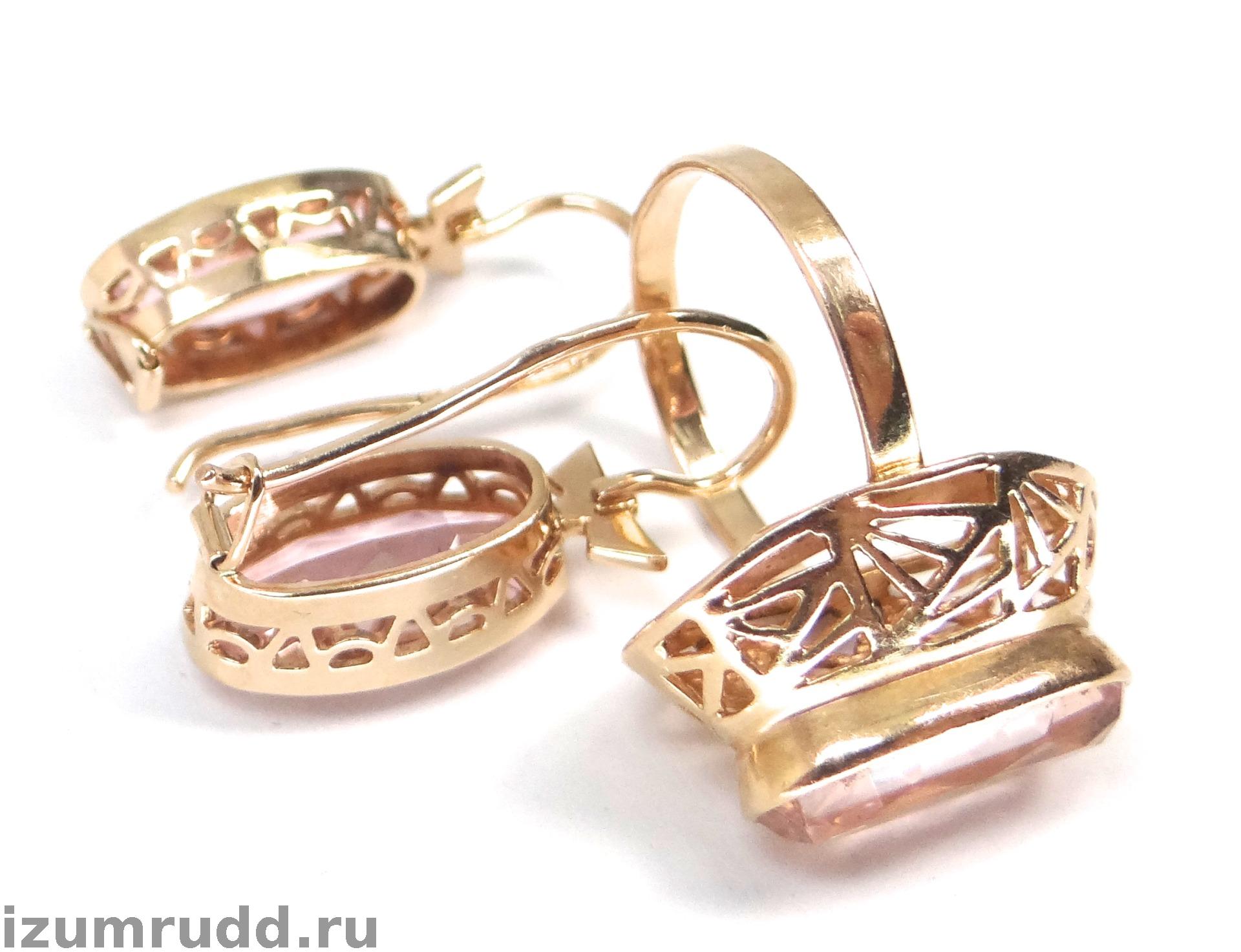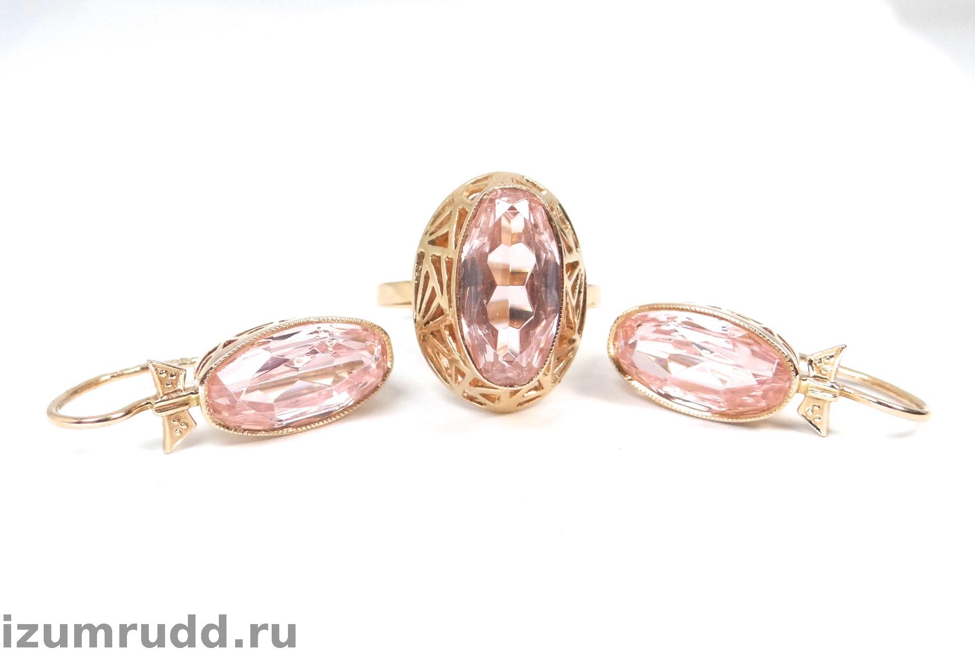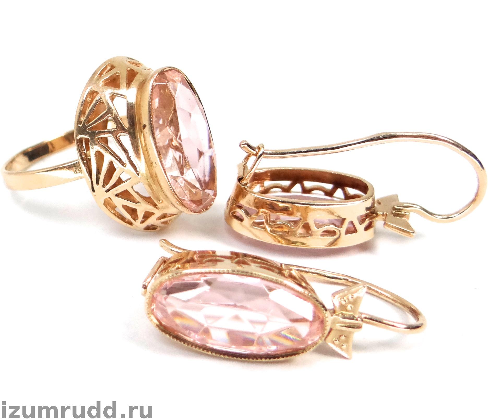 Комплект состоит из пары серег и кольца, выполненных из розового золота 583 пробы