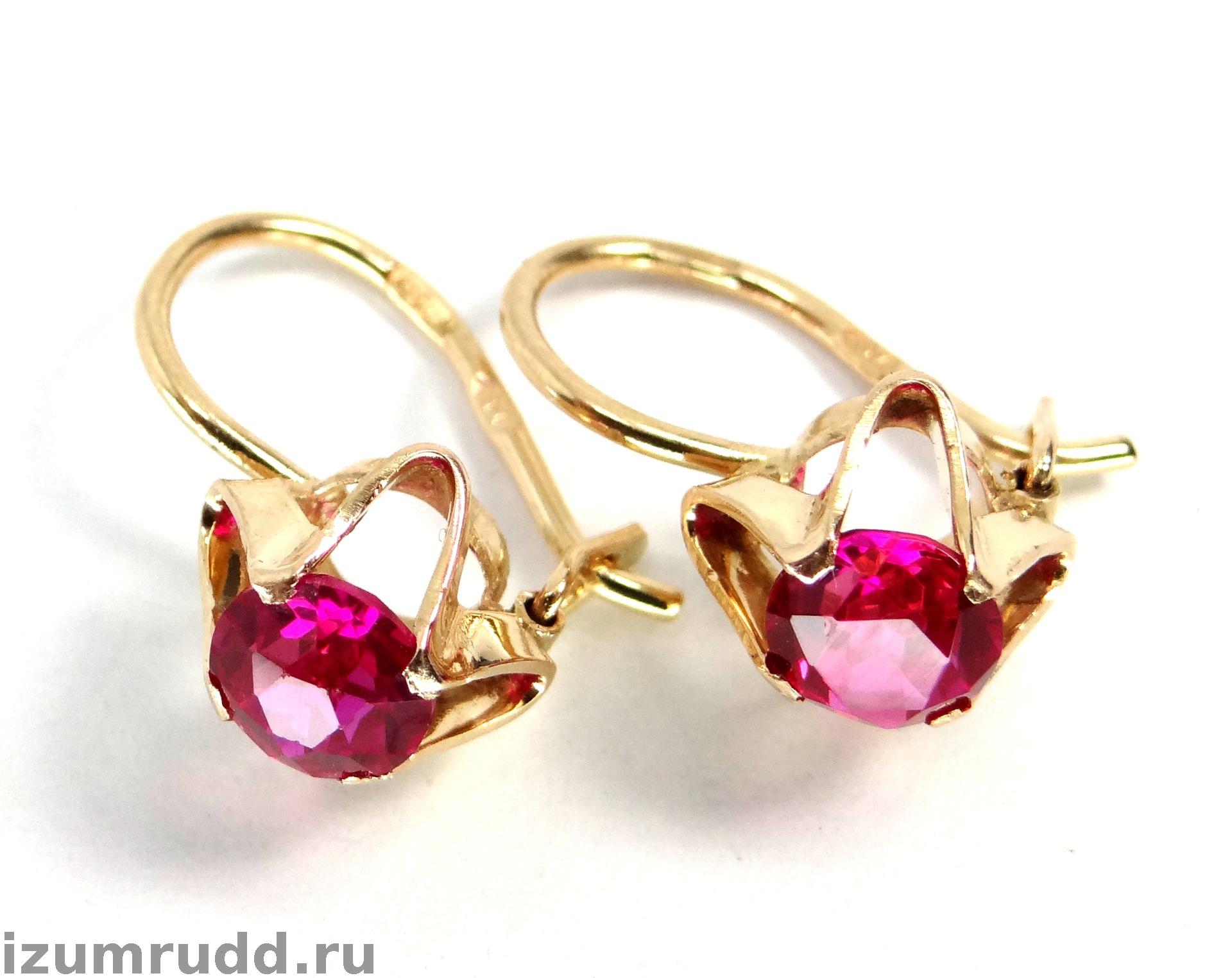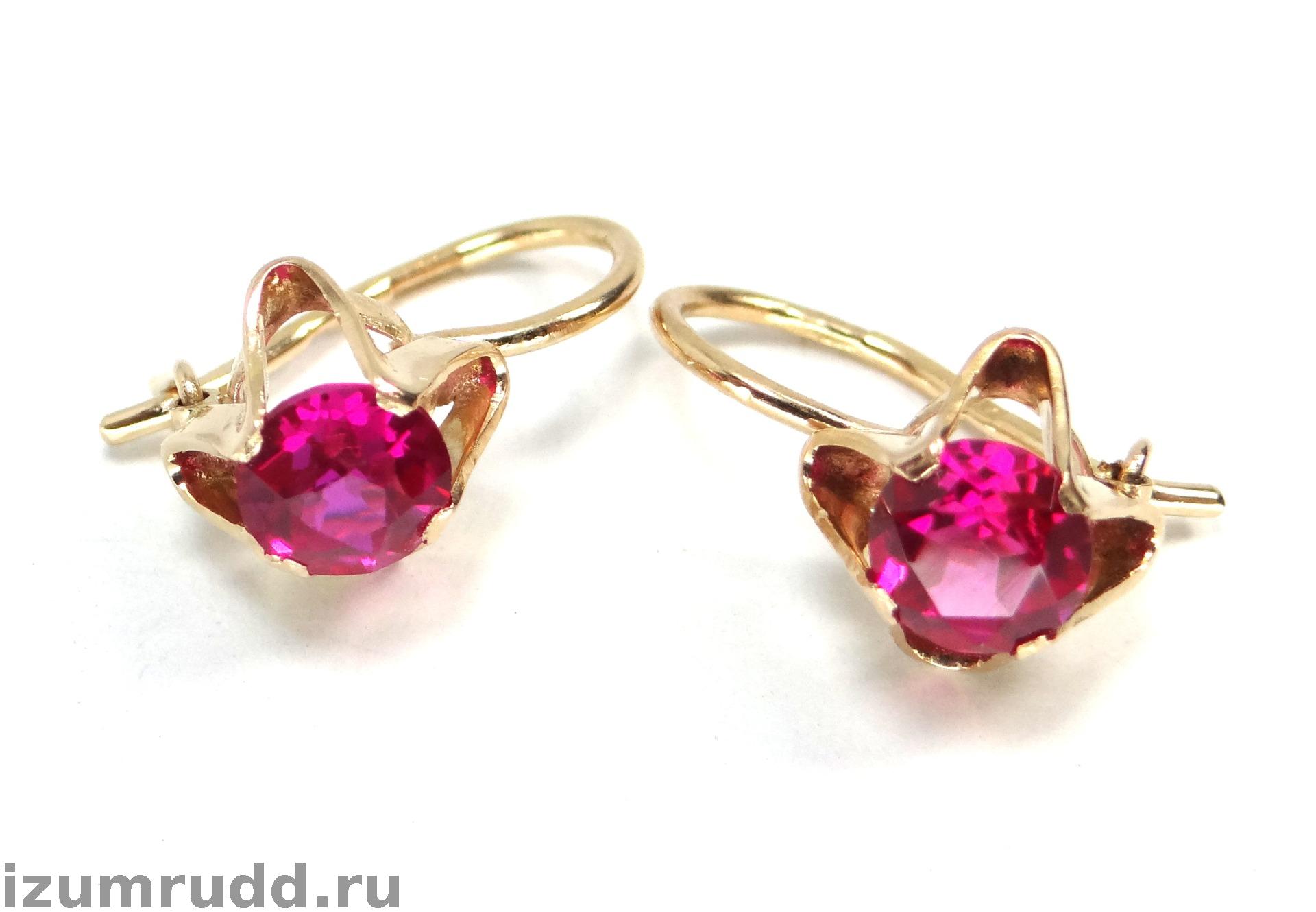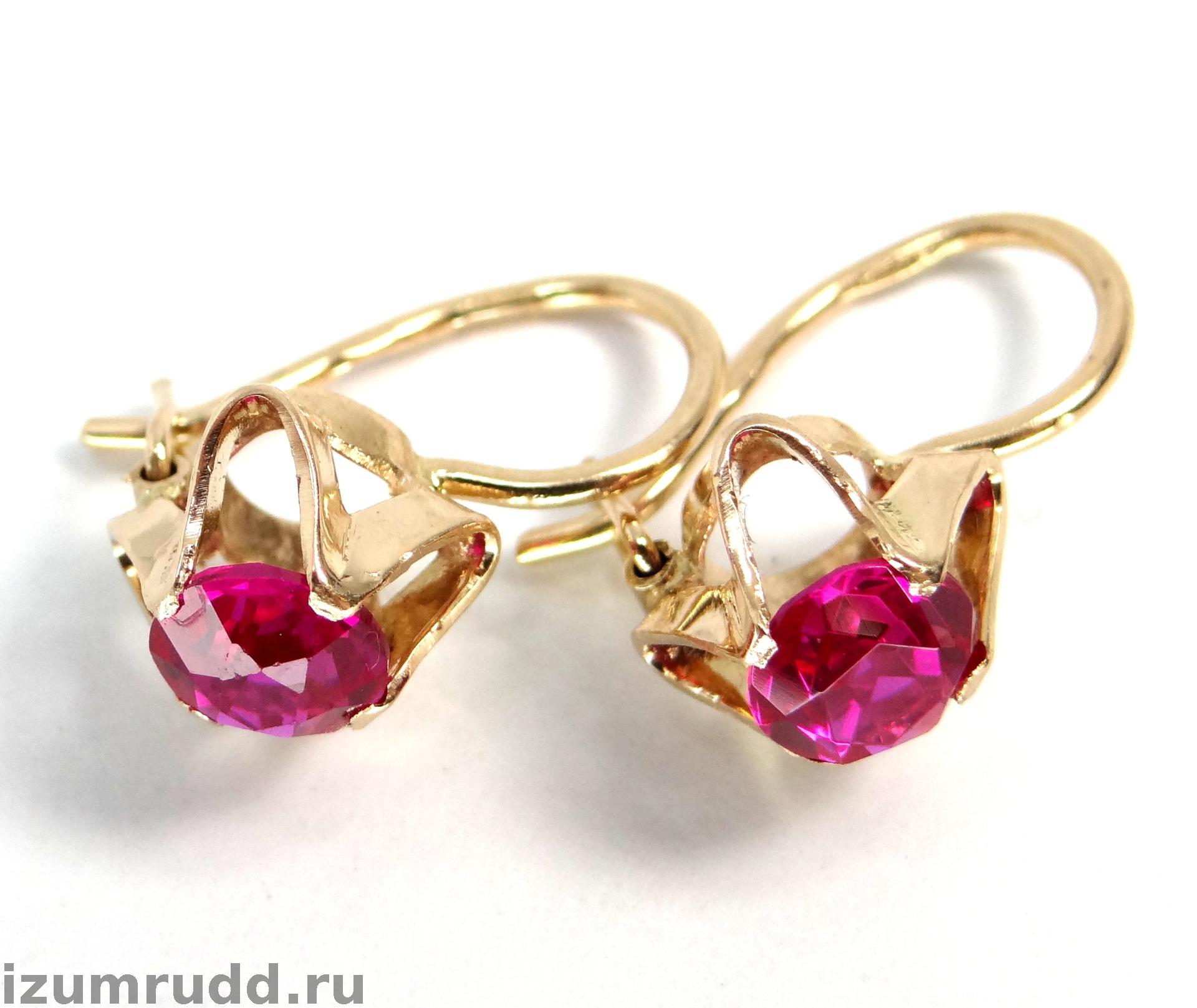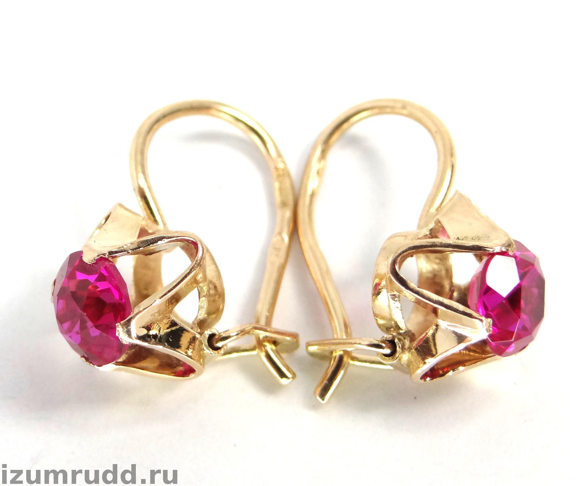 Серьги с искусственными рубинами советского периода выполнены из розового золота 583 пробы