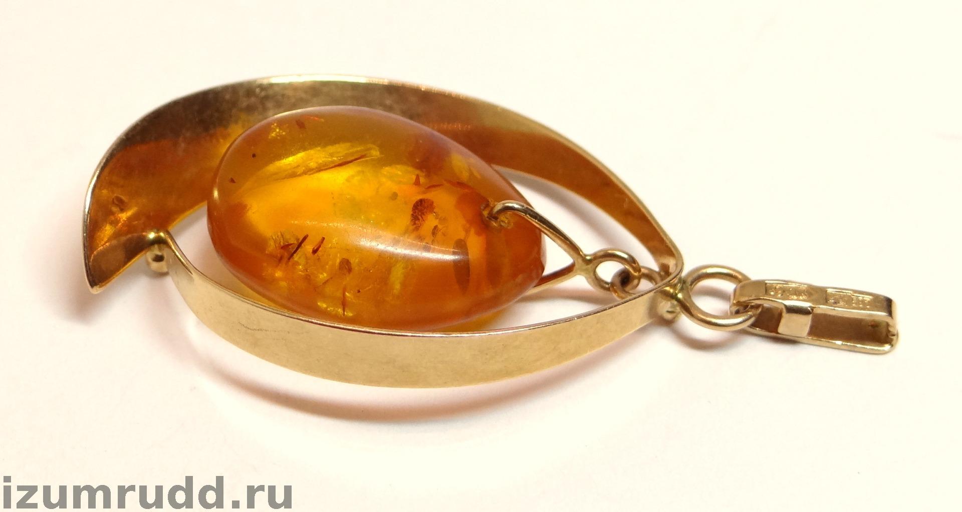 Советский золотой кулон 583 пробы с янтарем, СССР.