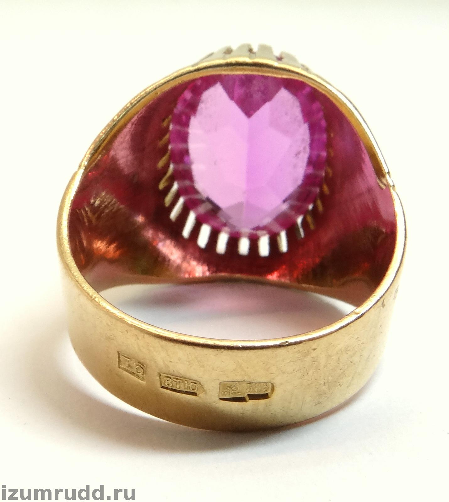 Кольцо с синтетическим корундом выполнено из розового золота 583 пробы.
