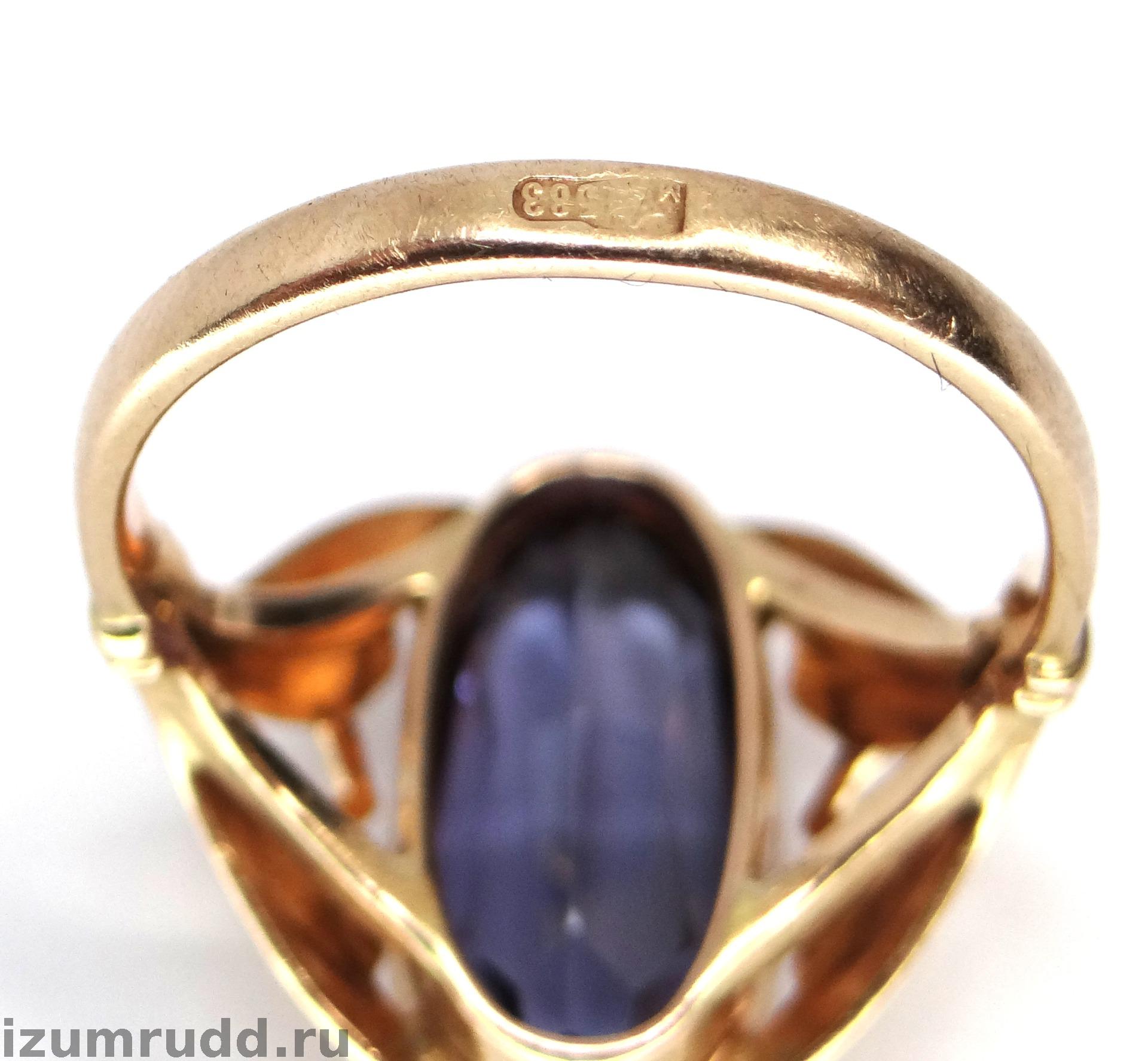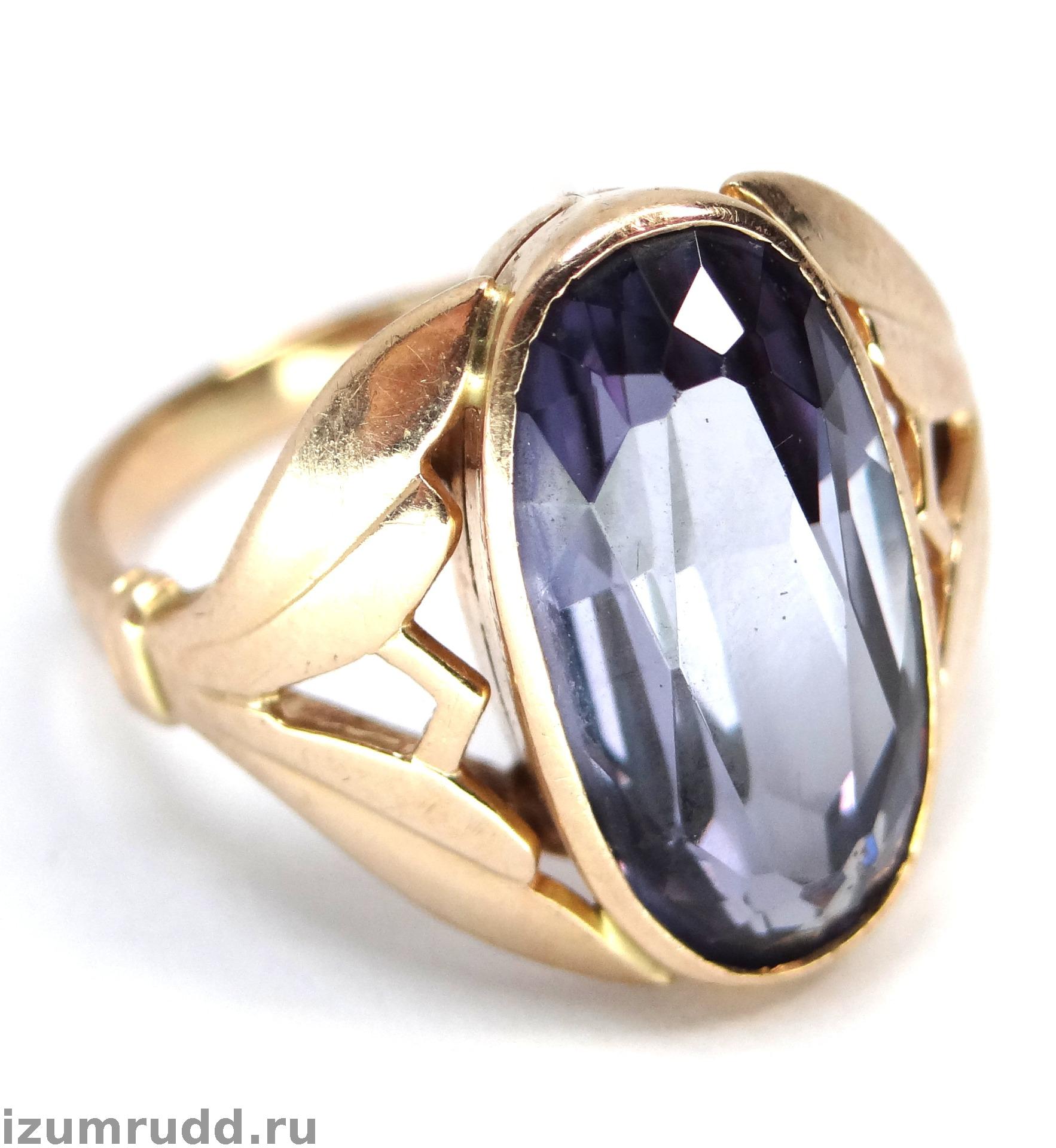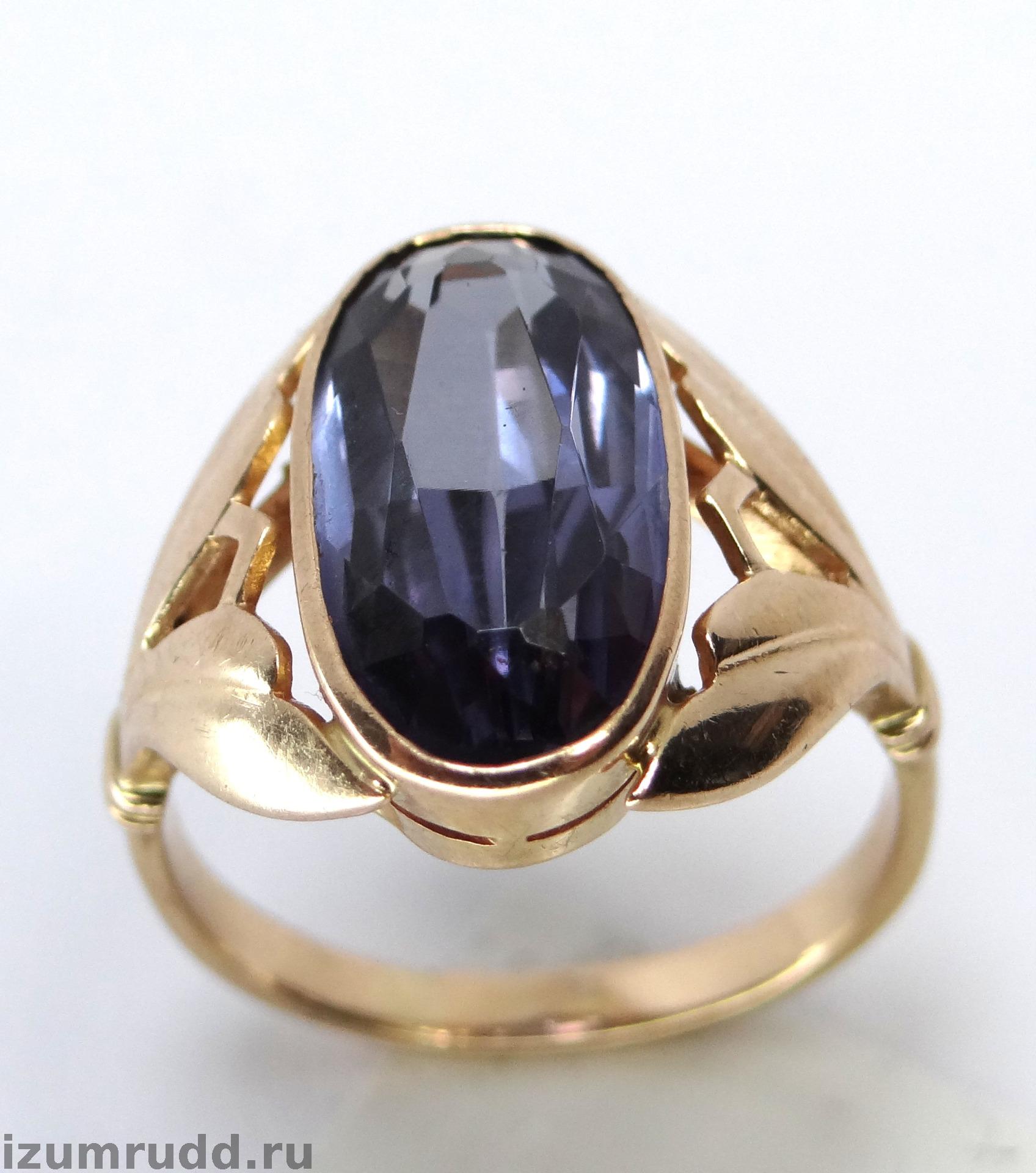 Кольцо с искусственным александритом выполнено из розового золота 583 пробы