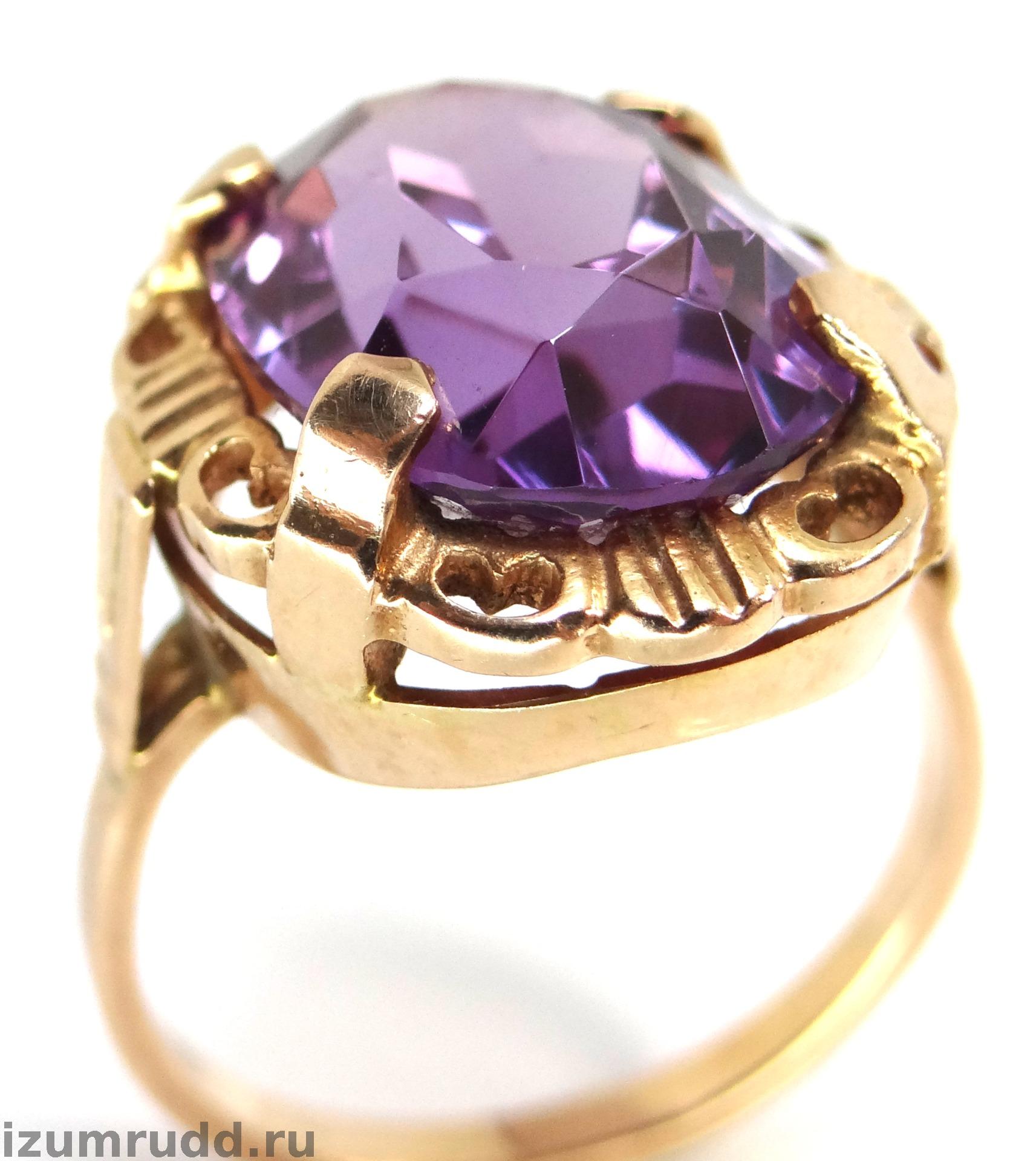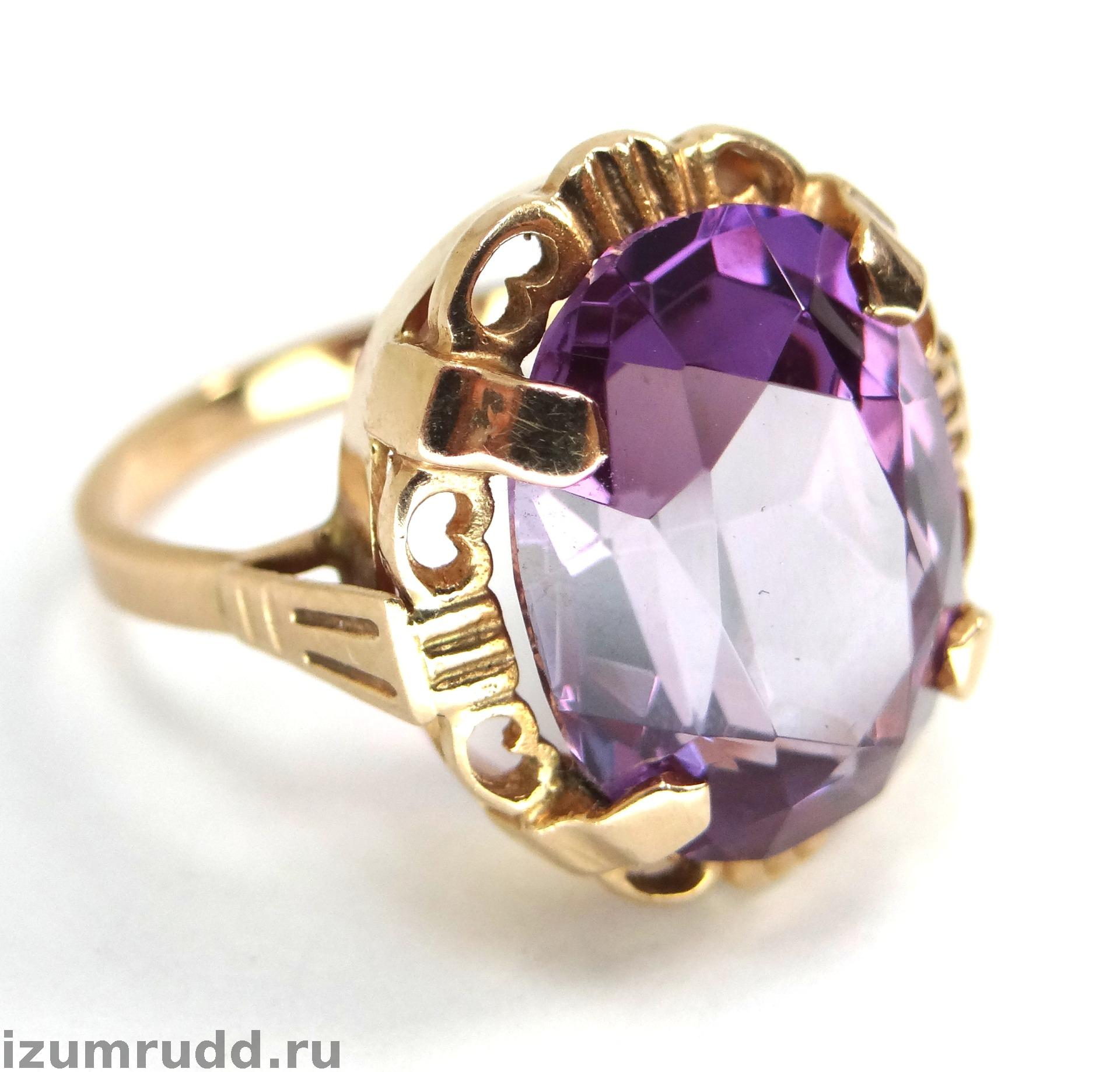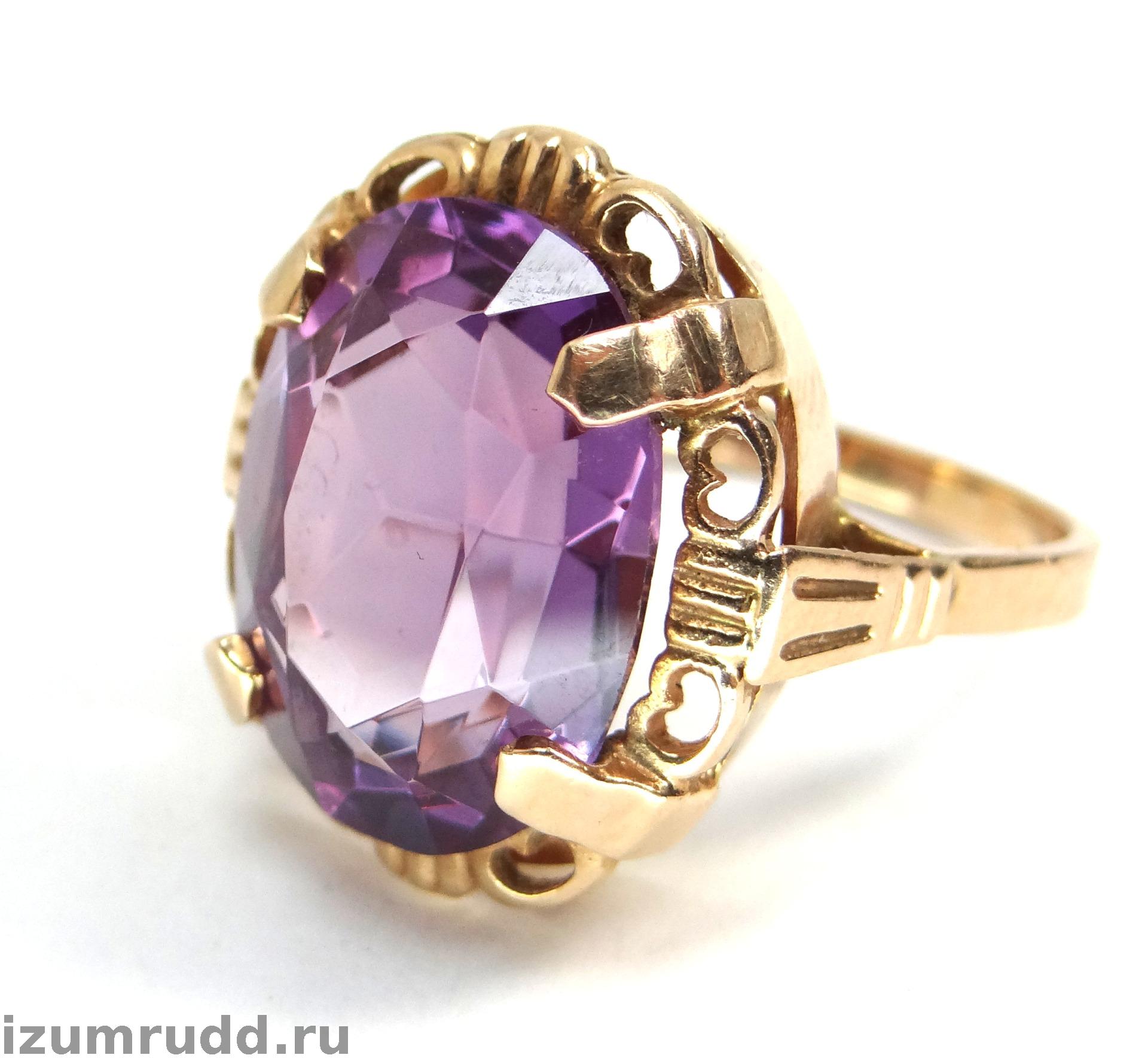 Кольцо Советского периода с синтетическим корундом выполнено из розового золота 583 пробы