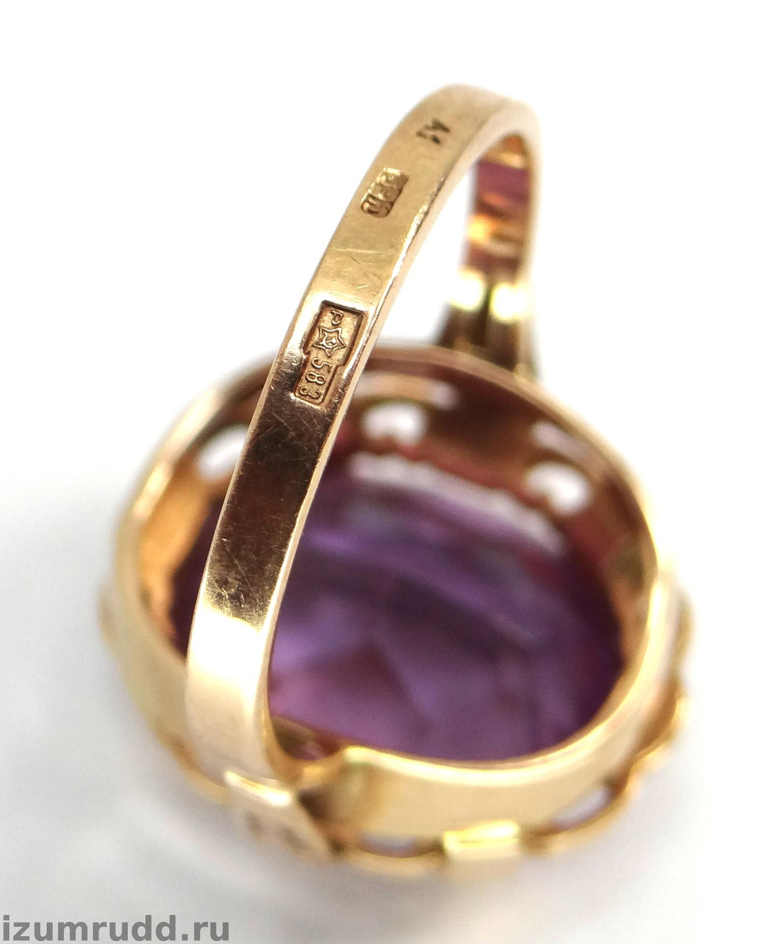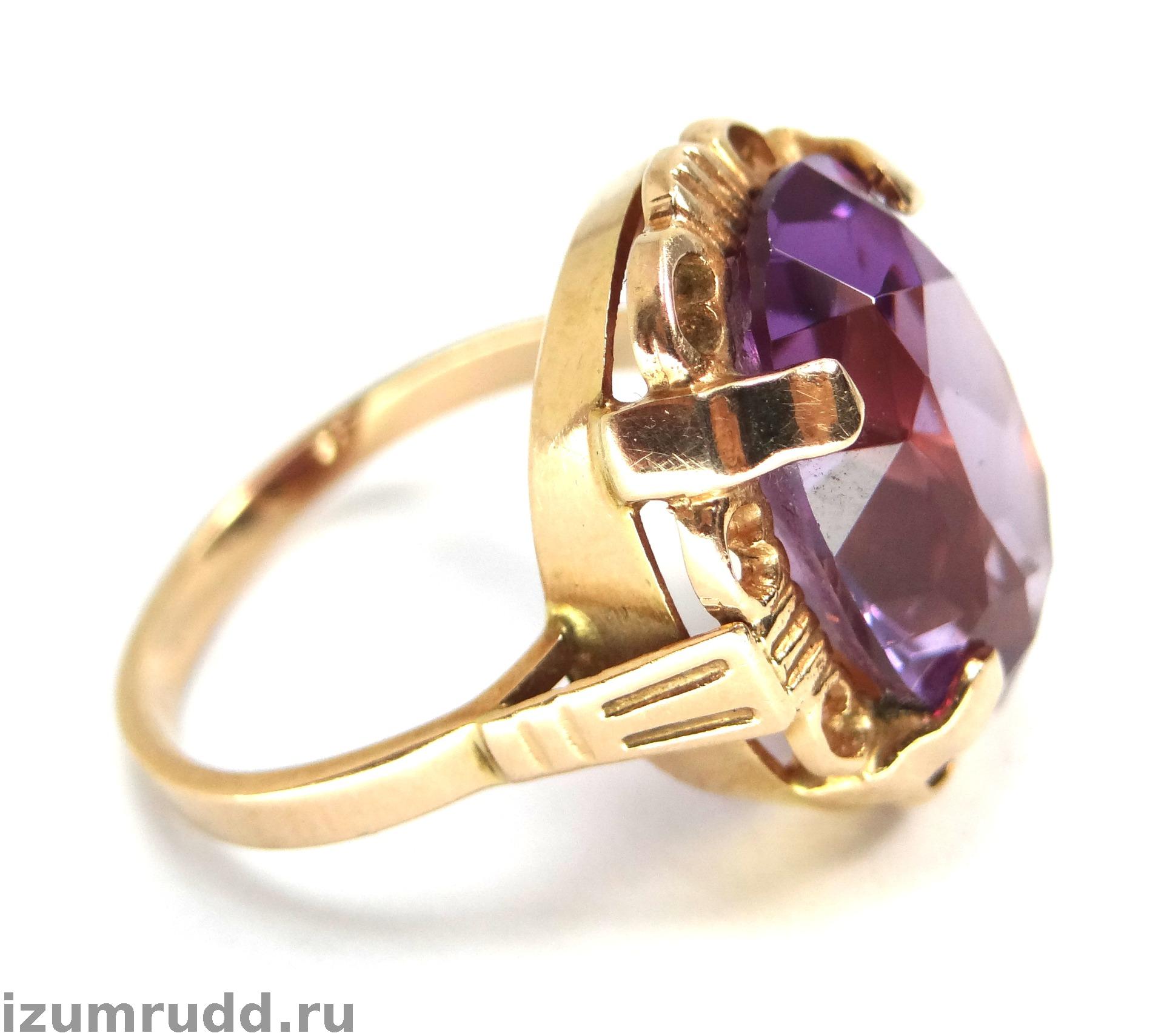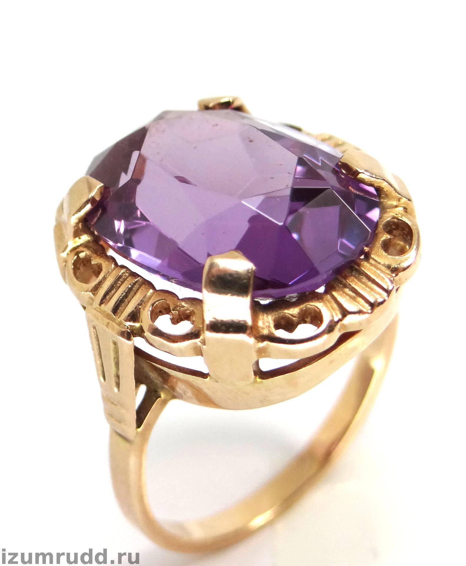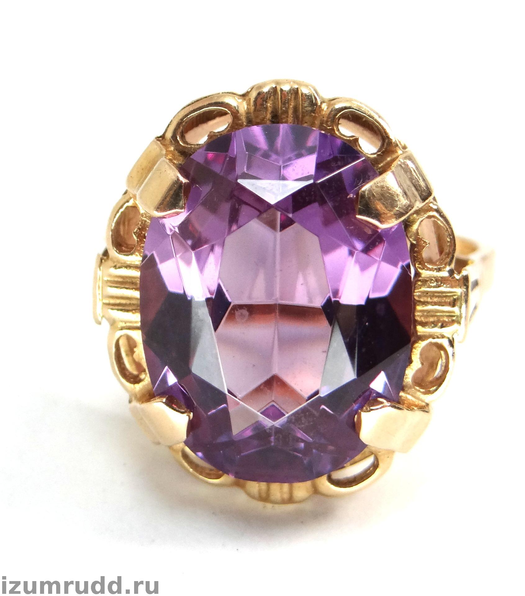Кольцо Советского периода с синтетическим корундом выполнено из розового золота 583 пробы