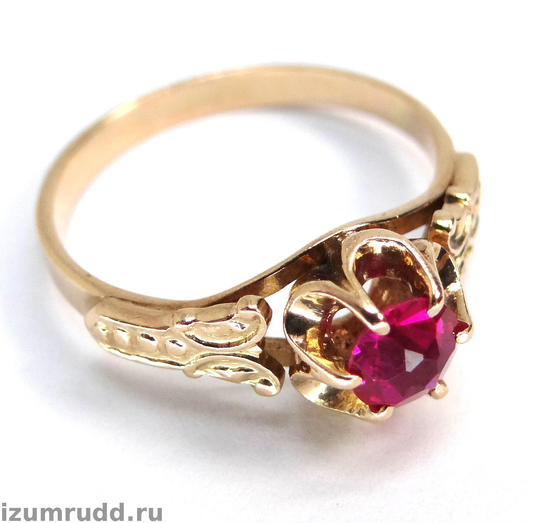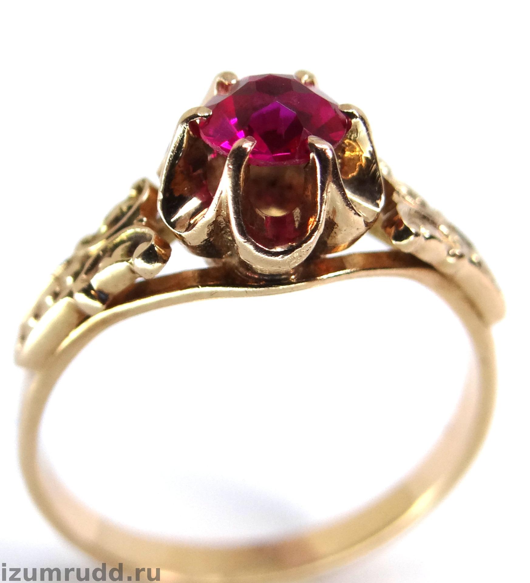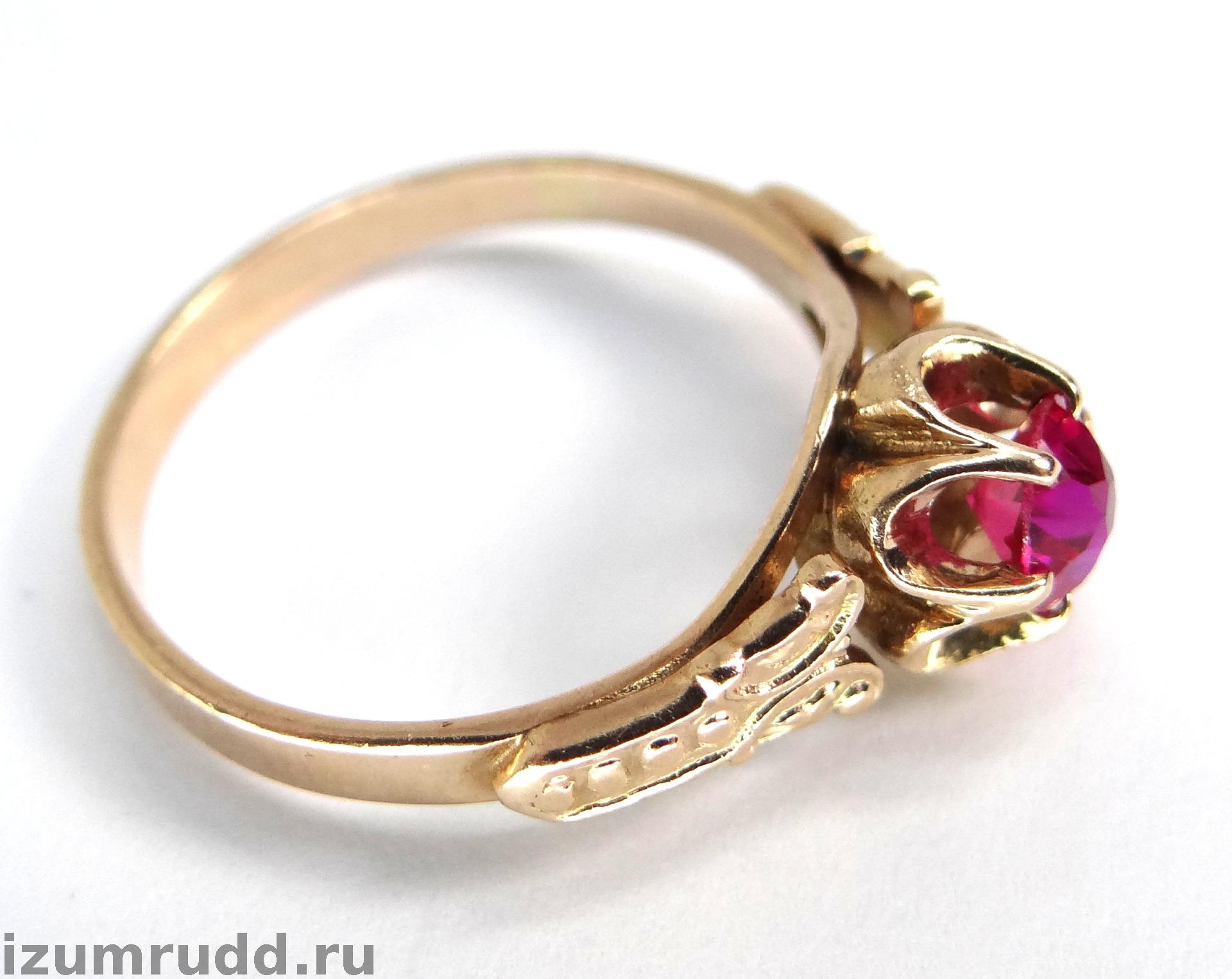 Кольцо с искусственным рубином выполнено из розового золота 583 пробы.