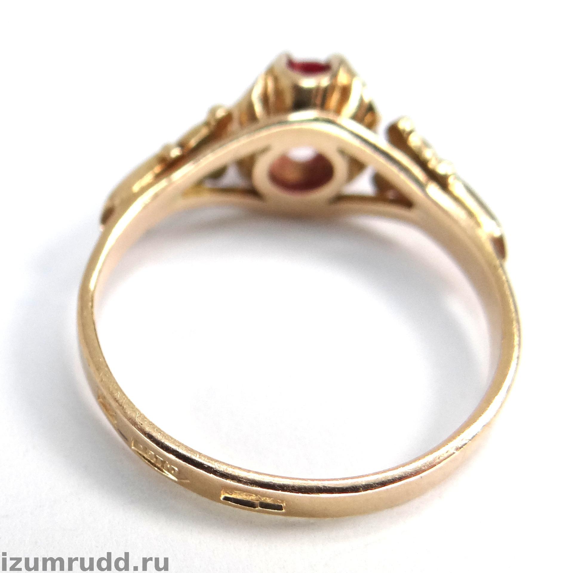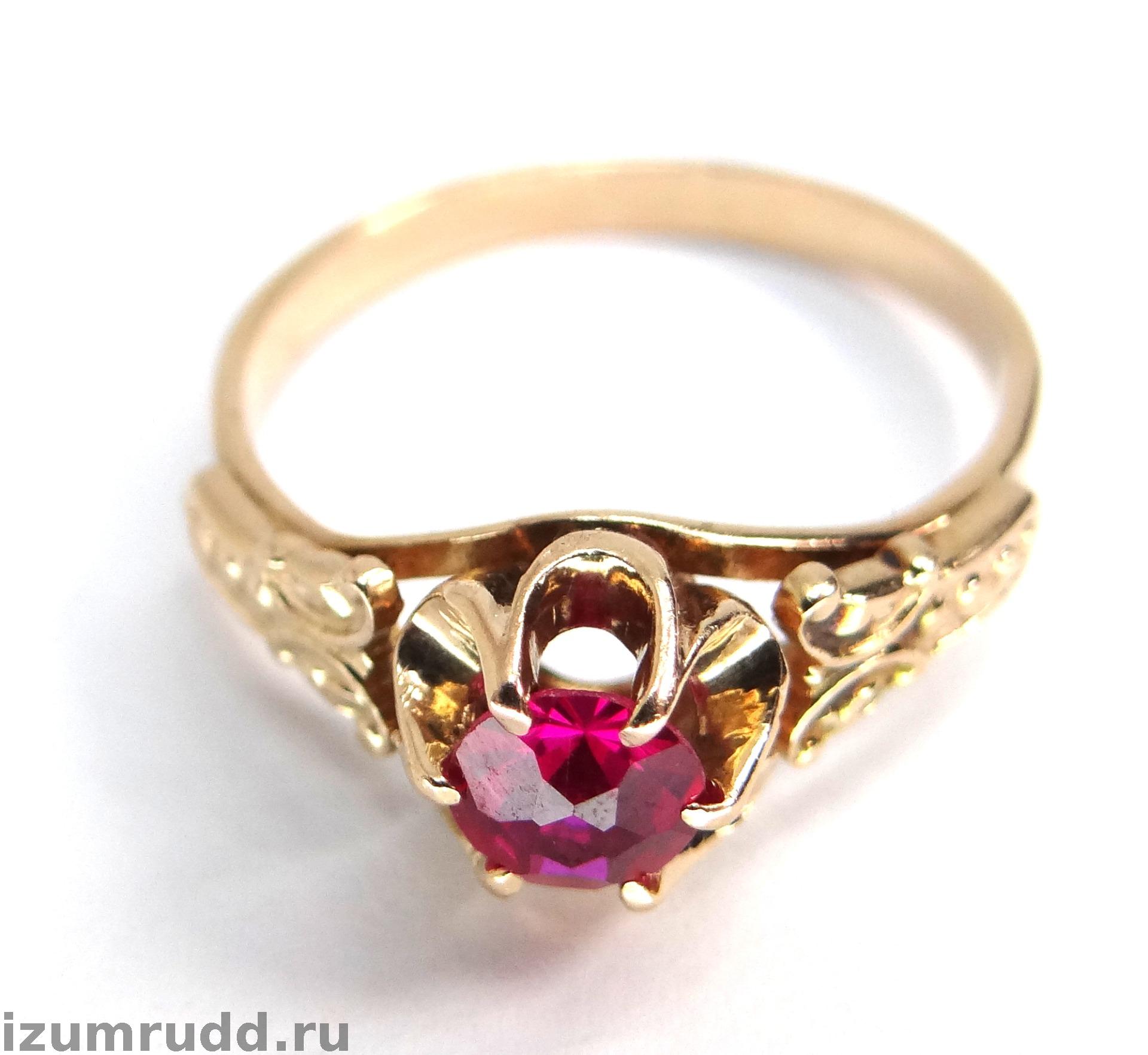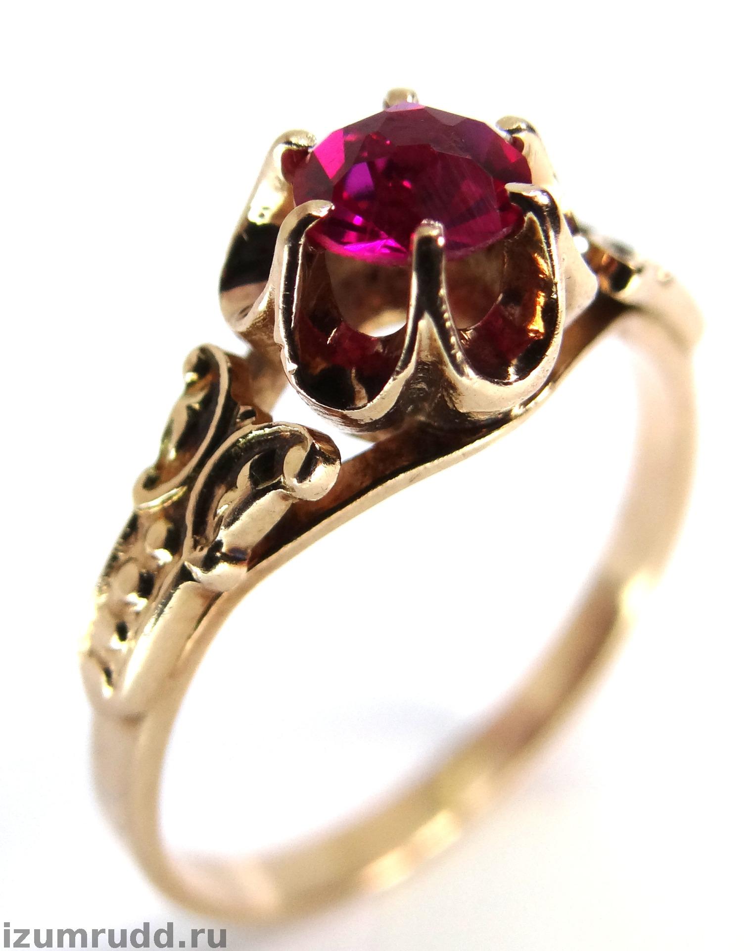 Кольцо с искусственным рубином выполнено из розового золота 583 пробы.
