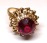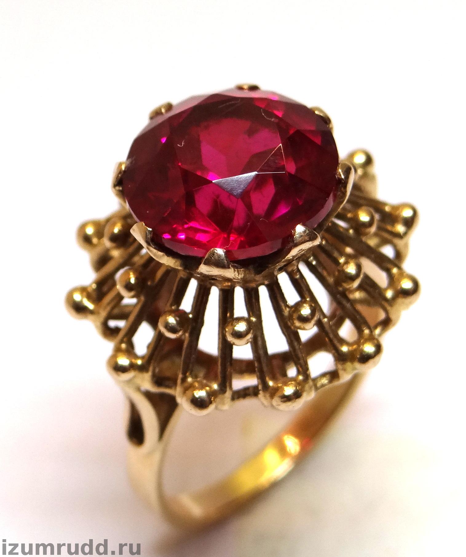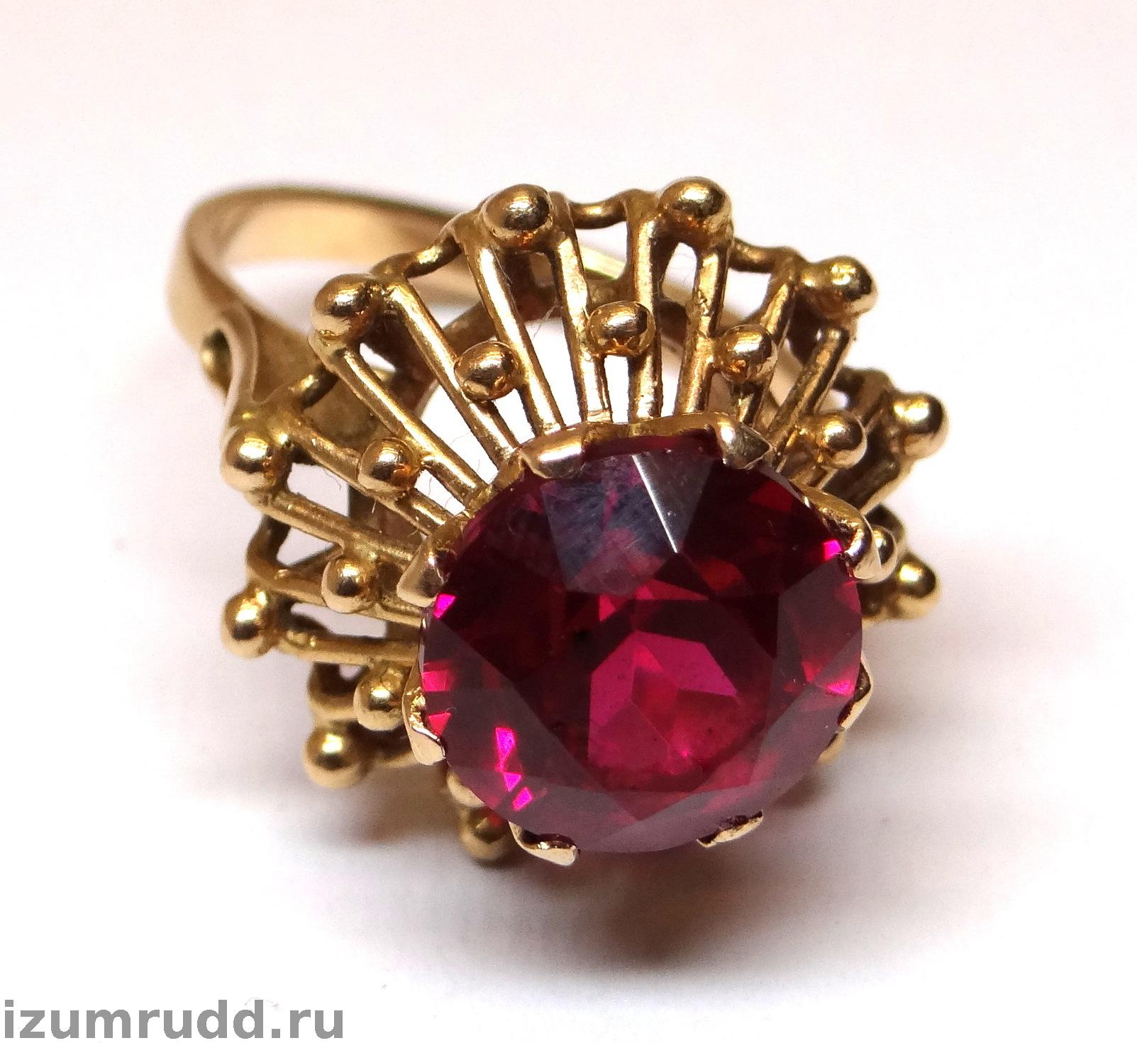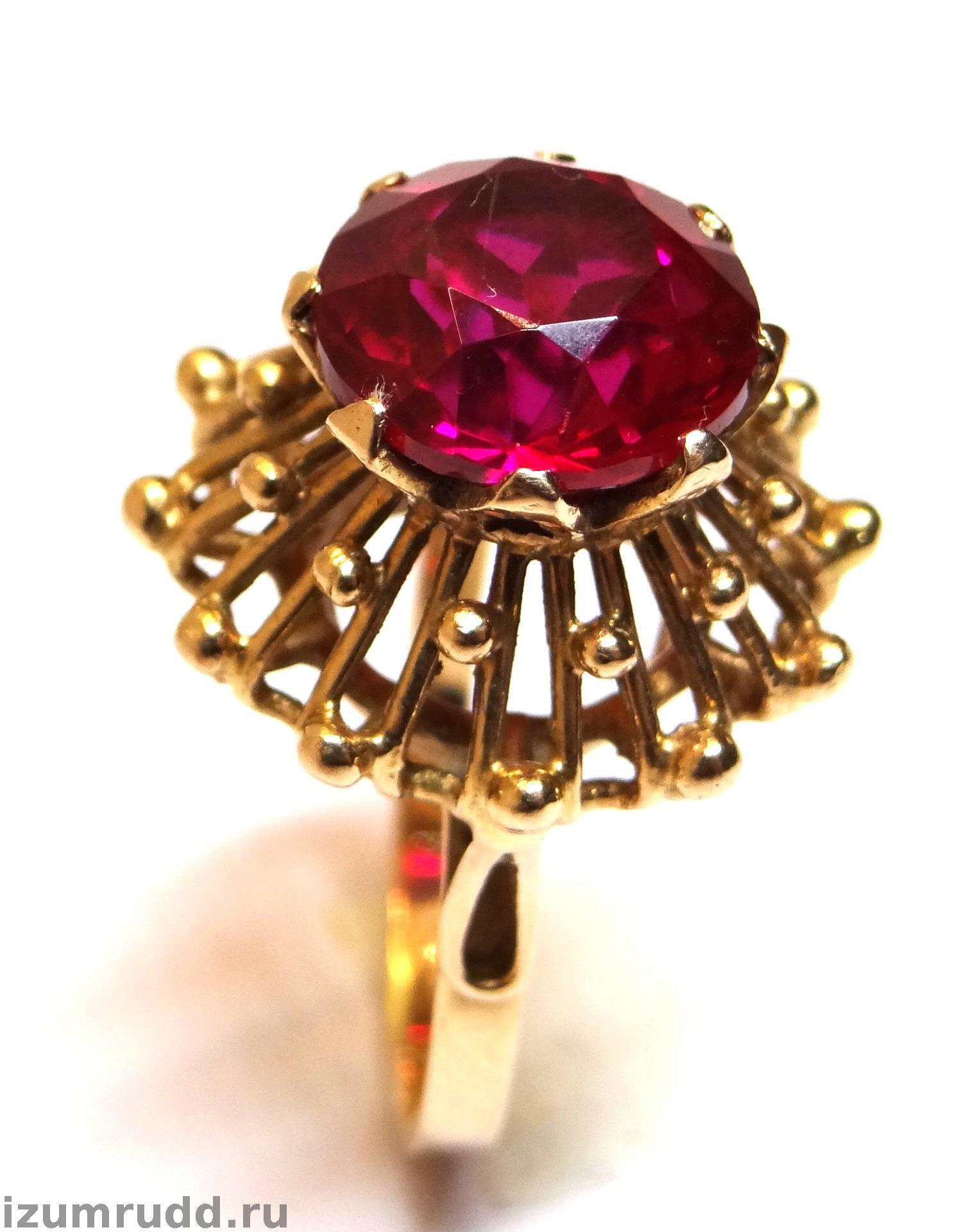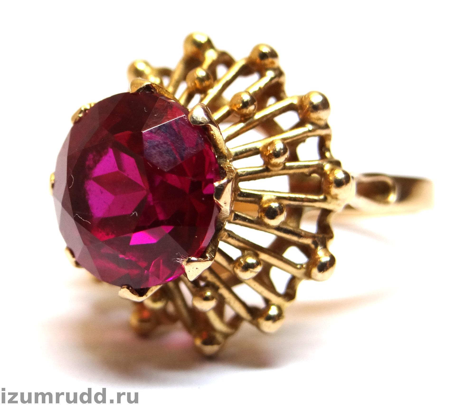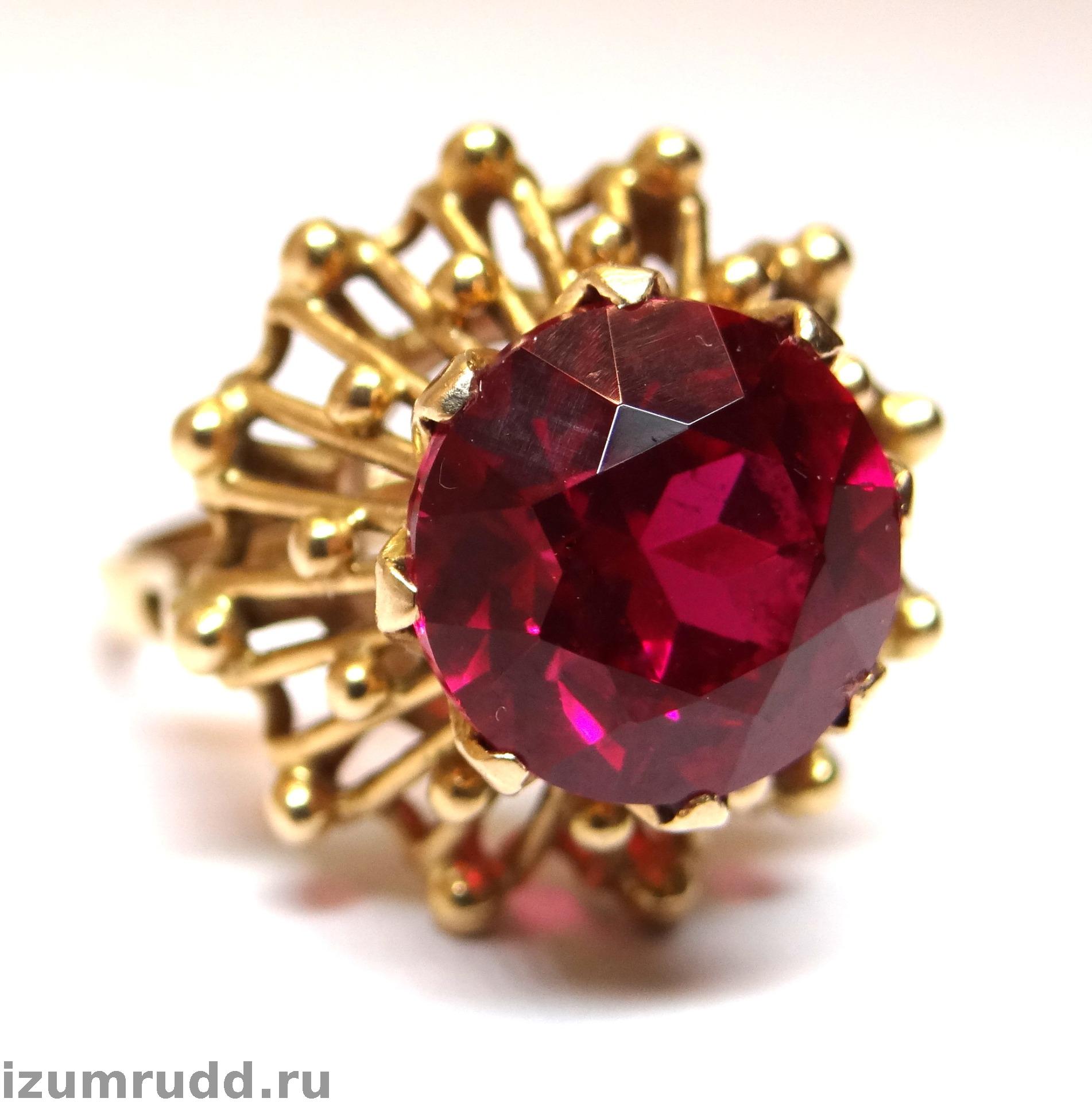 Кольцо с искусственным рубином выполнено из розового золота 583 пробы.