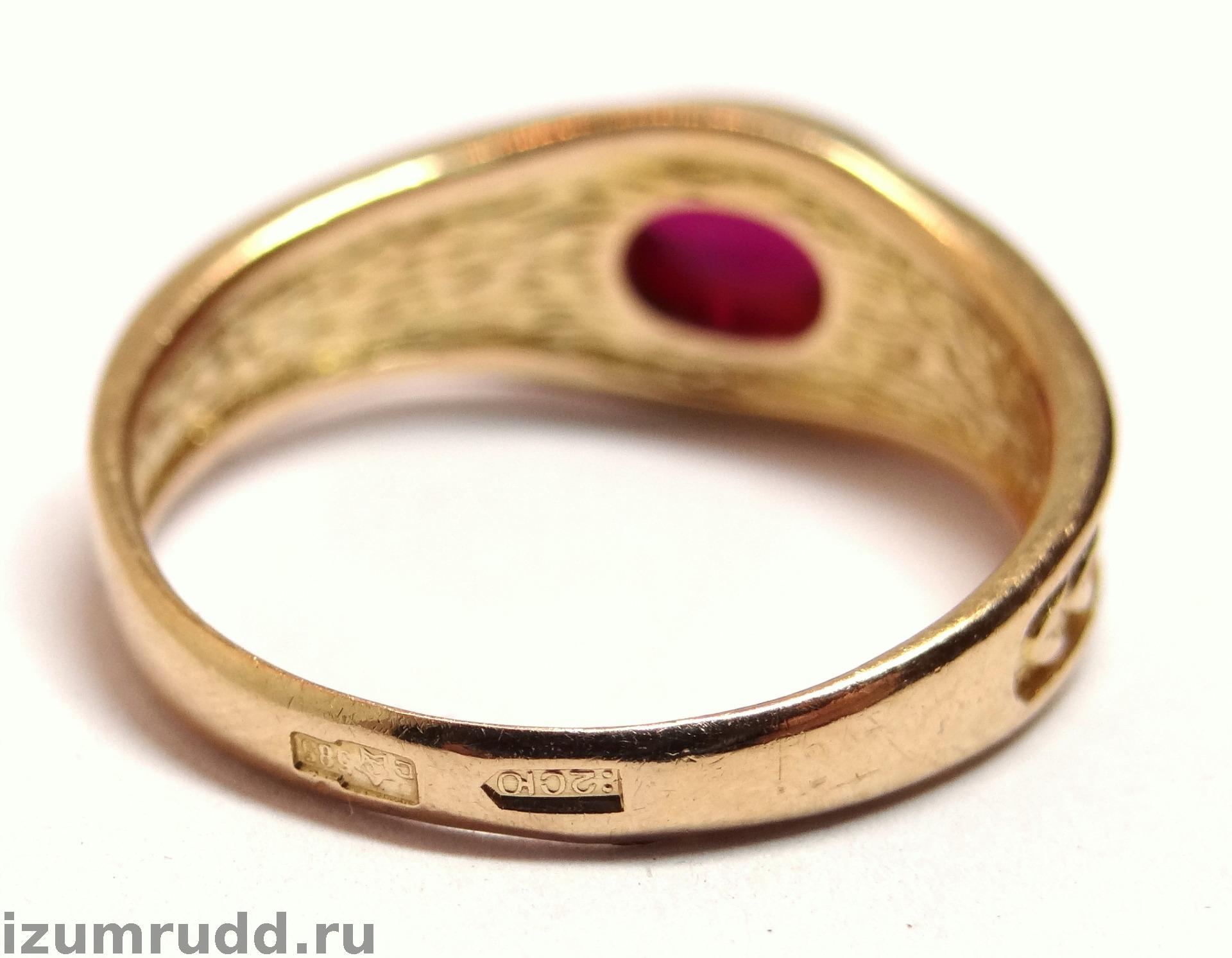 Кольцо советского периода с синтетическим корундом выполнено из розового золота 585 пробы.