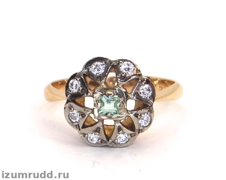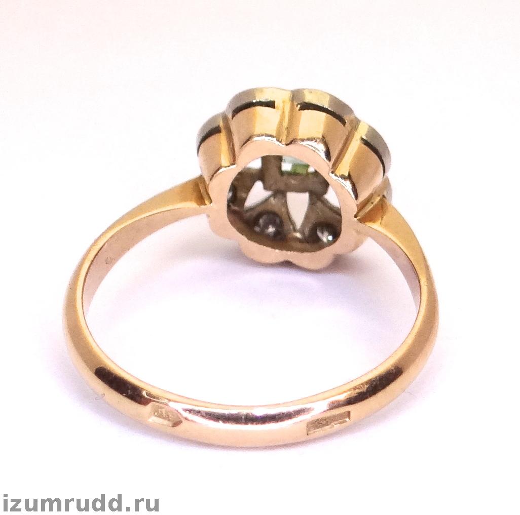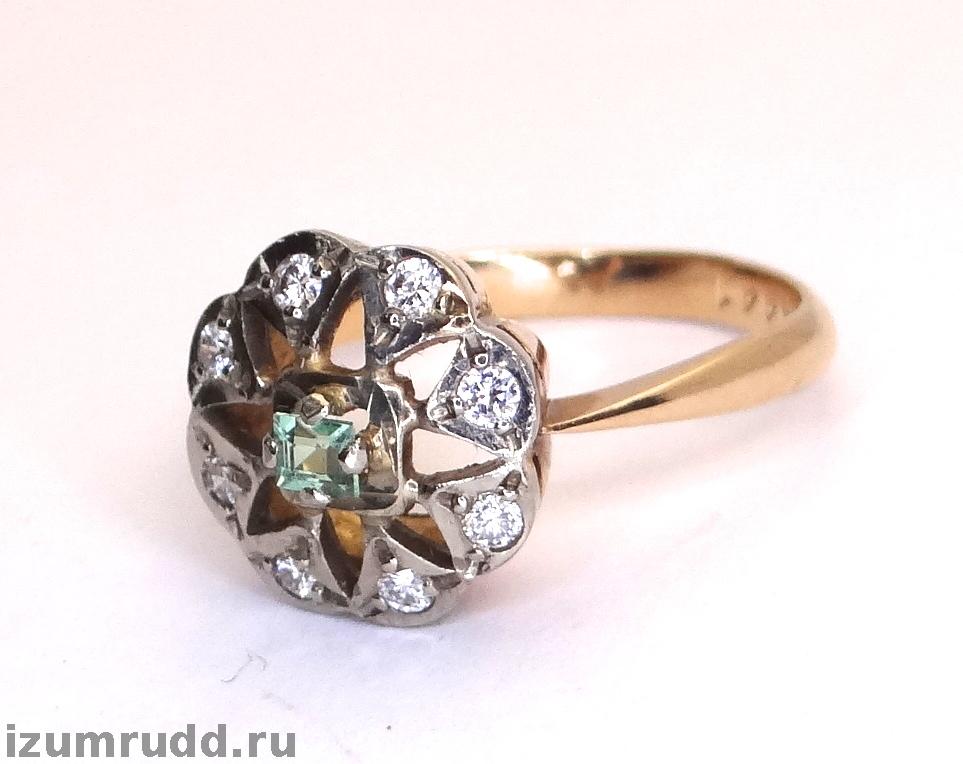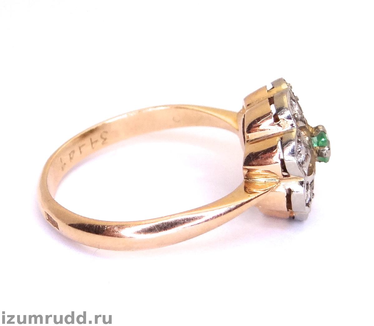 Советское золотое кольцо с изумрудом и бриллиантами 583 пробы