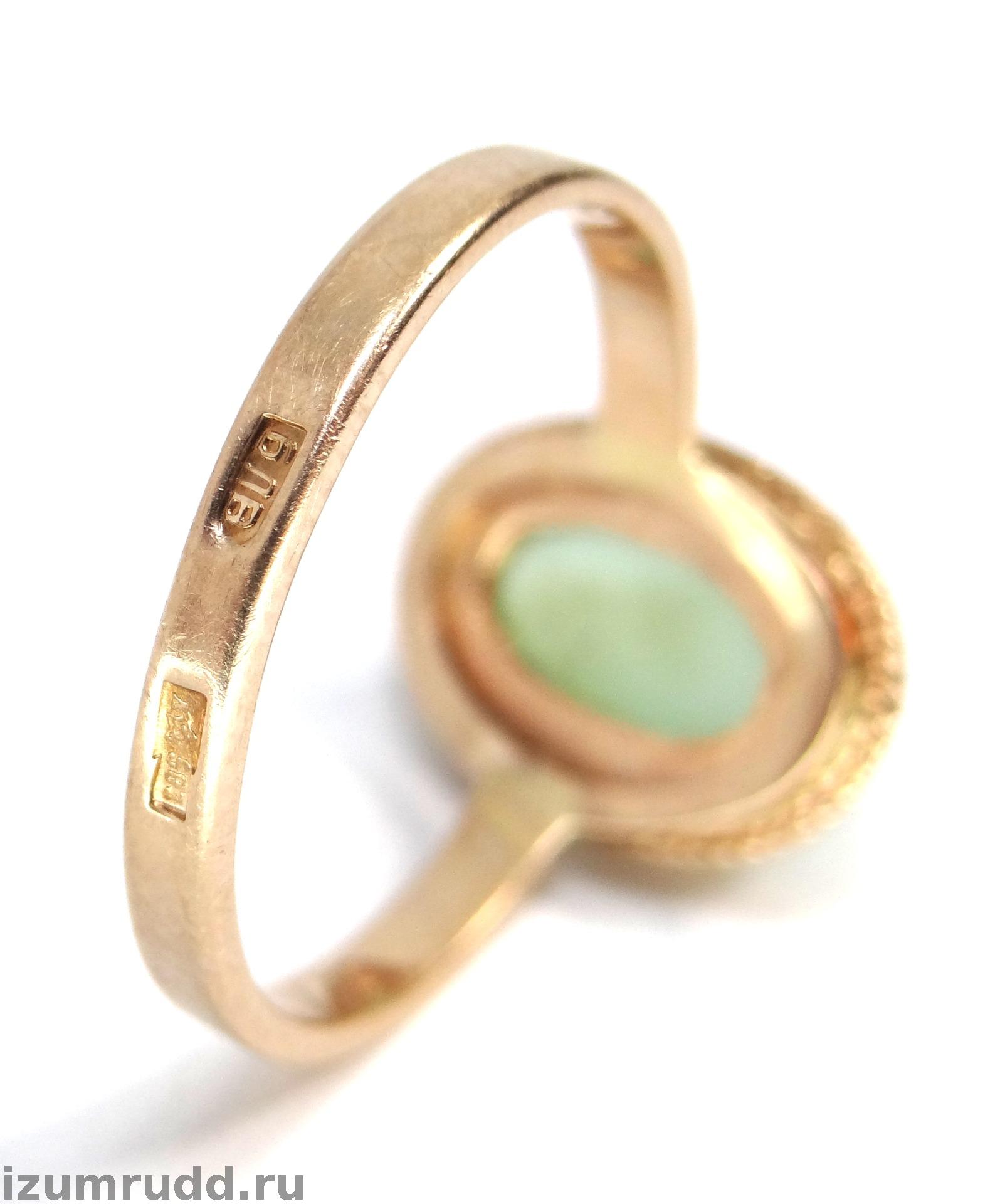 Советское золотое кольцо 583 пробы с нефритом, СССР