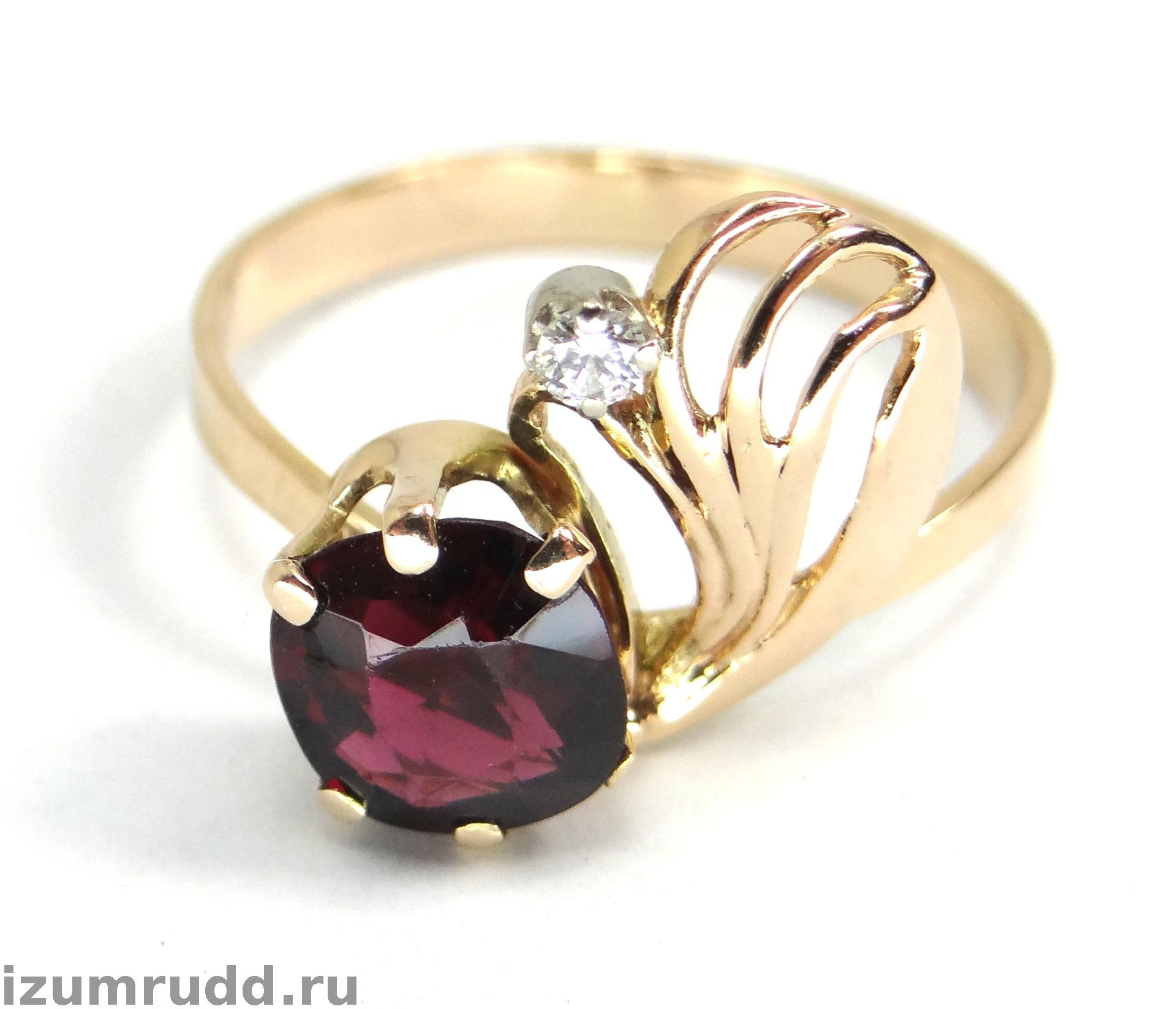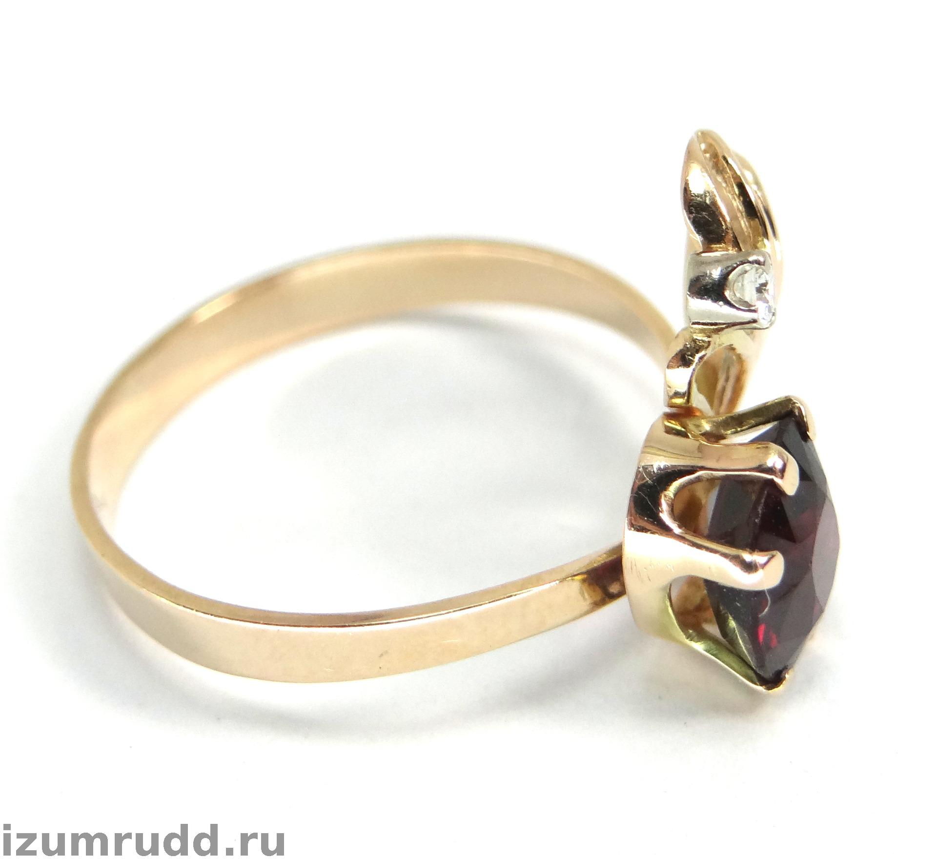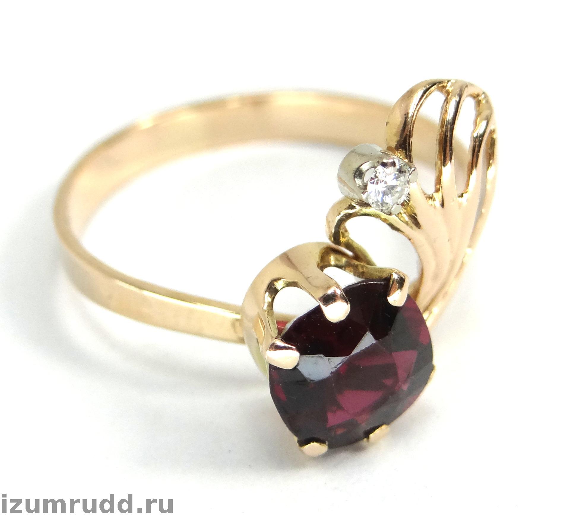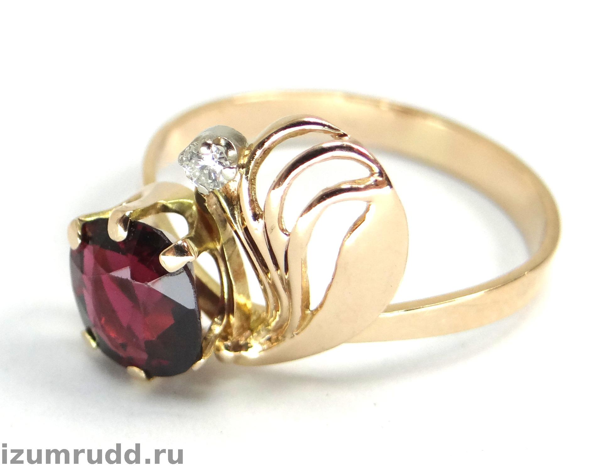 Золотое кольцо 585 пробы с бриллиантом и гранатом