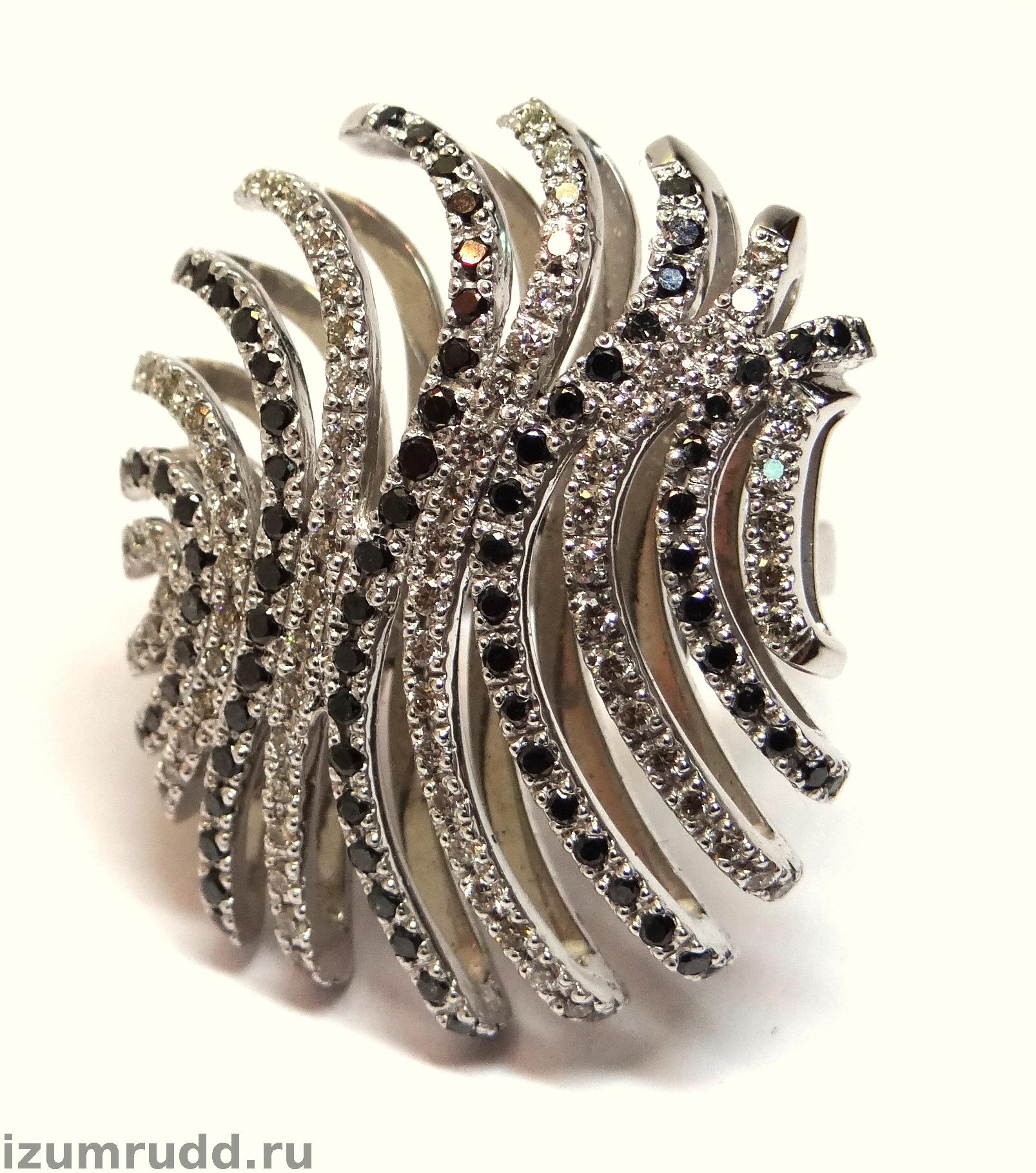 Золотое кольцо 585 пробы с черными и белыми бриллиантами.