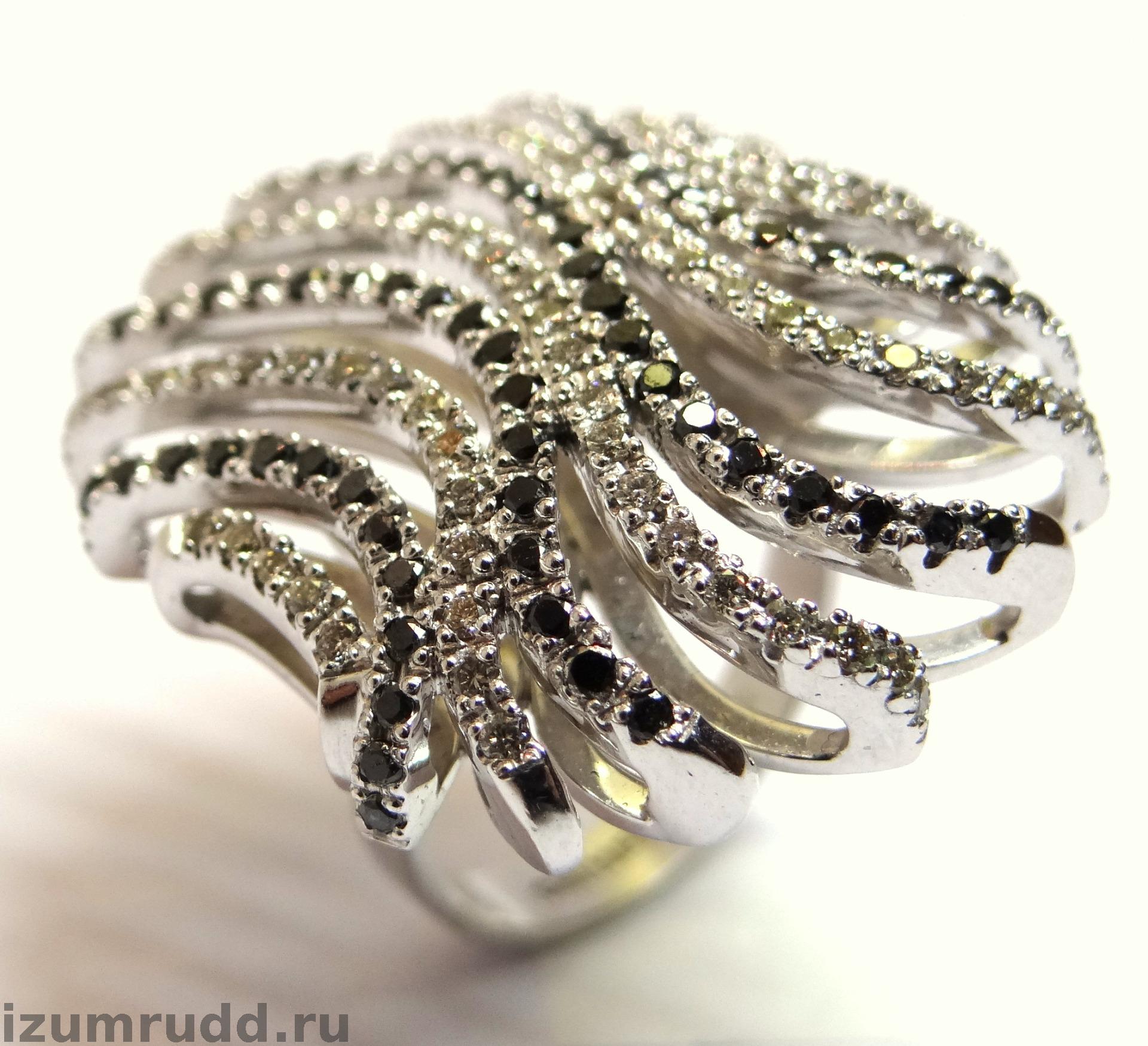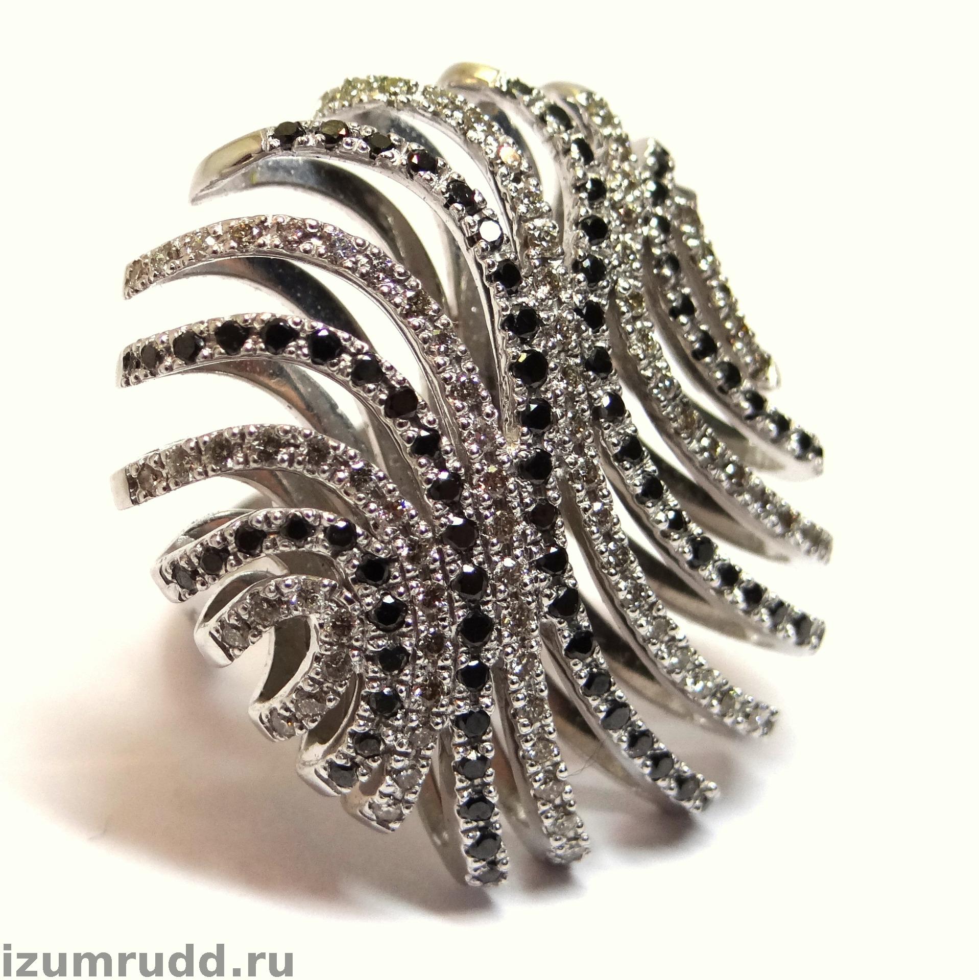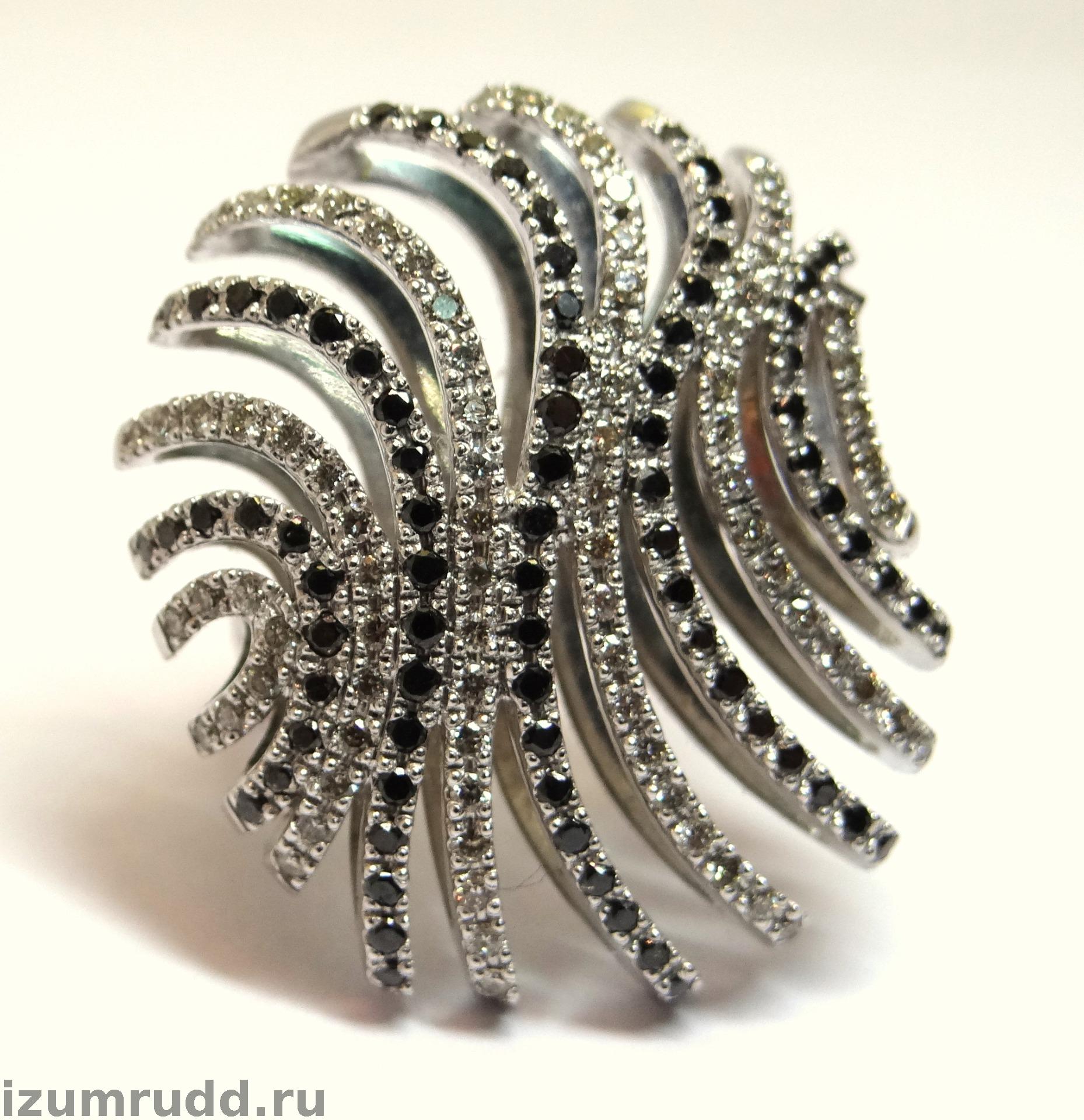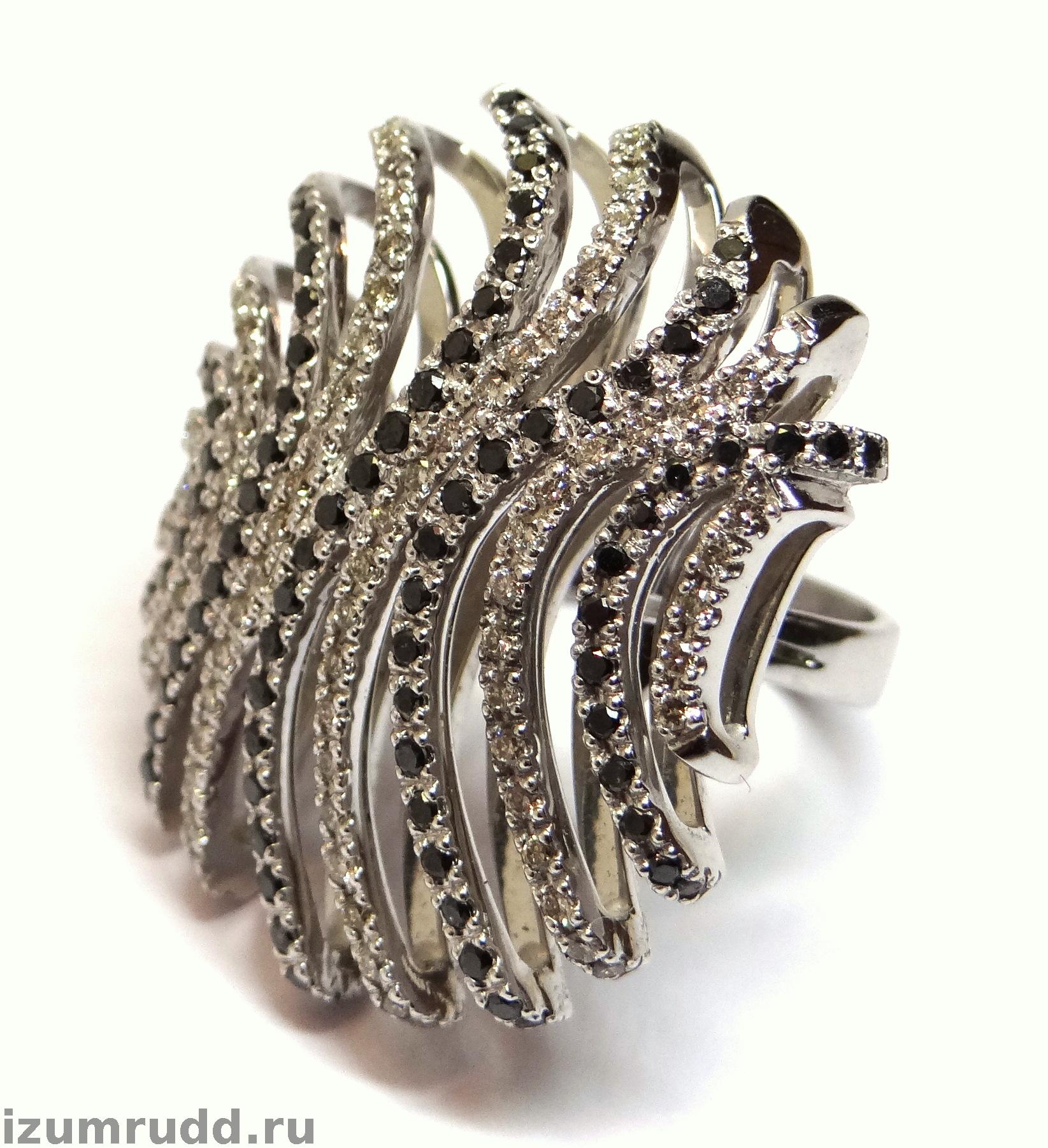 Золотое кольцо 585 пробы с черными и белыми бриллиантами